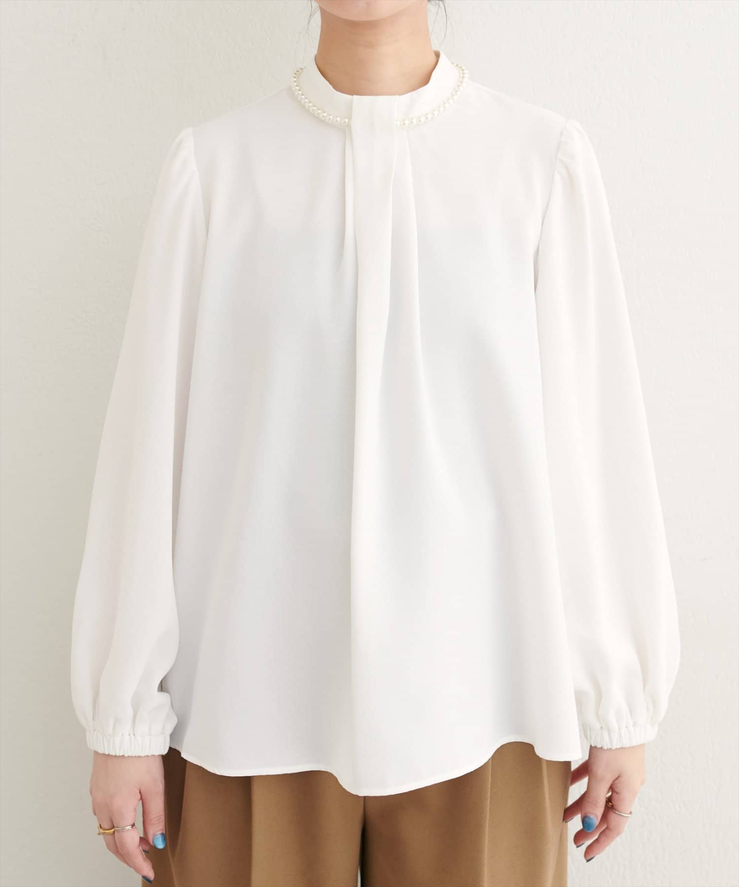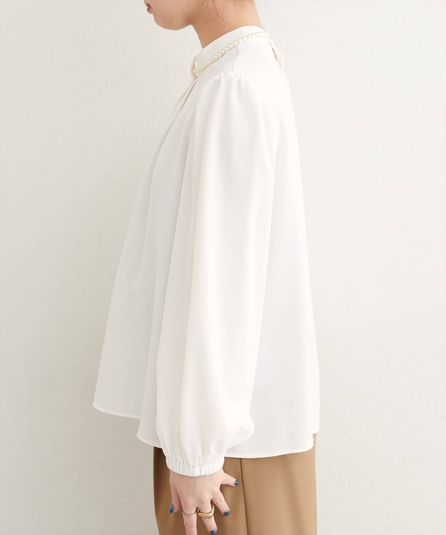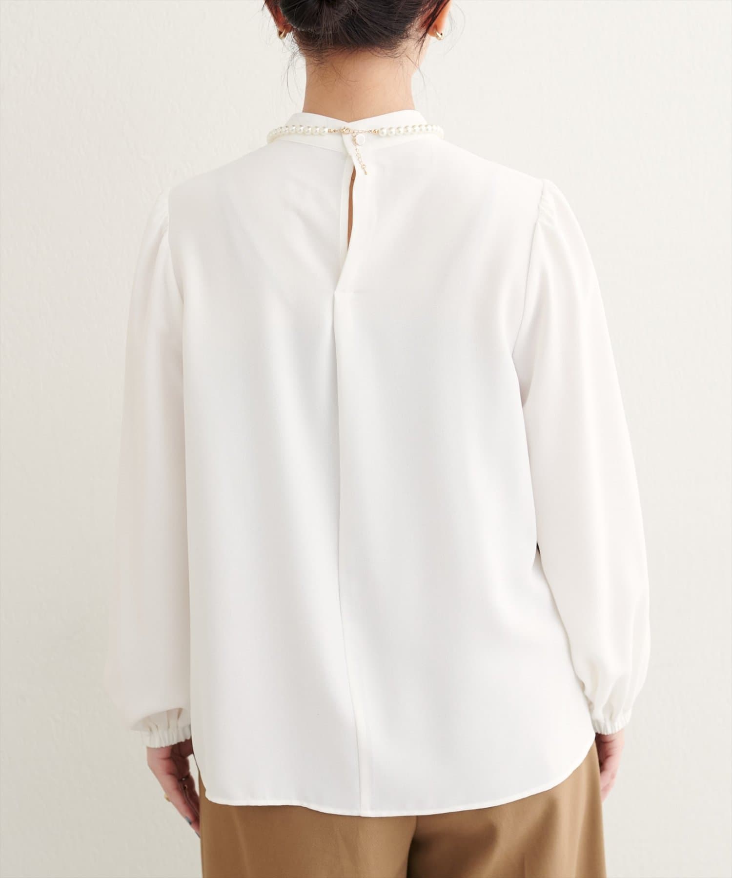 リュクスなパールが、いつもの装いをアップデートしてくれる上品なブラウス。