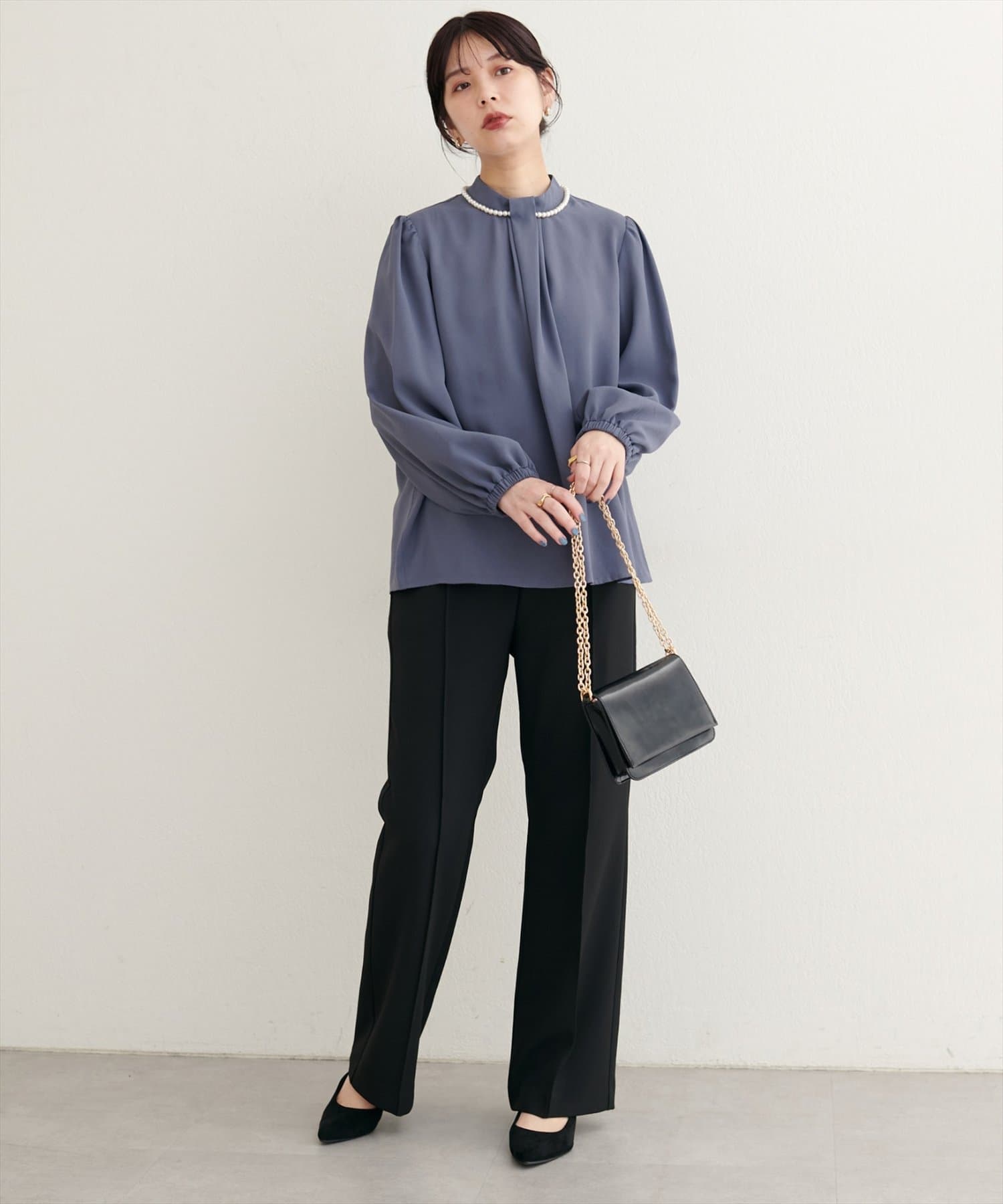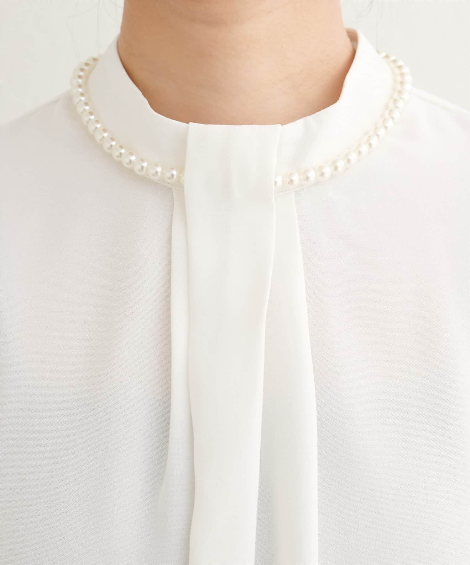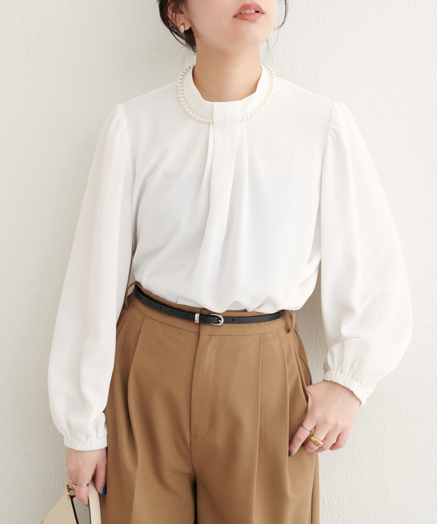リュクスなパールが、いつもの装いをアップデートしてくれる上品なブラウス。