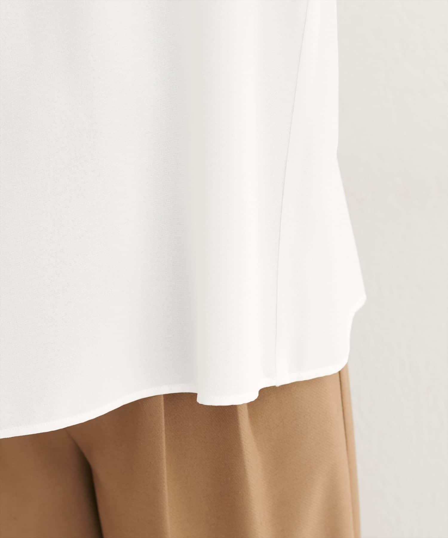 フロントのタックデザインは、気になるボディラインをふんわりとカバーしつつ、上品なドレープを生み出します。