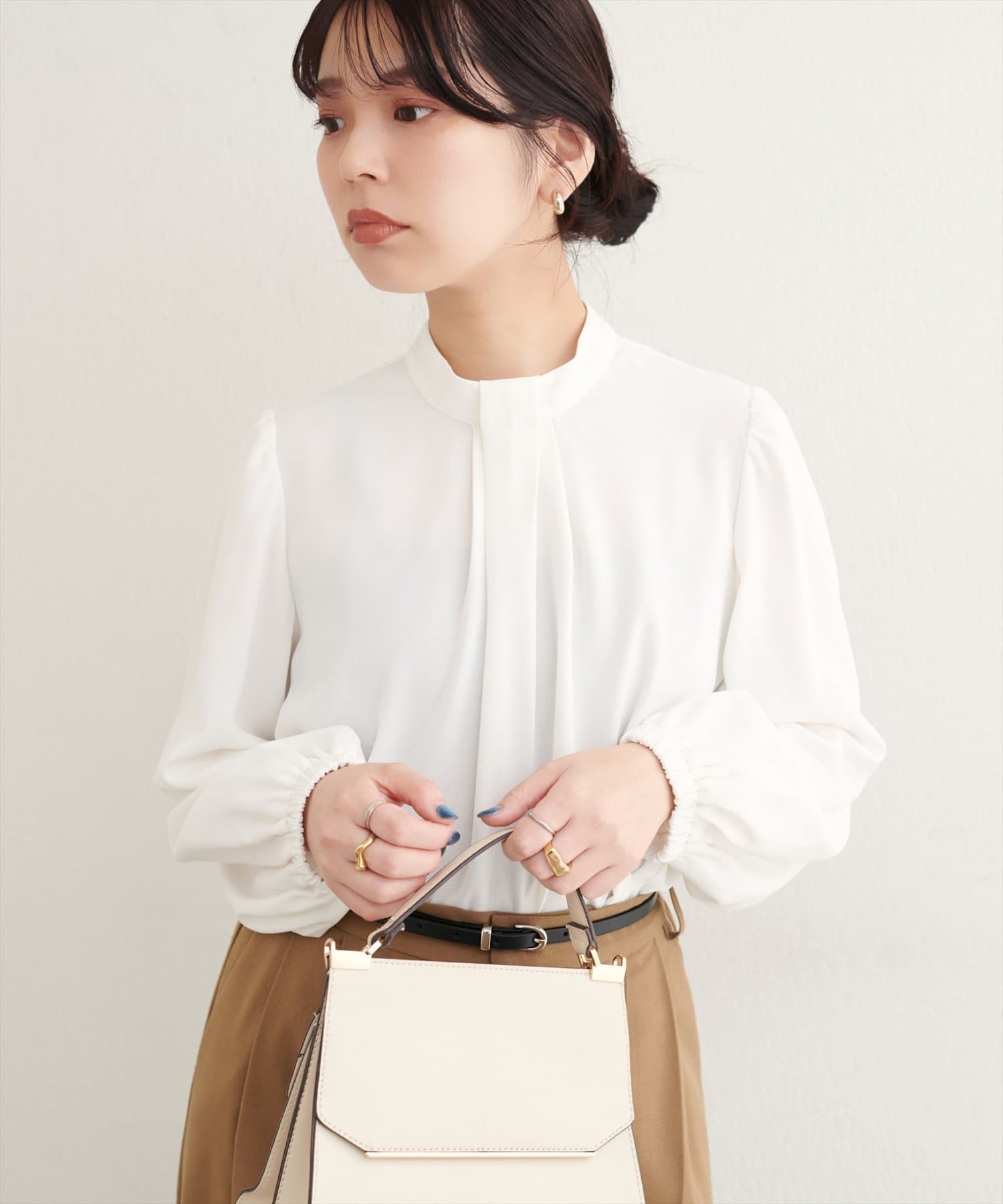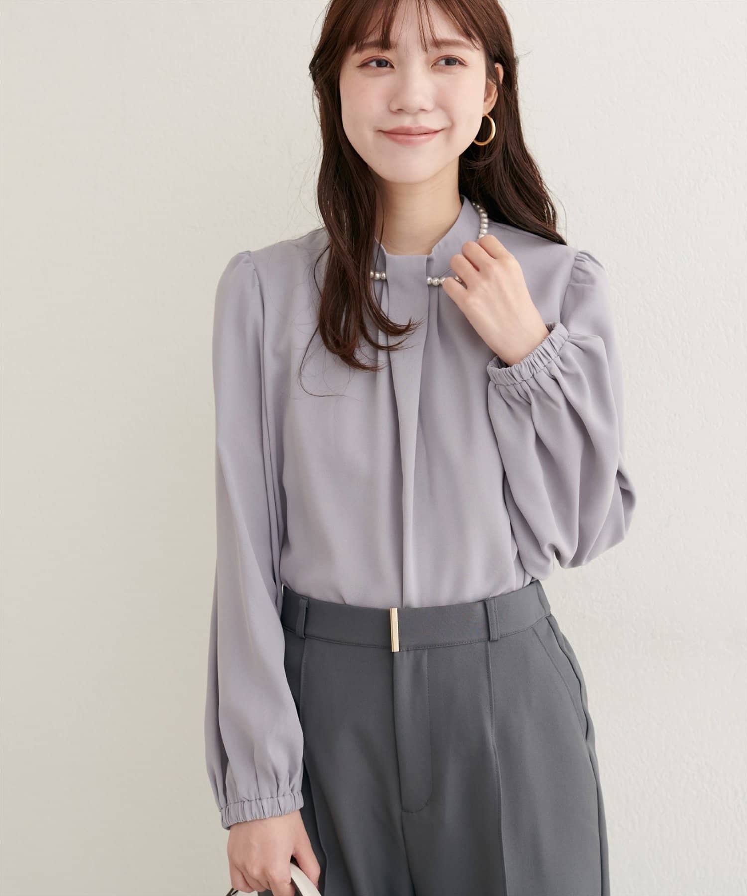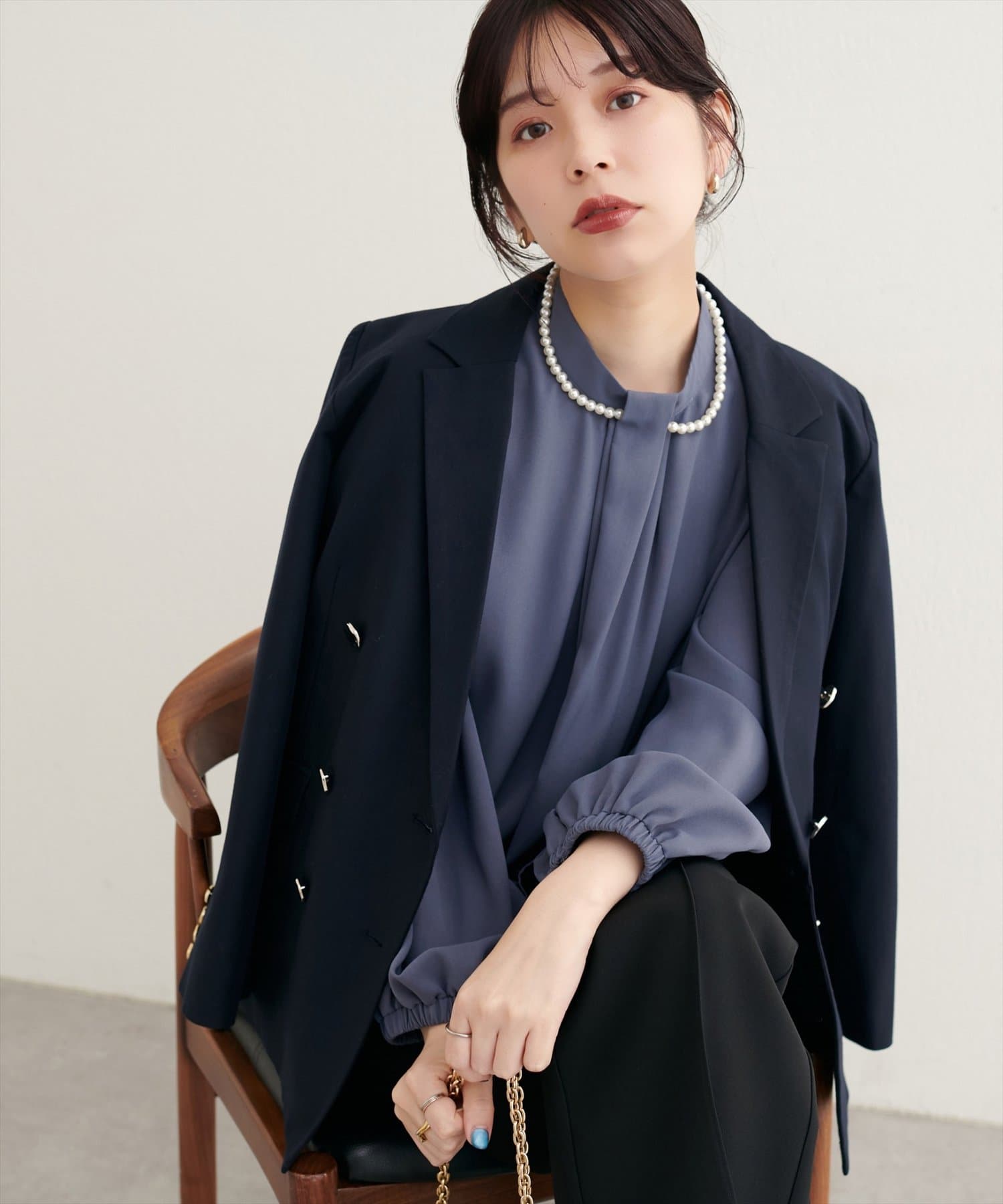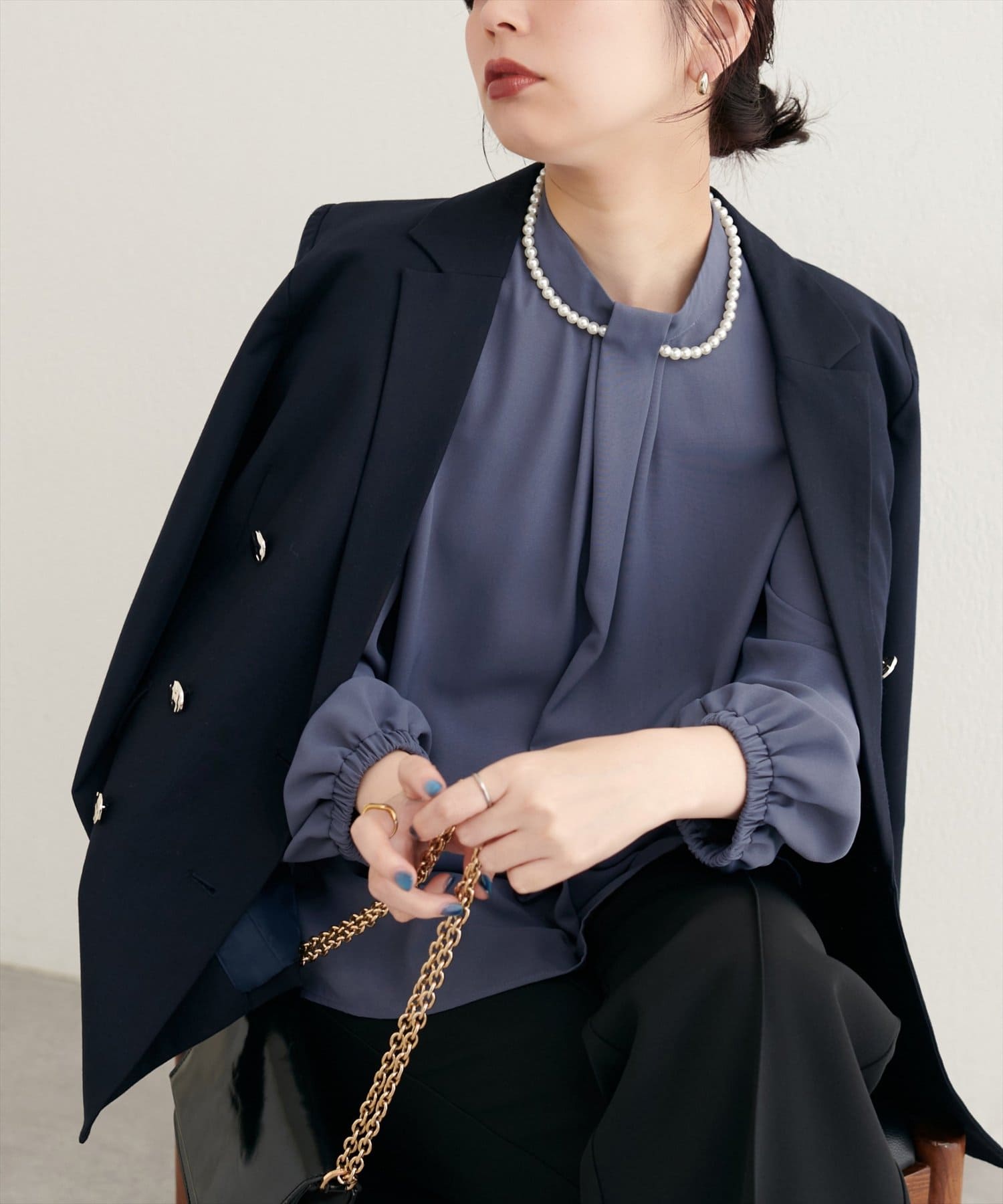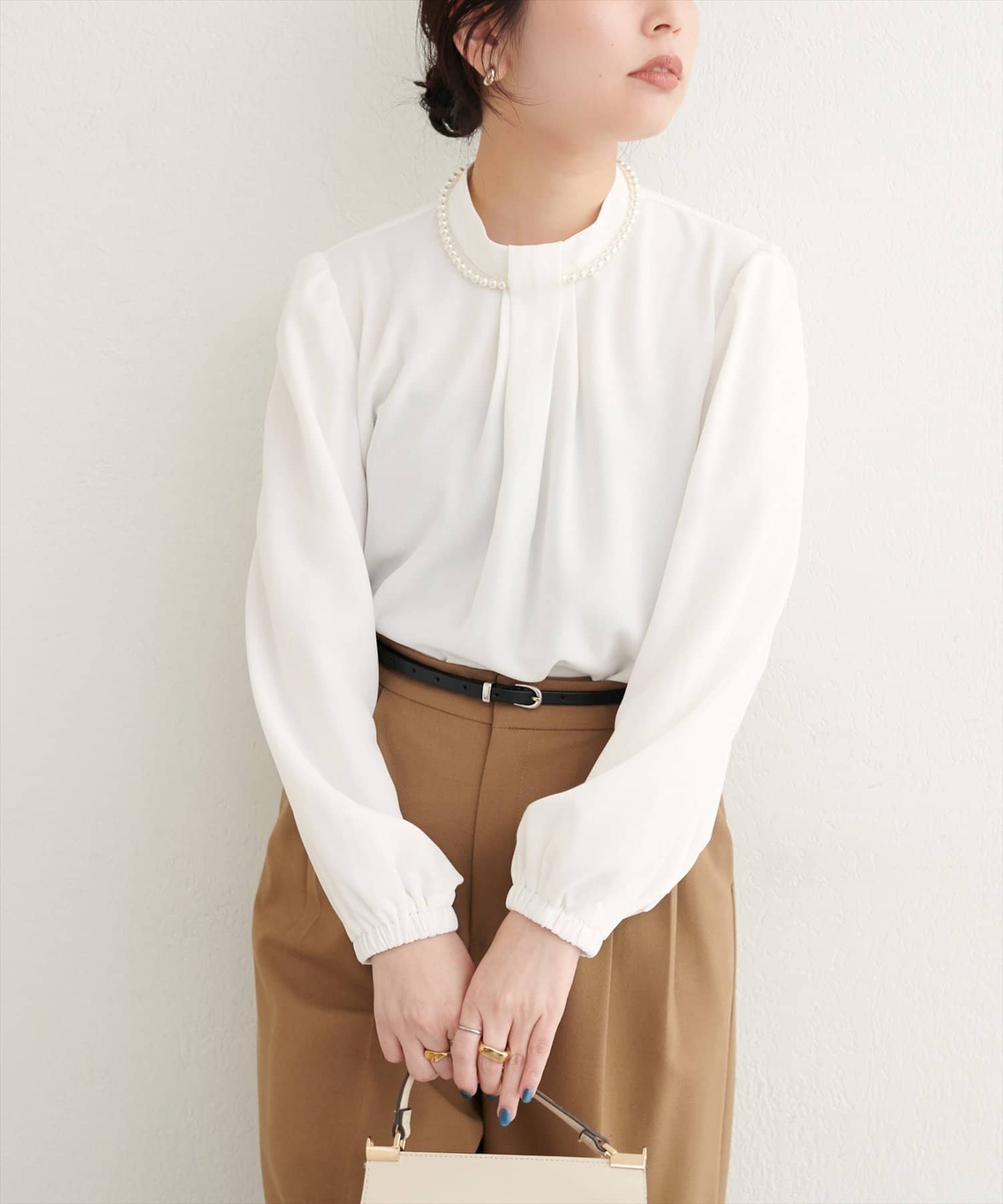 【WEB限定】パールネックレス付きフロントタックブラウス