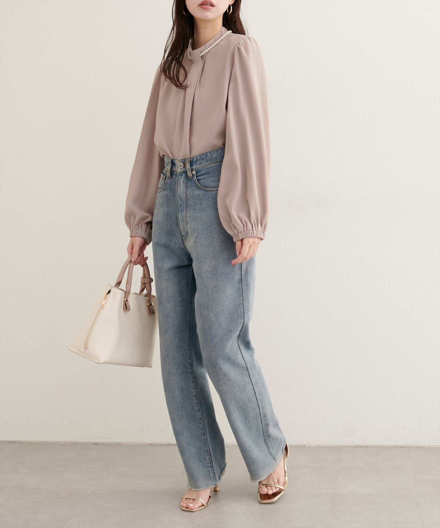 リュクスなパールが、いつもの装いをアップデートしてくれる上品なブラウス。