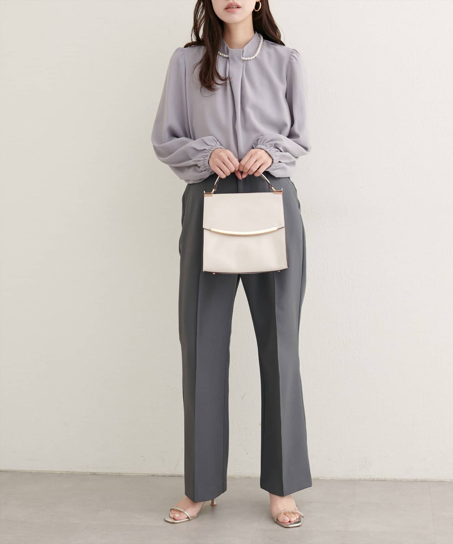 【WEB限定】パールネックレス付きフロントタックブラウス