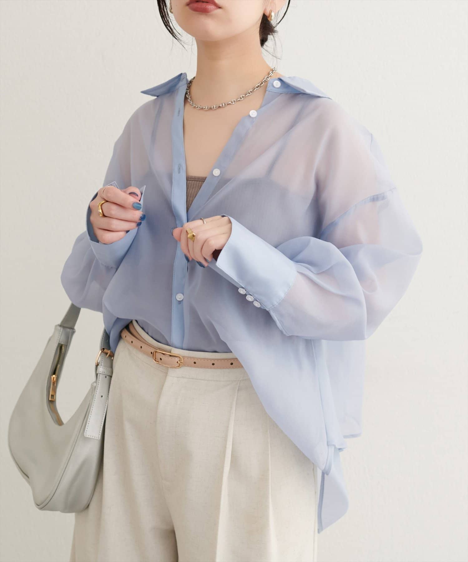 上品な艶感とシアー感で大人っぽく楽しめる一枚。