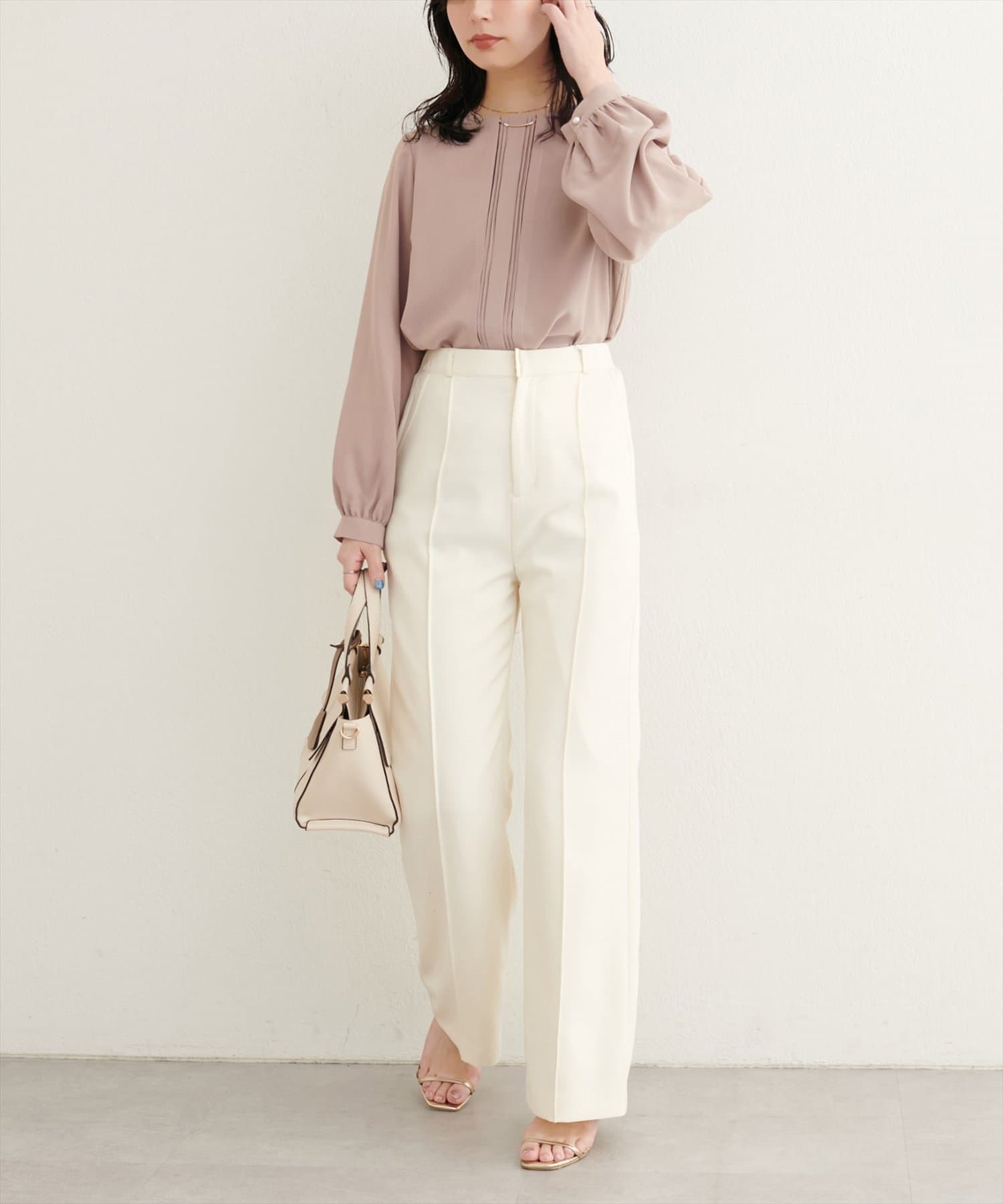 フロントのタックで縦ラインもキレイで、シンプルすぎず大人上品な印象に。