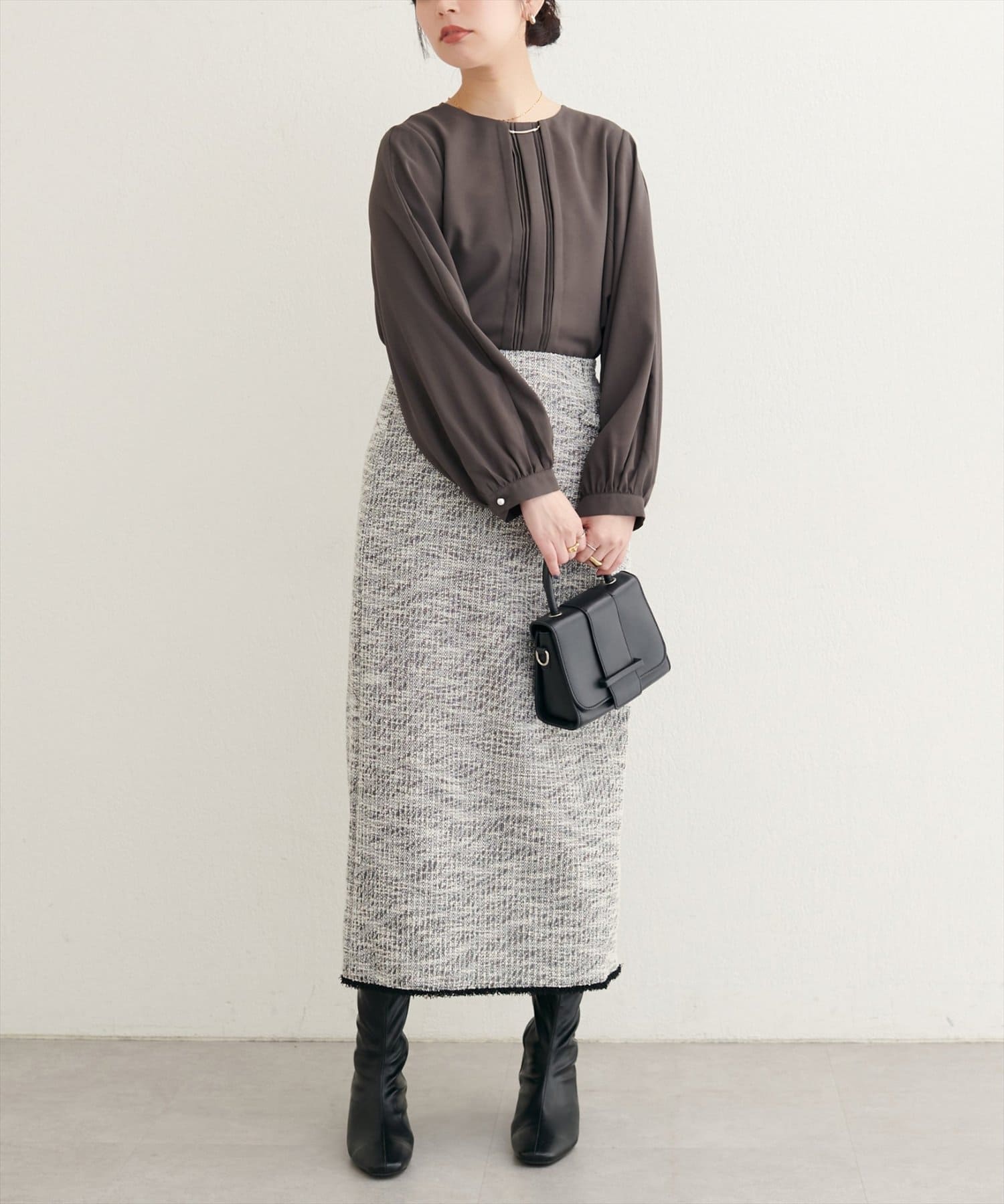 マーメイドシルエットやフレアラインのスカートにウエストインして頂くと、