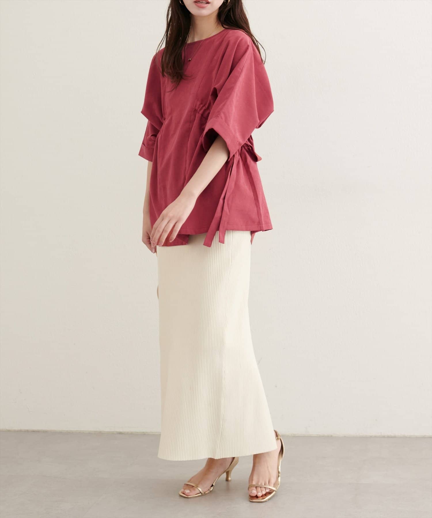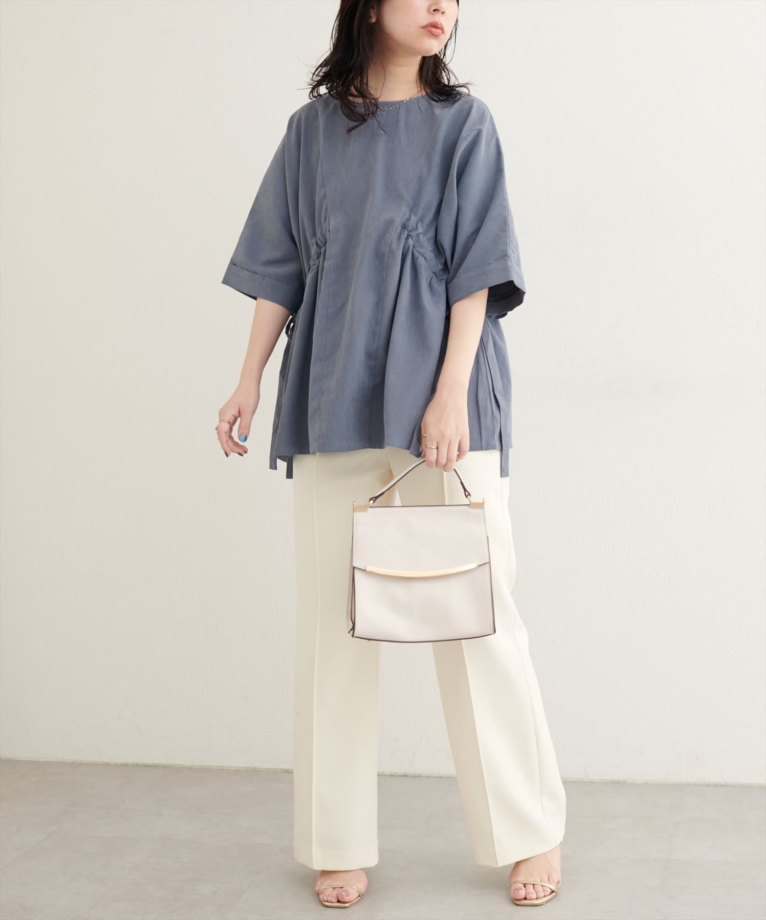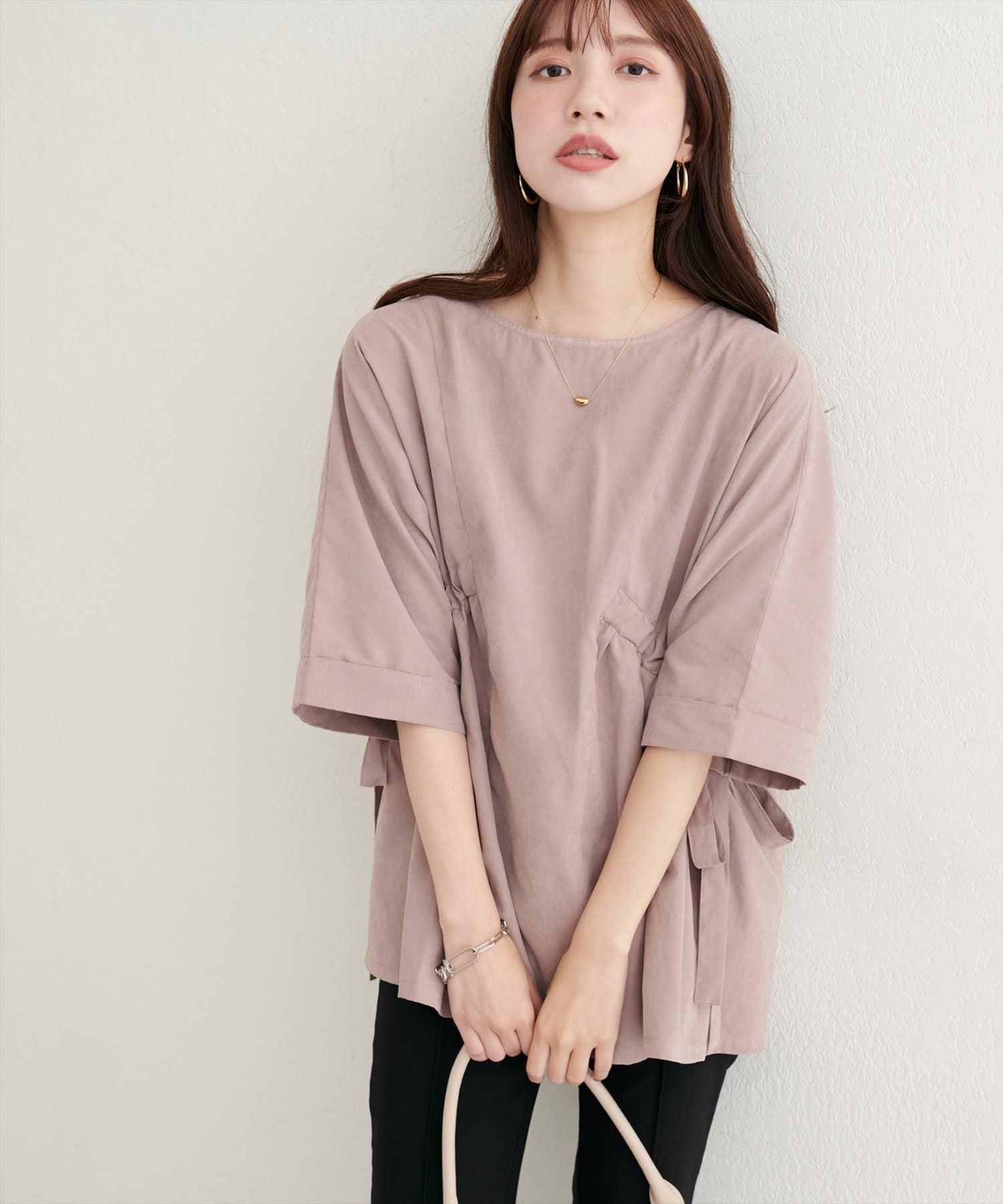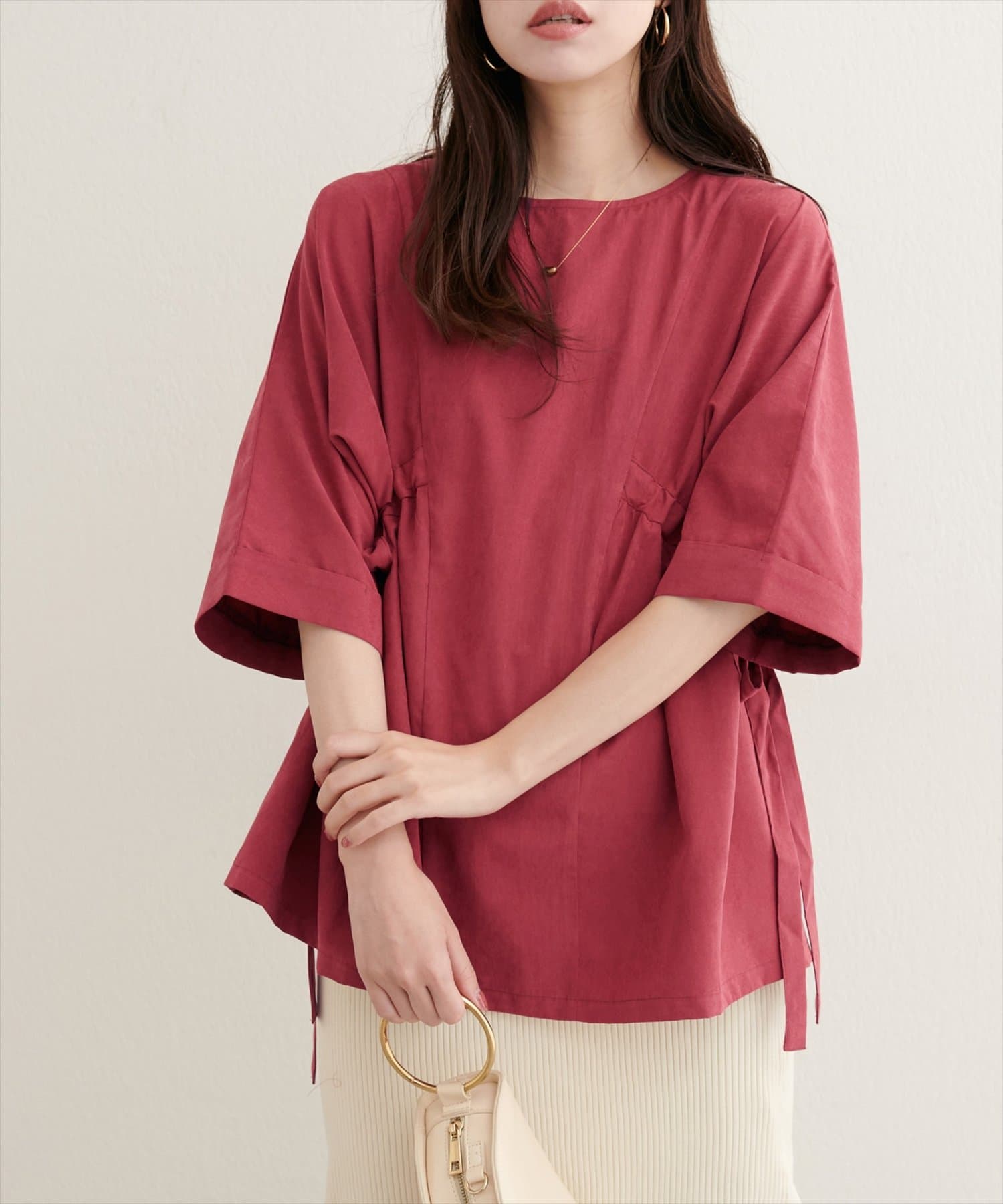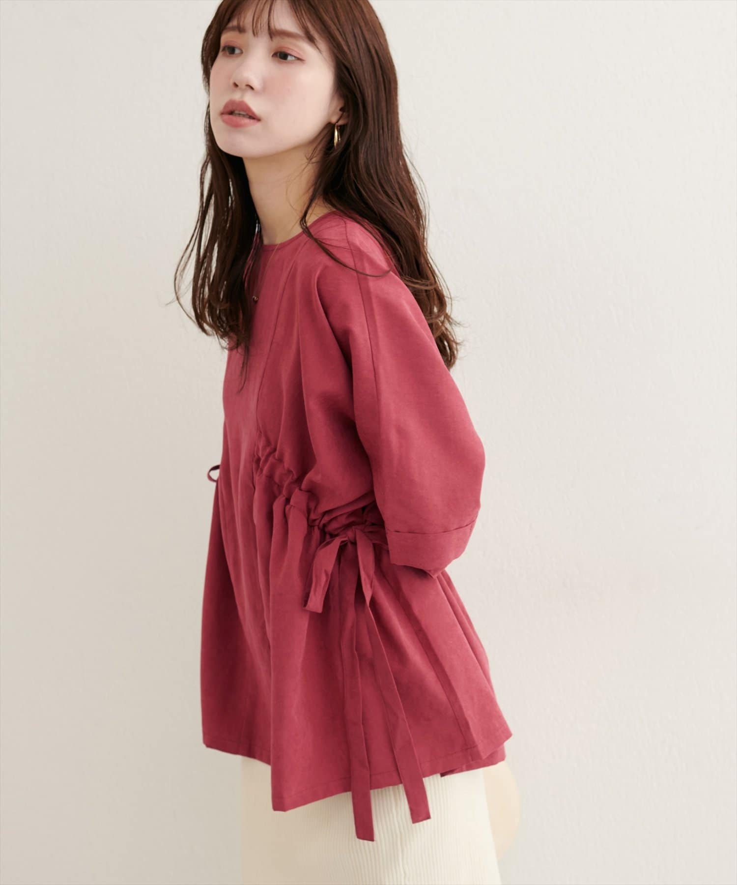 【WEB限定】サイドドロスト7分袖ブラウス