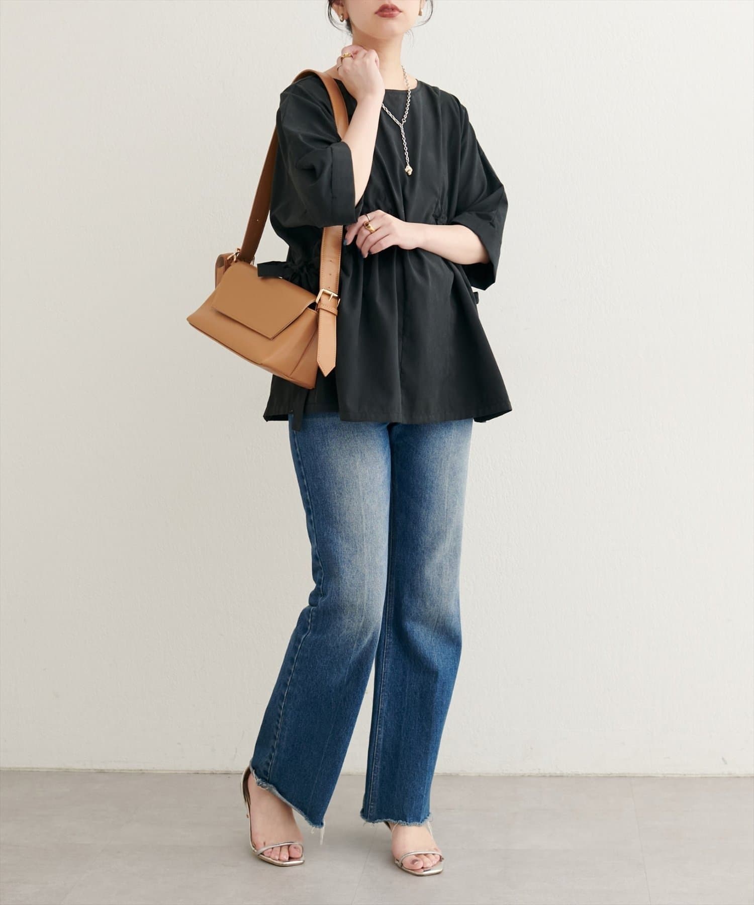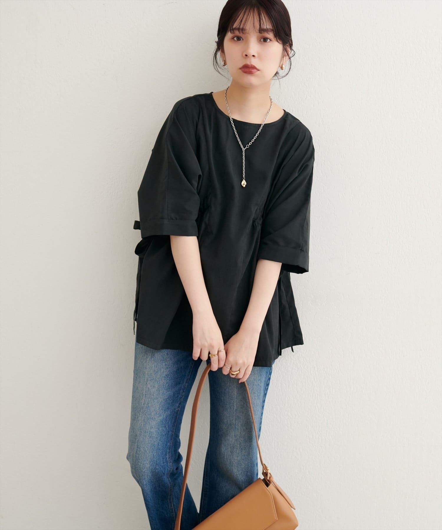 ブラウスの程よい丈感は、様々なボトムスと相性抜群。