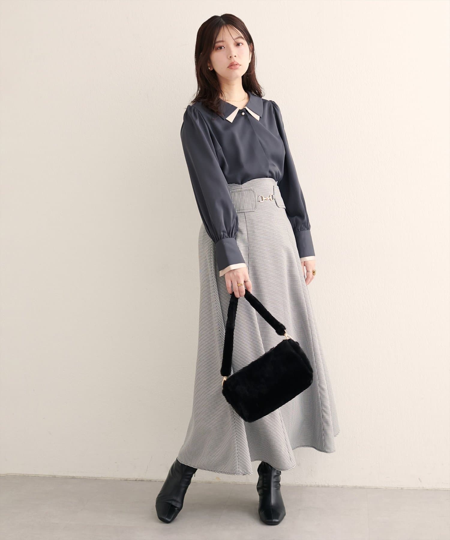 ボトムはパンツでもスカートでも合わせやすい丈感になっておりますので、着回しにも悩まず着ていただけます。