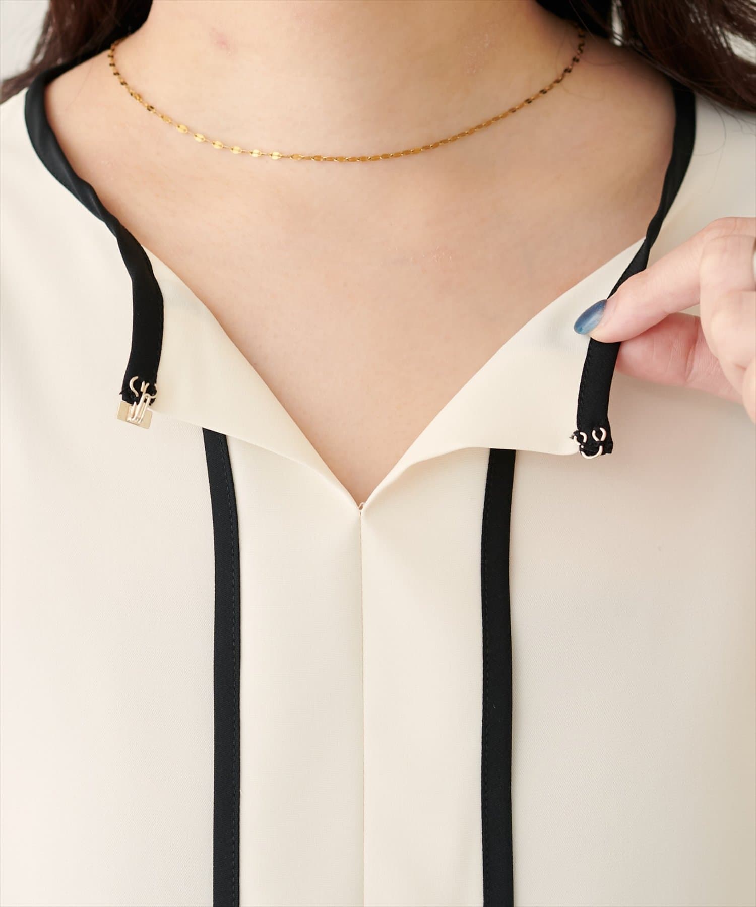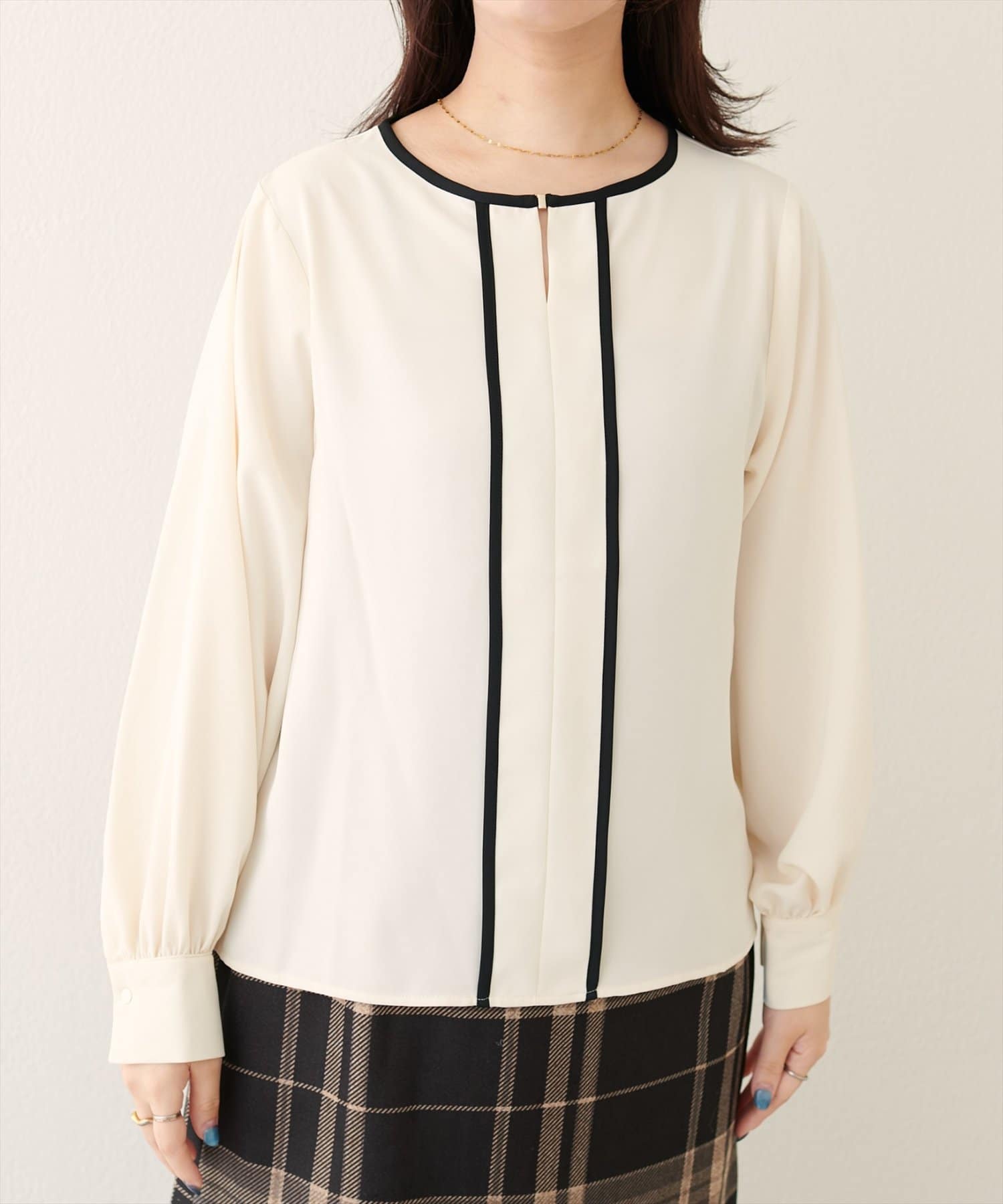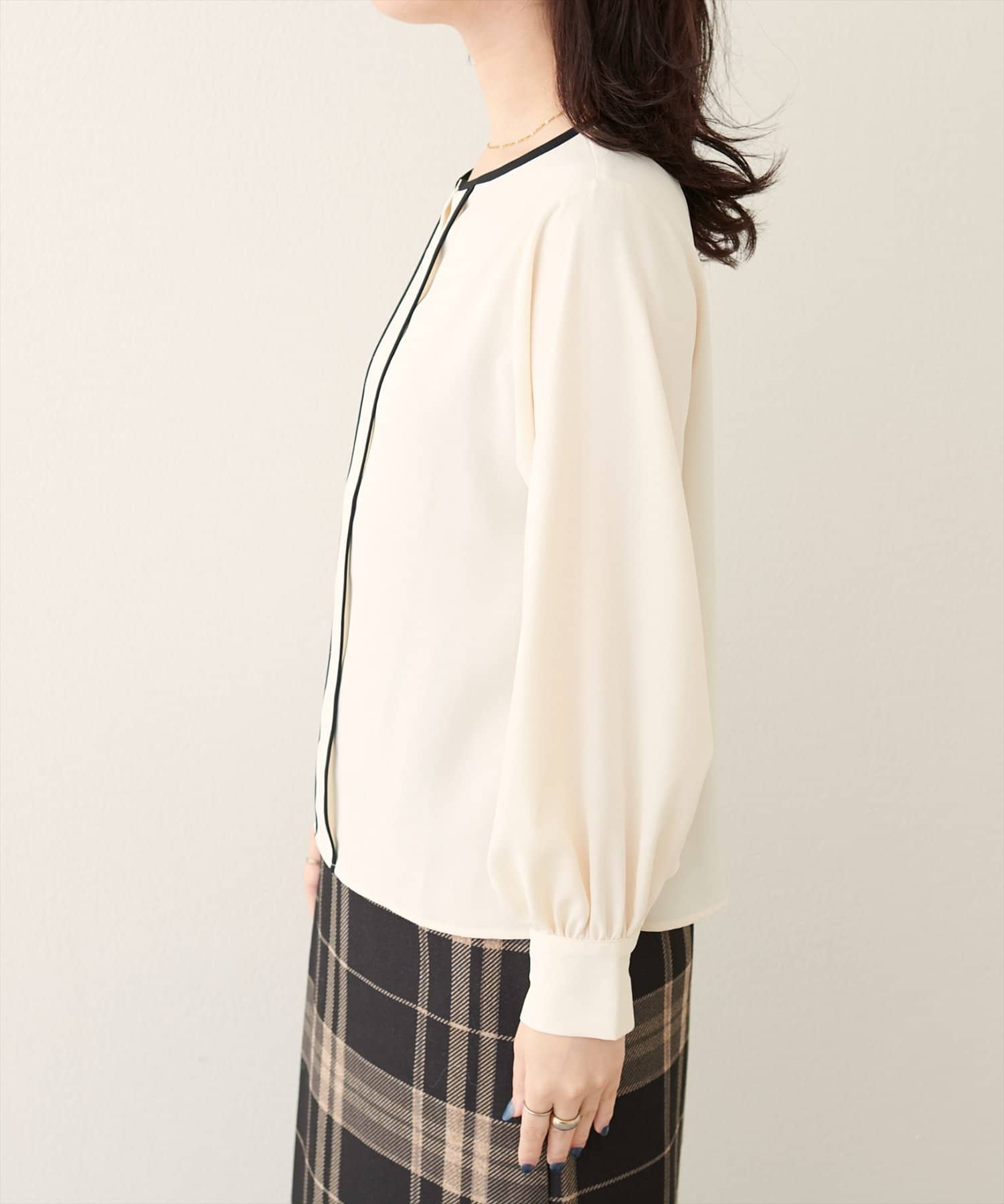 メタルホック付きパイピングブラウス