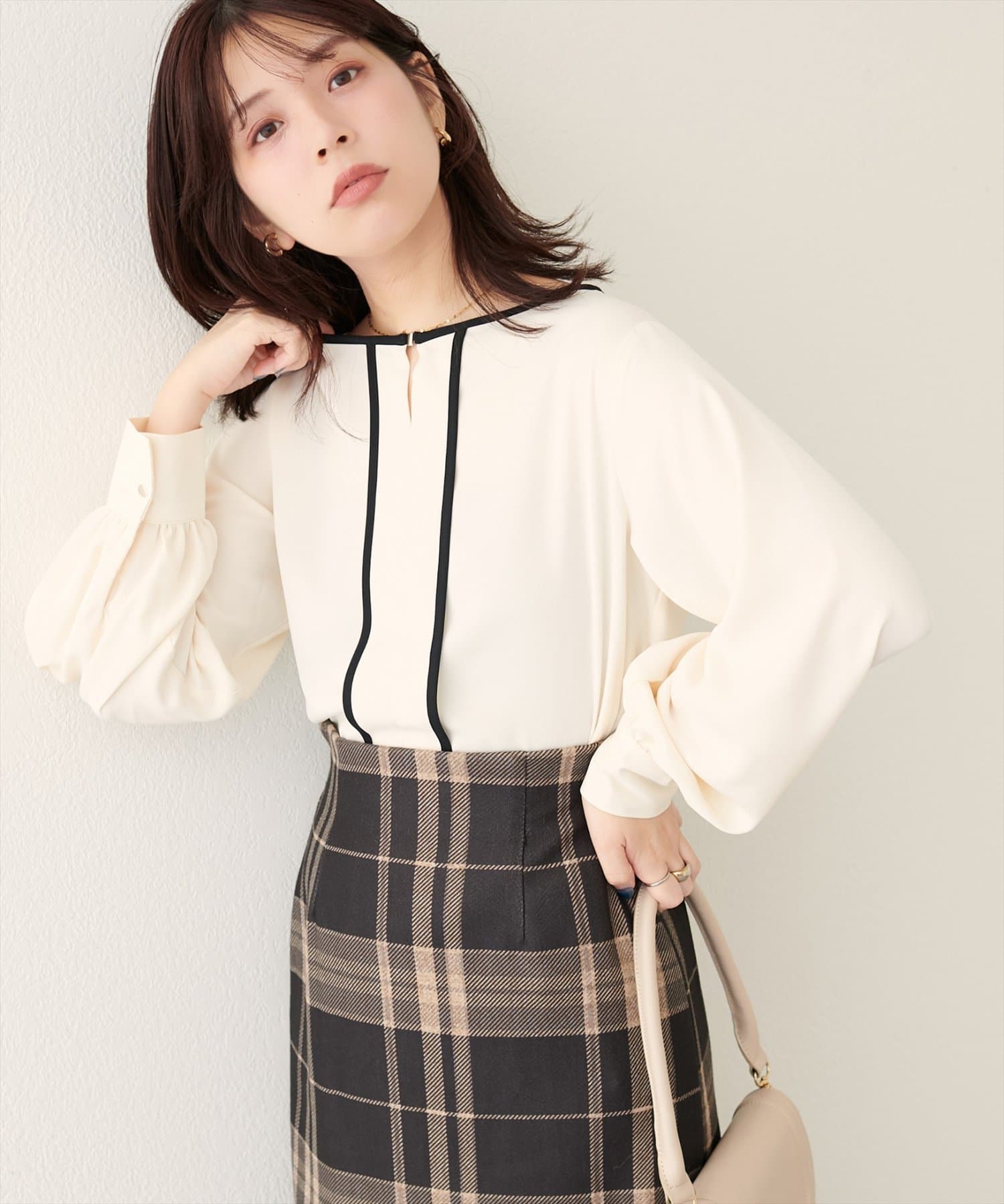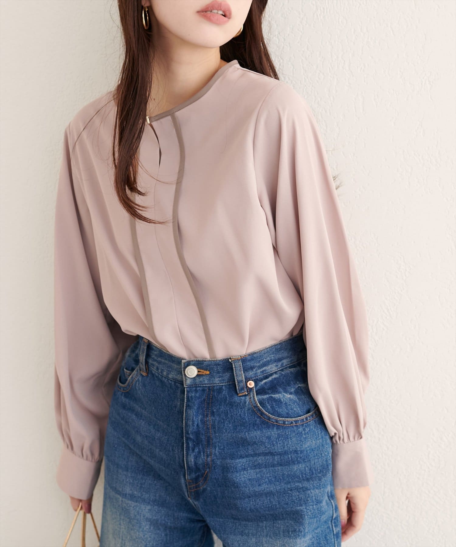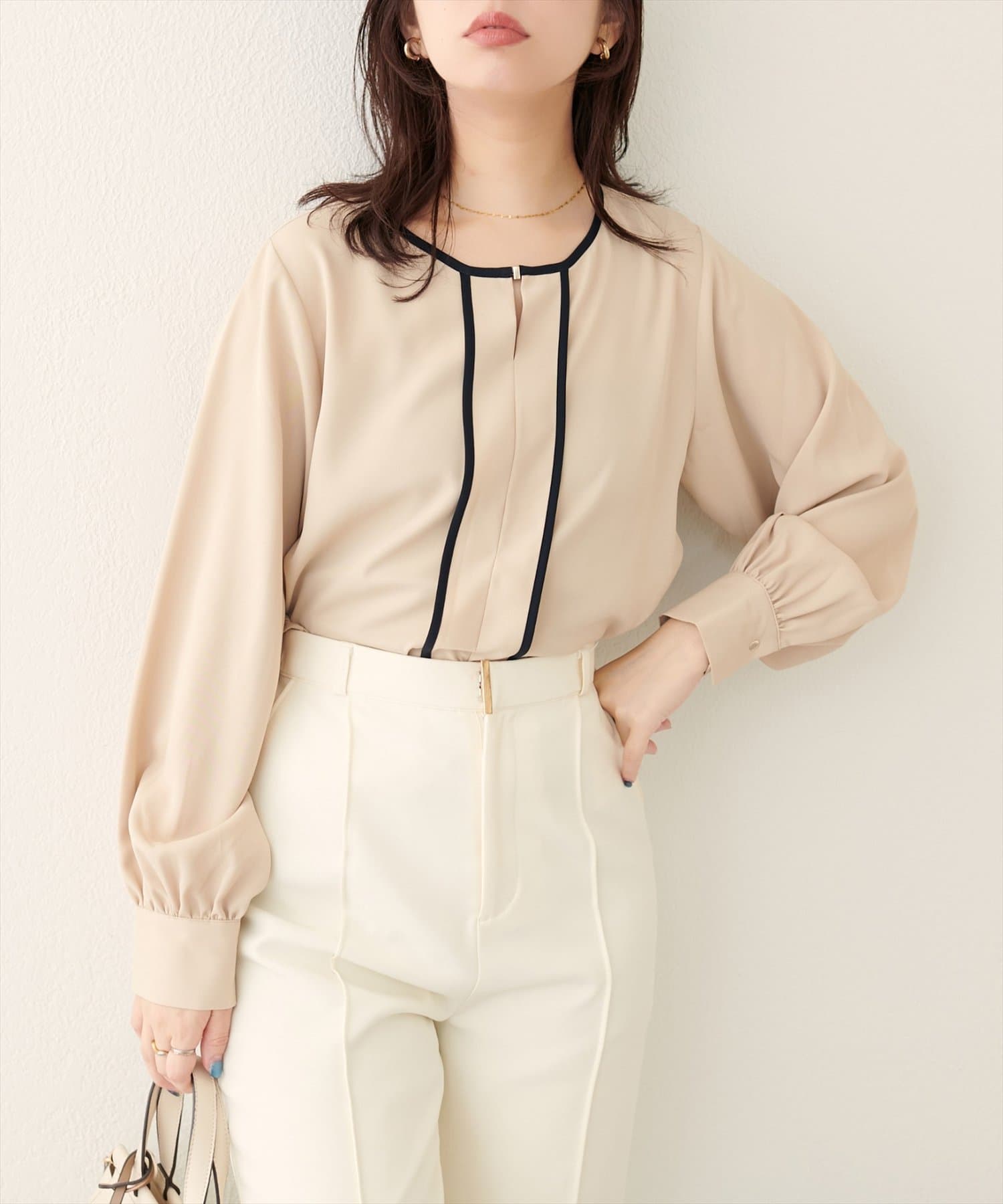 メタルホック付きパイピングブラウス