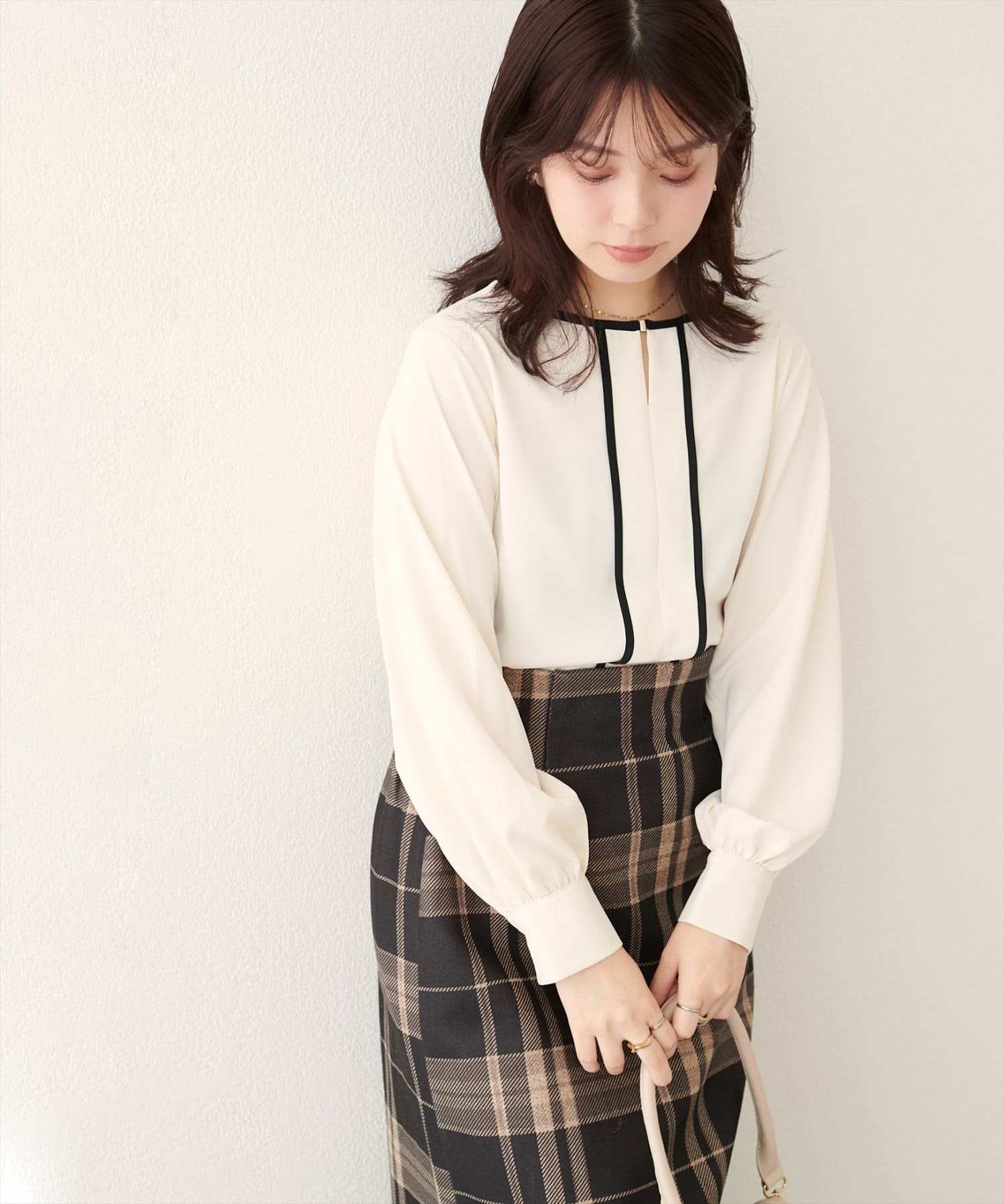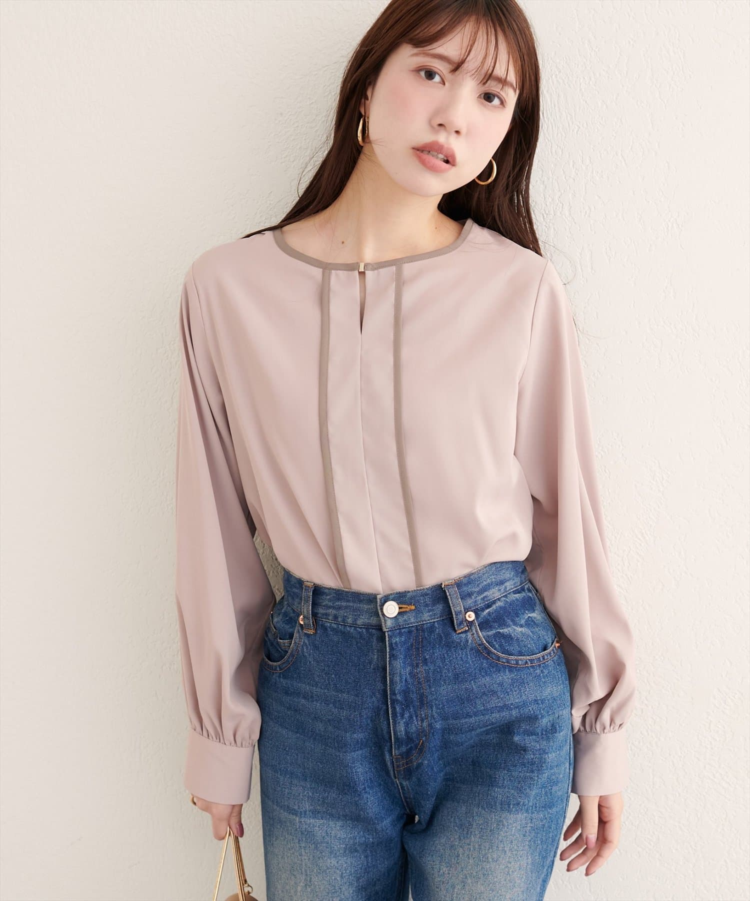 メタルホックがアクセントのきれいめブラウス