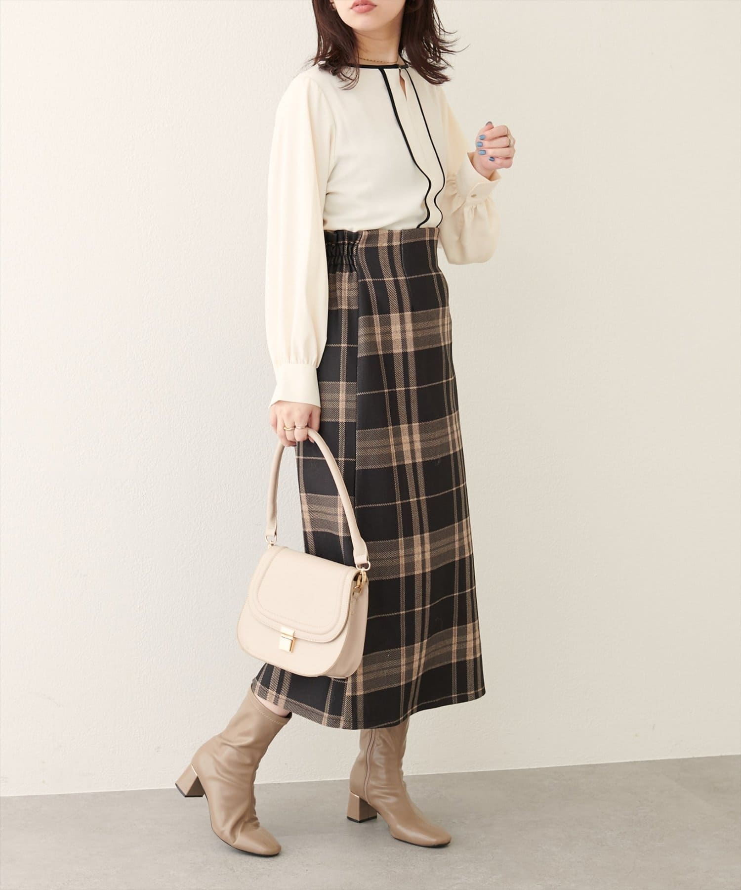 ハイウエストマーメイドスカートやフレアシルエットのスカートにウエストインして