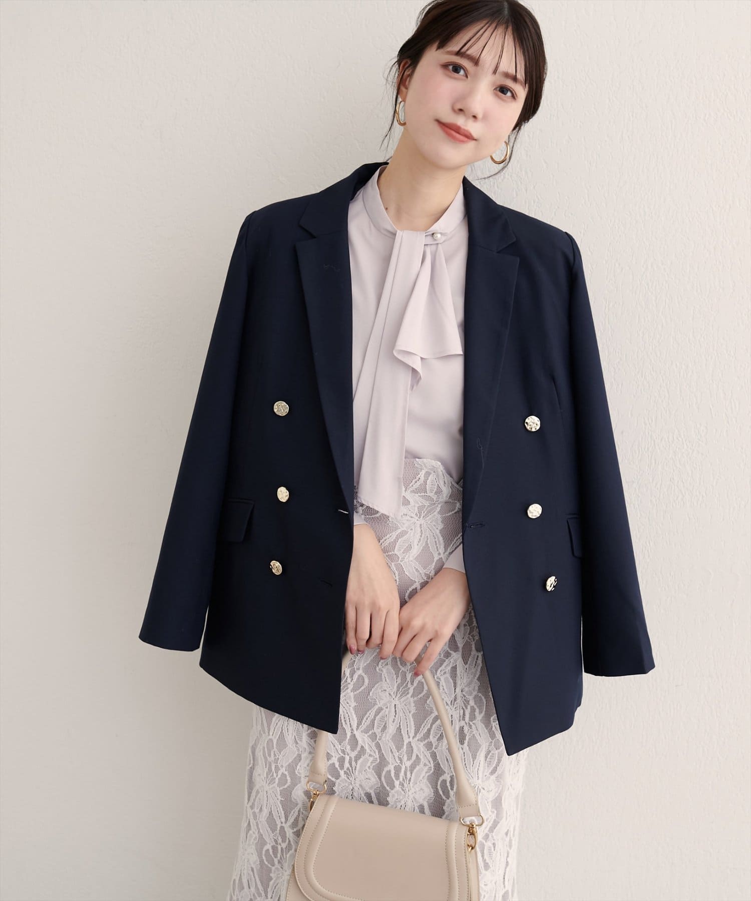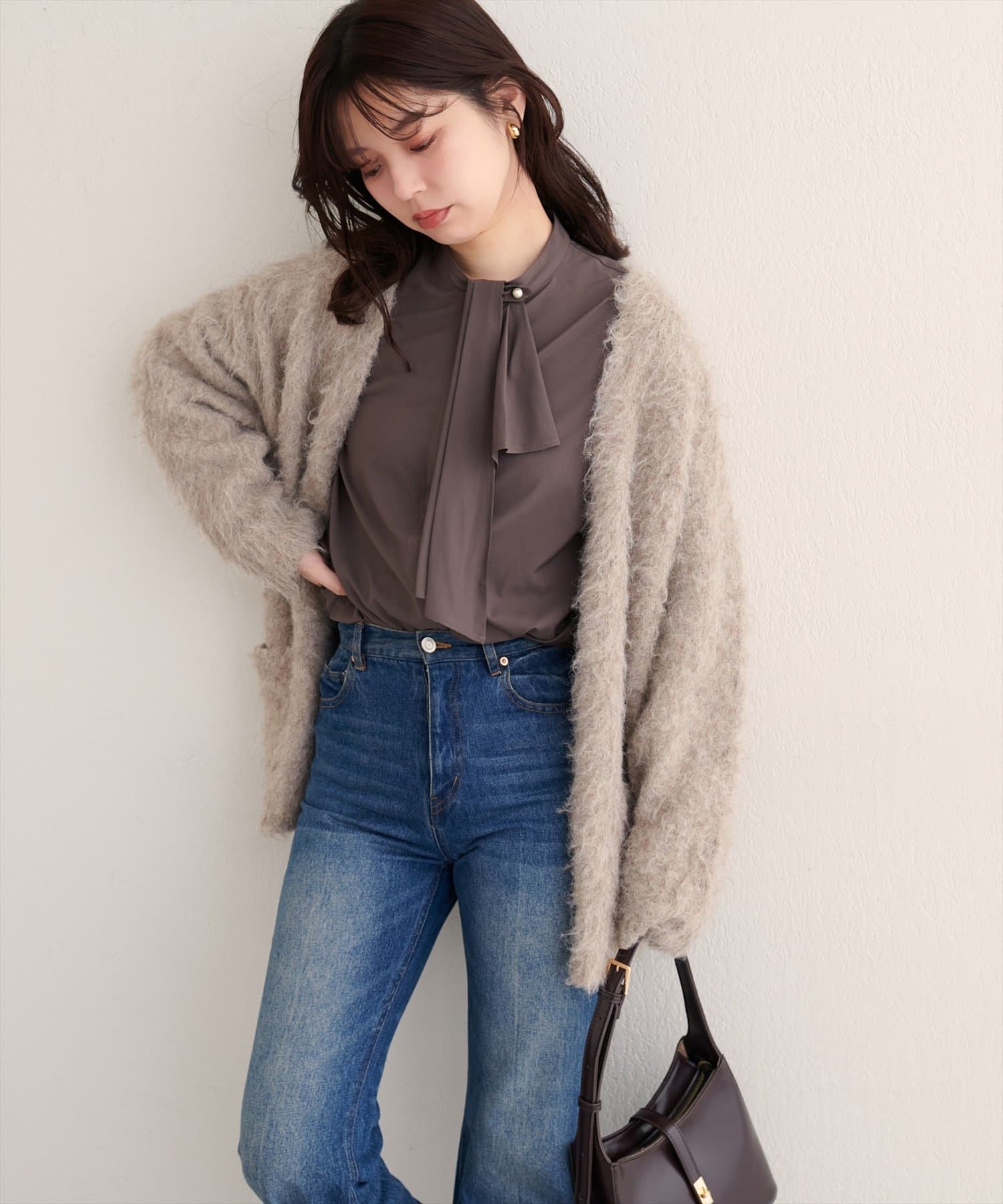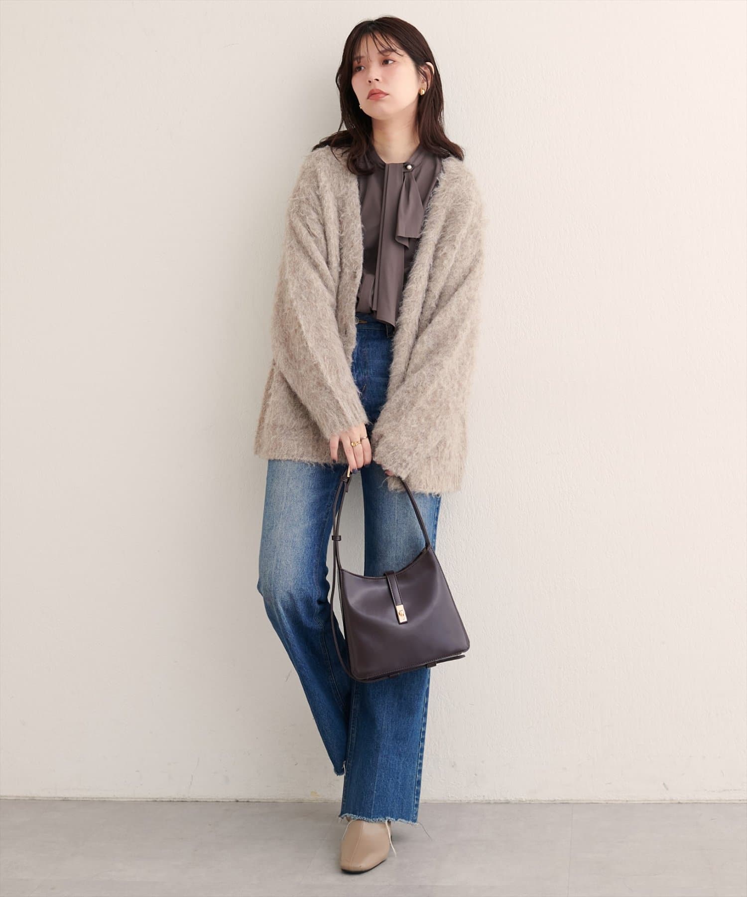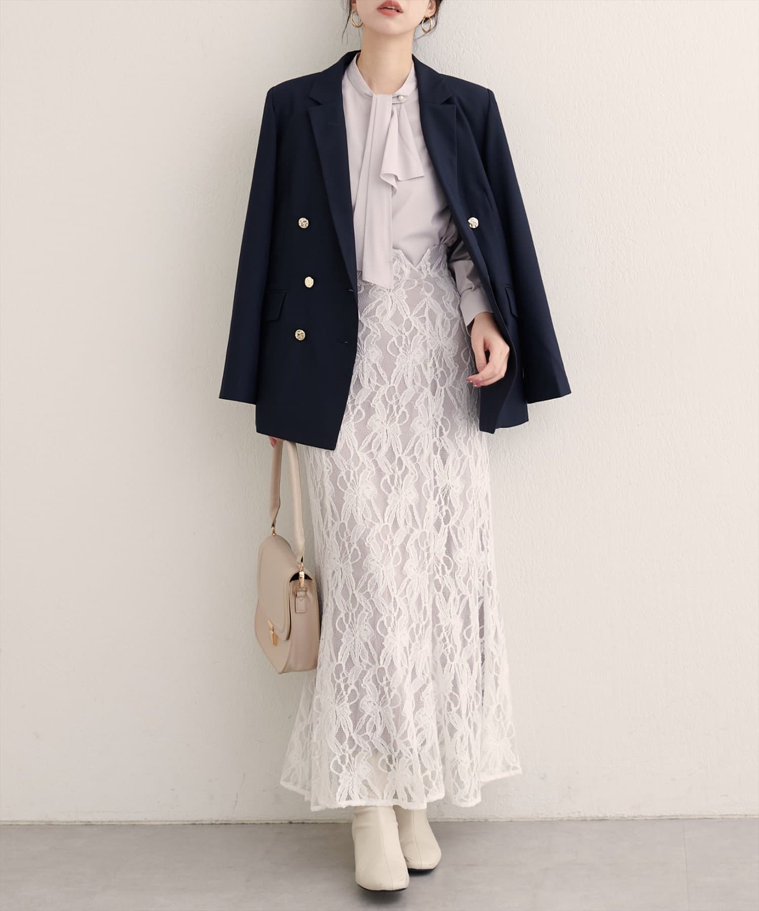 一枚で上品なアイテムなので、スカートスタイルはもちろん、デニムなどを合わせてカジュアルダウンするスタイルも◎