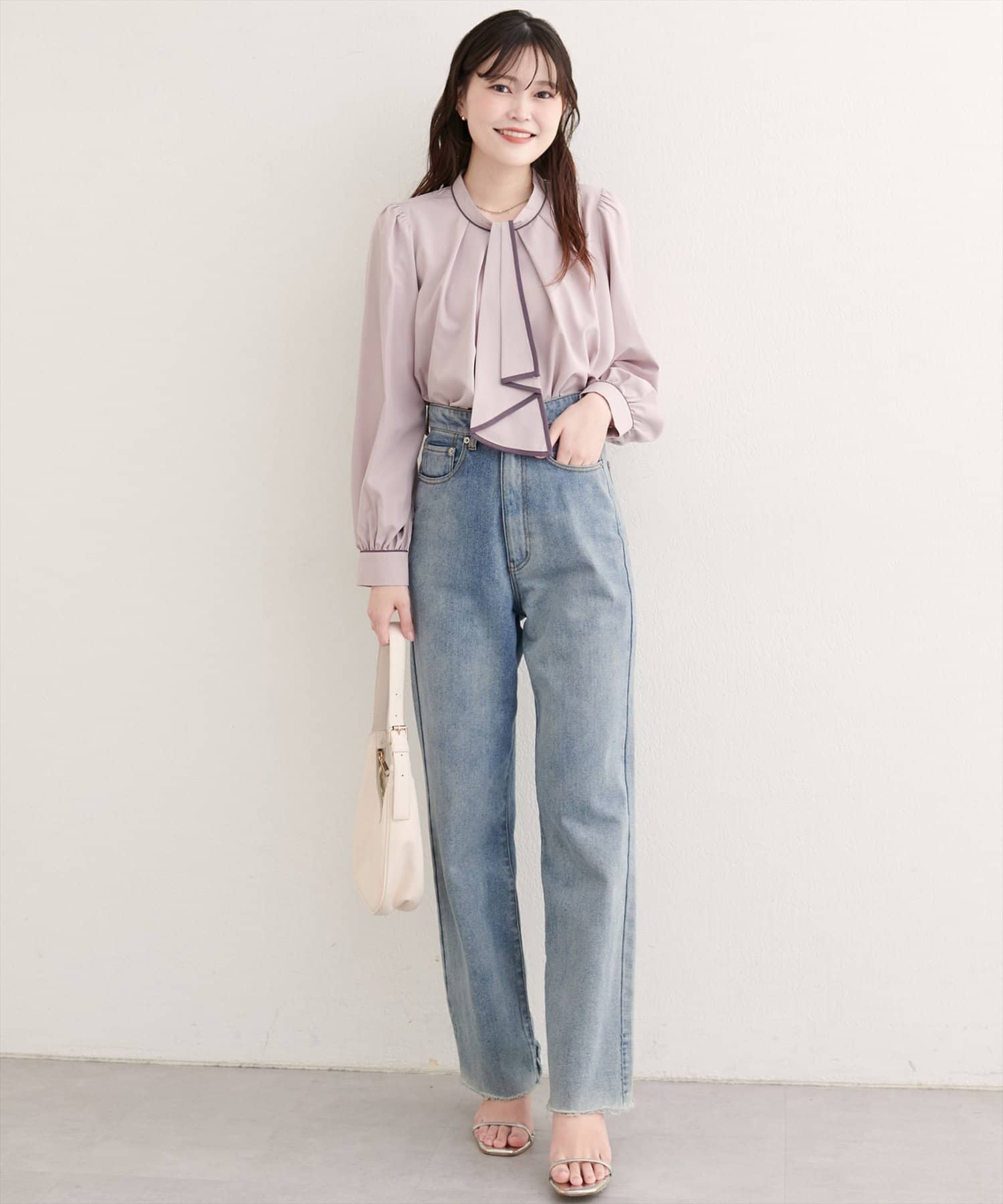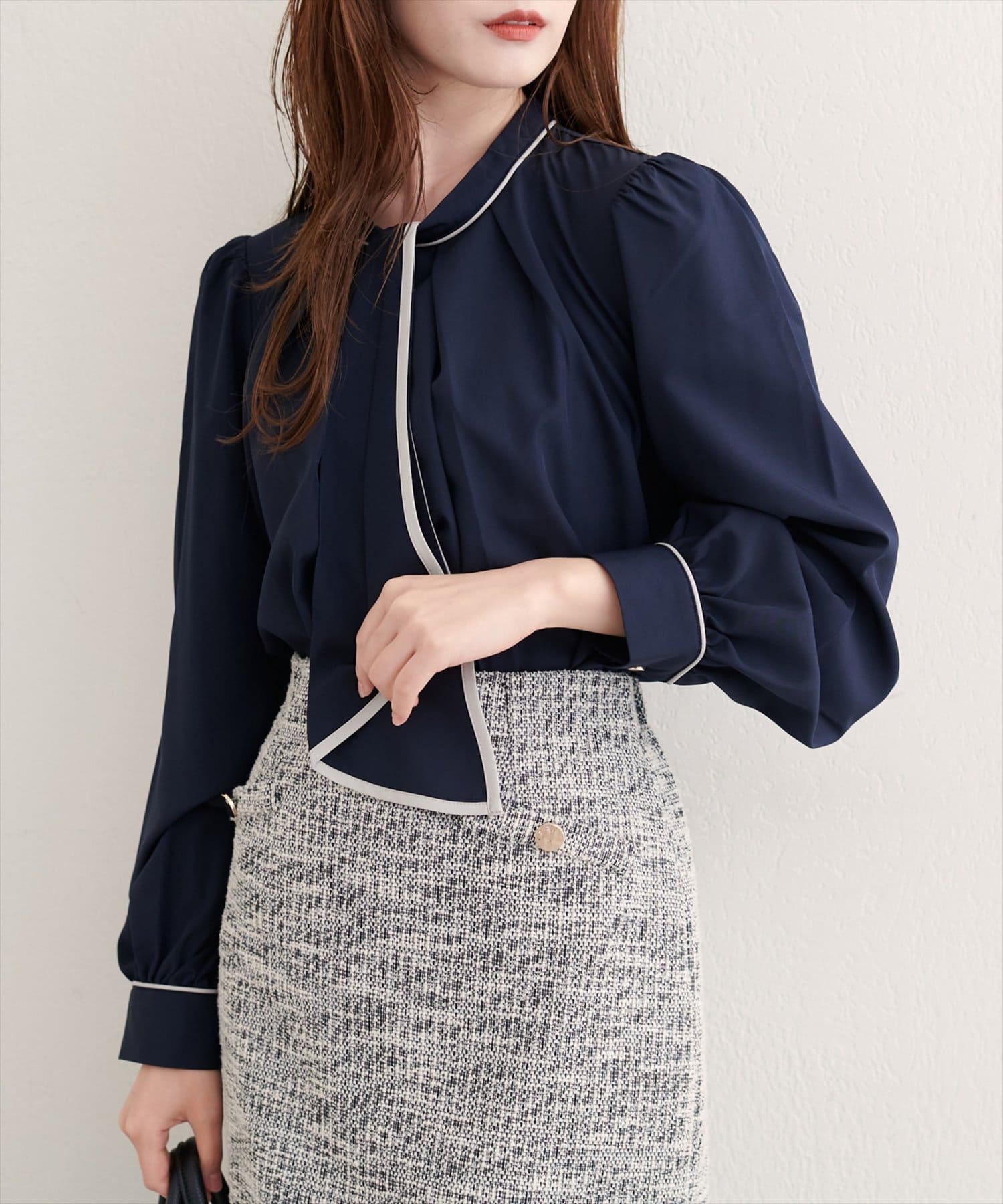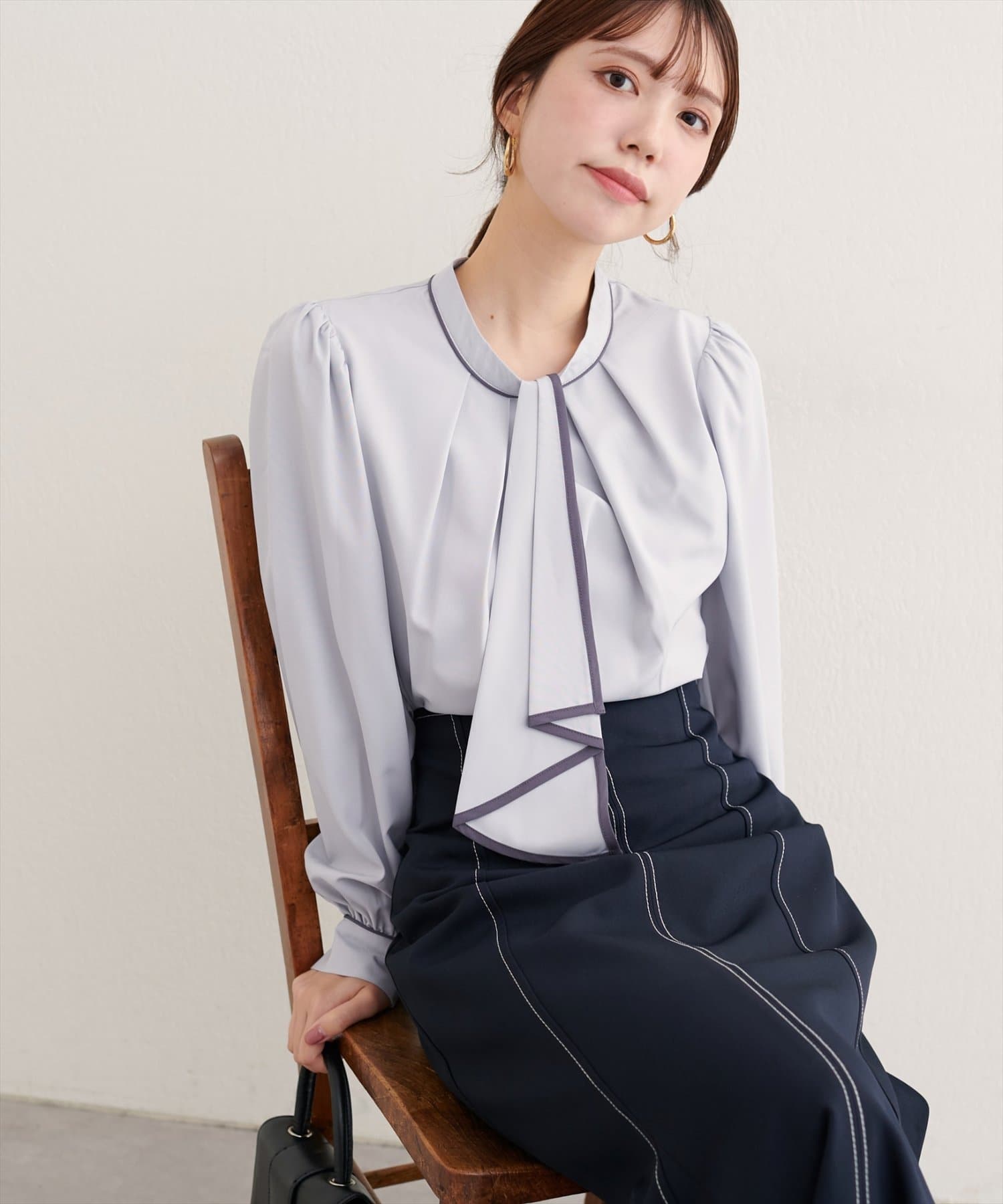 上品な華やかさをもたらしてくれるボウタイブラウス。