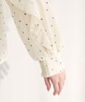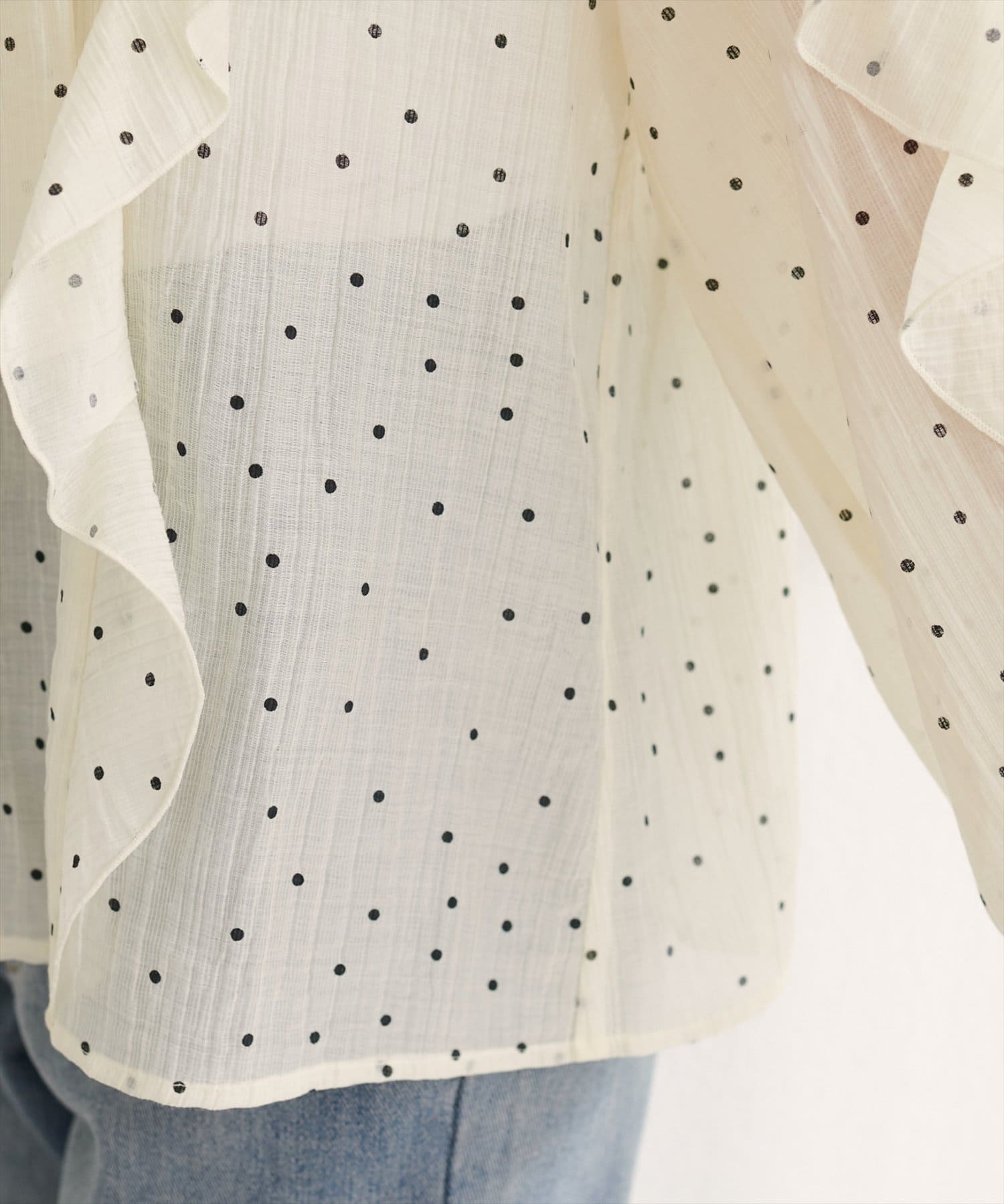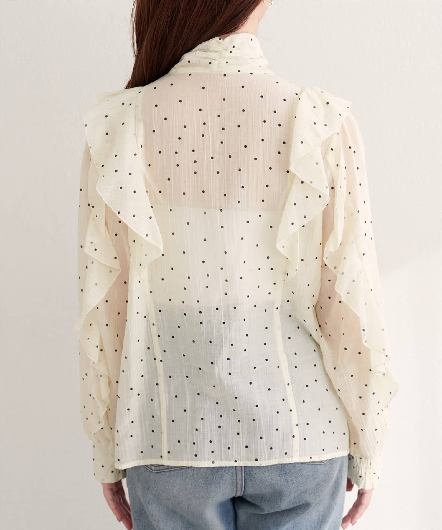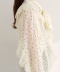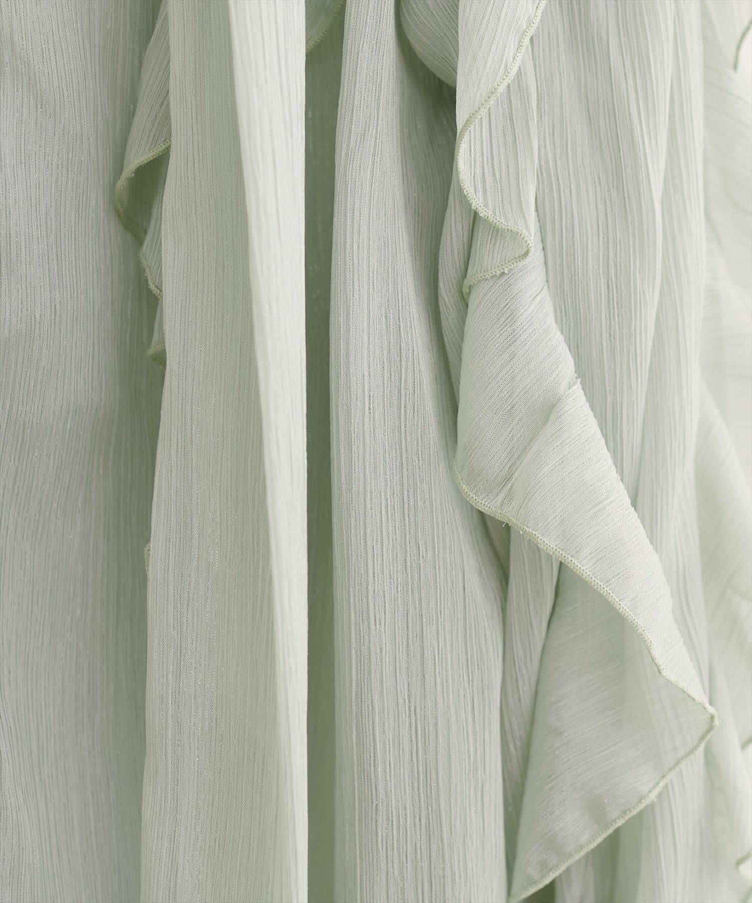袖や身ごろにフリルが大胆に付いており、女性らしさを最大限にひき出してくれるデザインが魅力的。