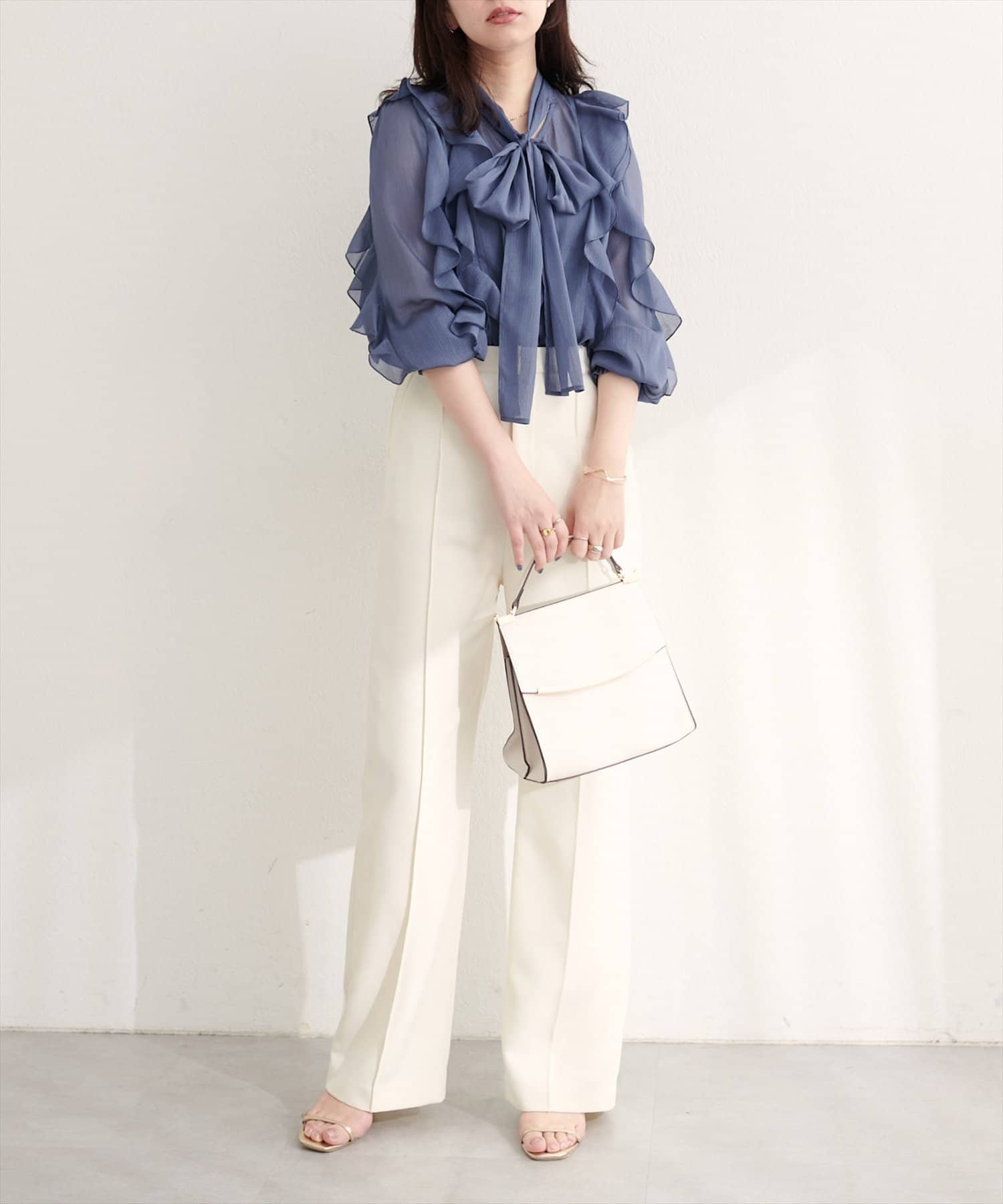 綺麗めパンツやシンプルスカートでお仕事スタイルとしても万能。
