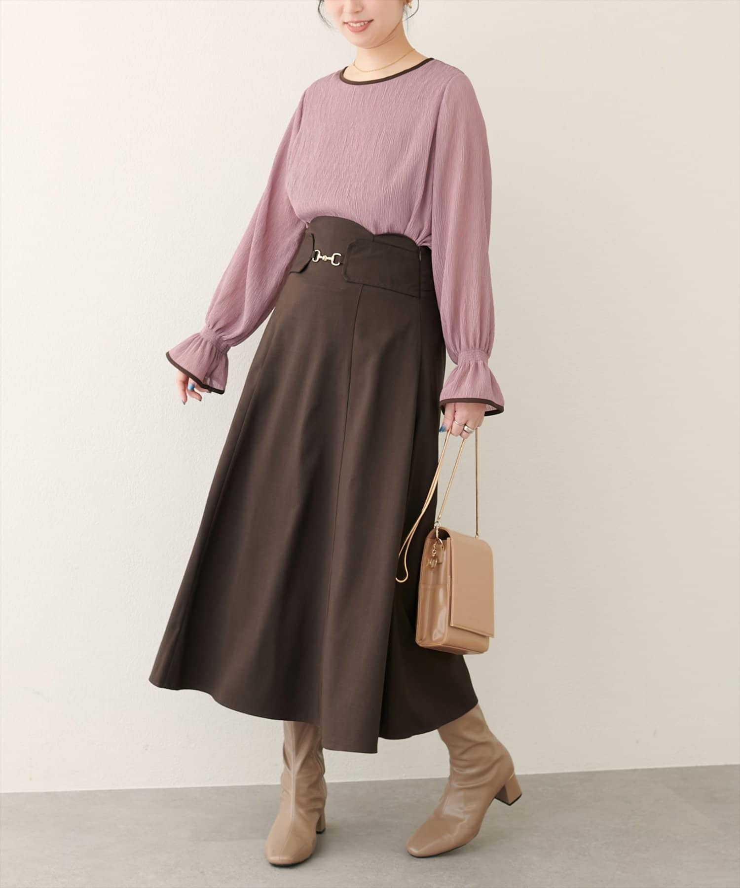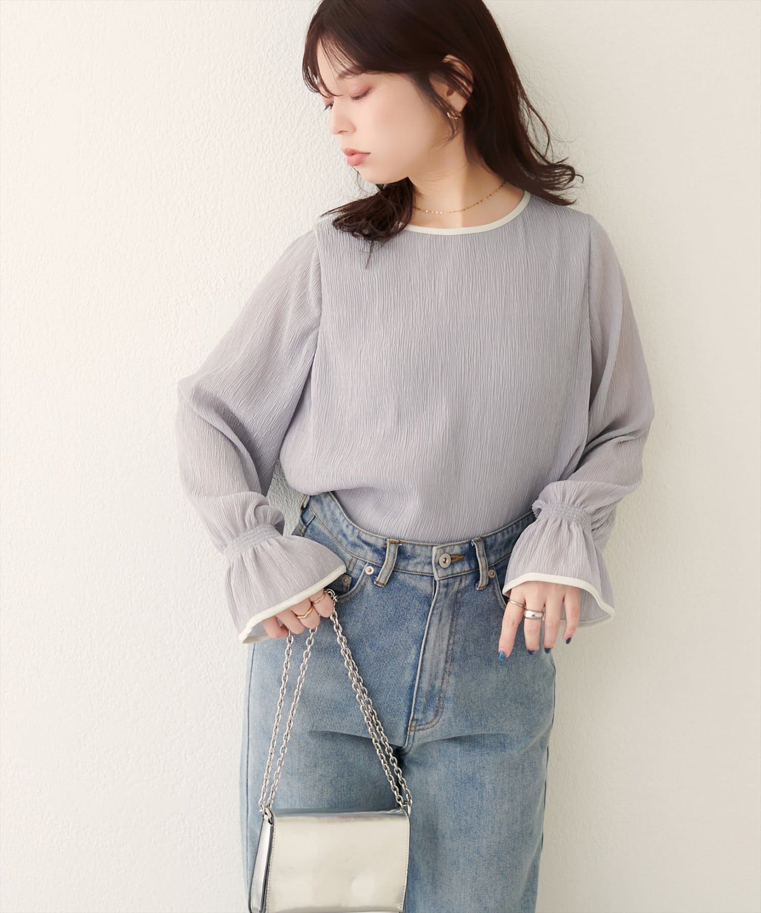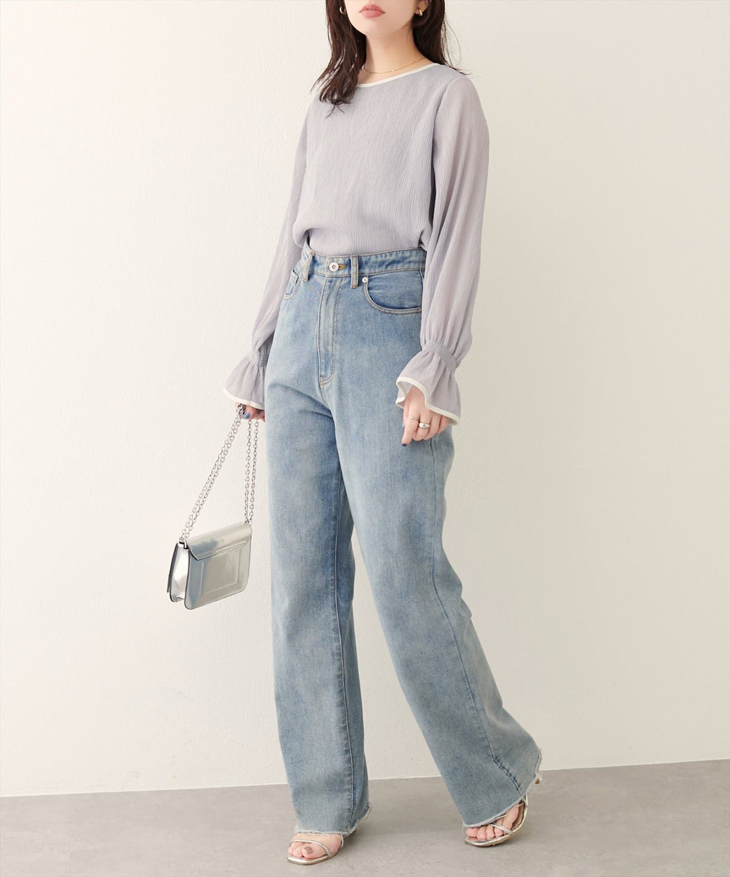 袖口のフレアデザインは、手元を華奢に見せてくれるだけでなく、コーディネートにフェミニンな印象をプラスしてくれます。