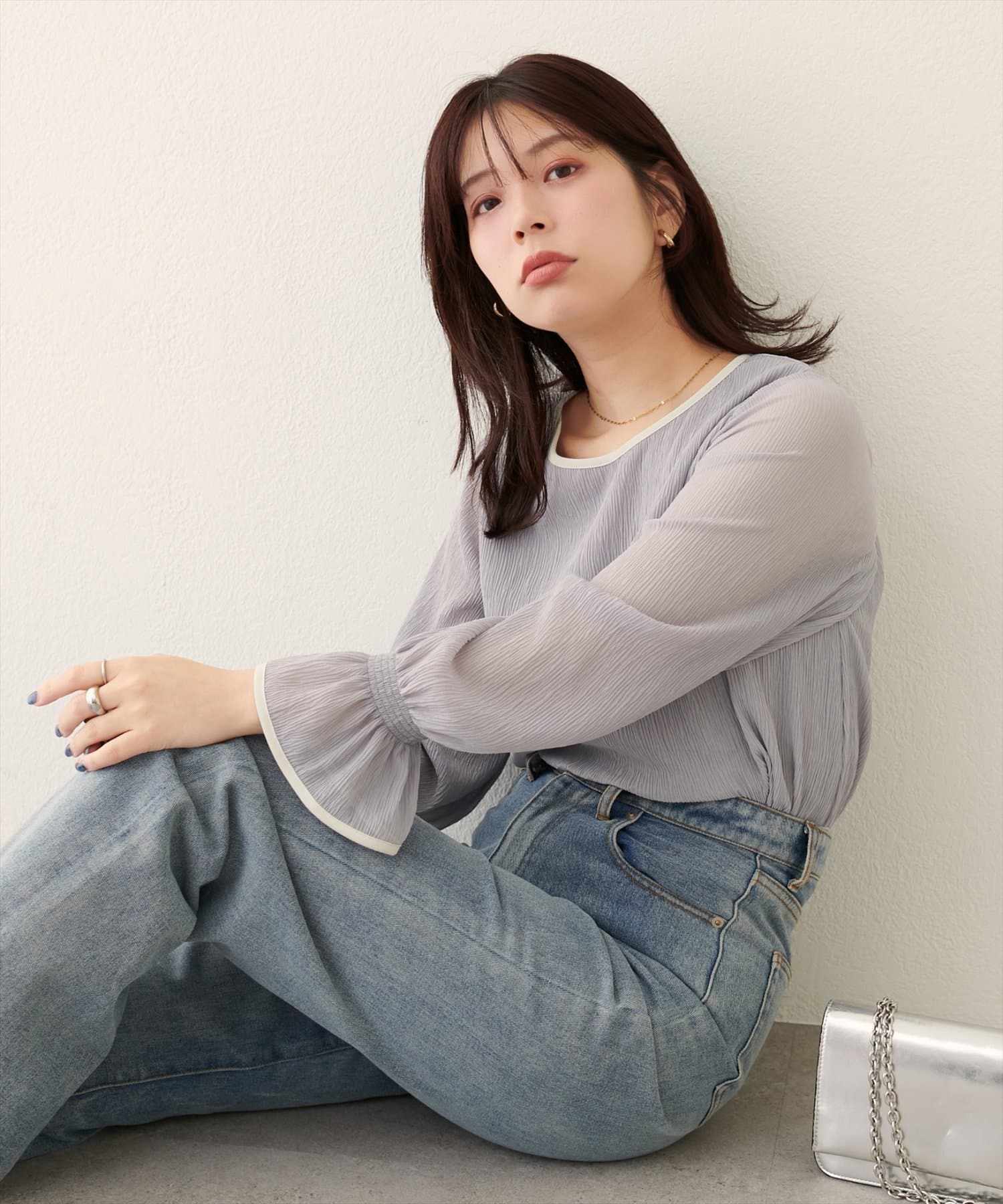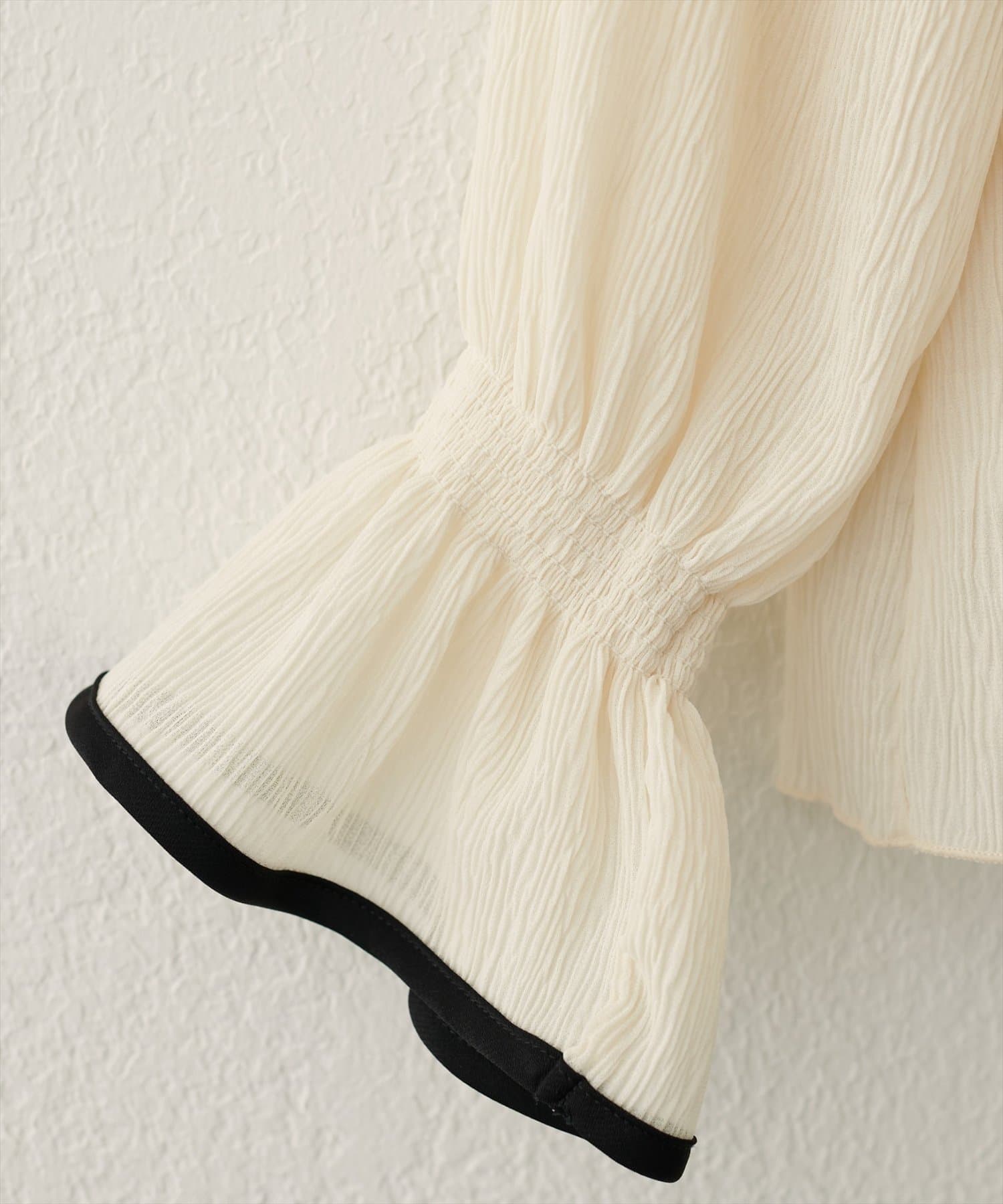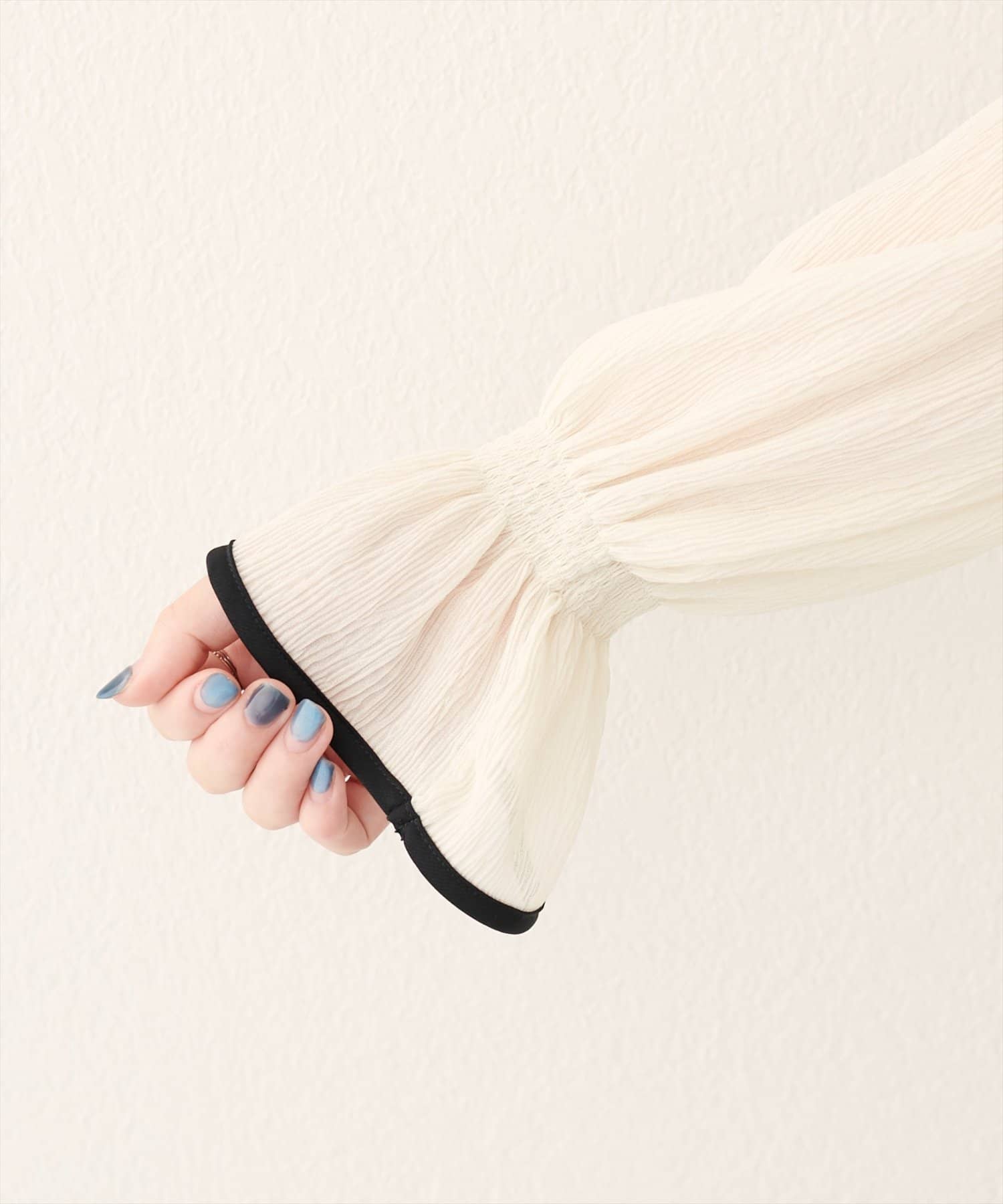 袖口のフレアデザインは、手元を華奢に見せてくれるだけでなく、コーディネートにフェミニンな印象をプラスしてくれます。