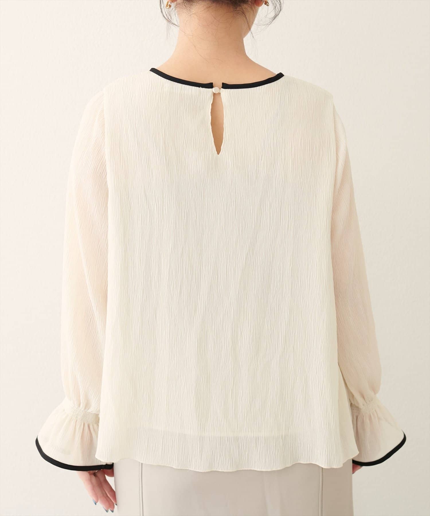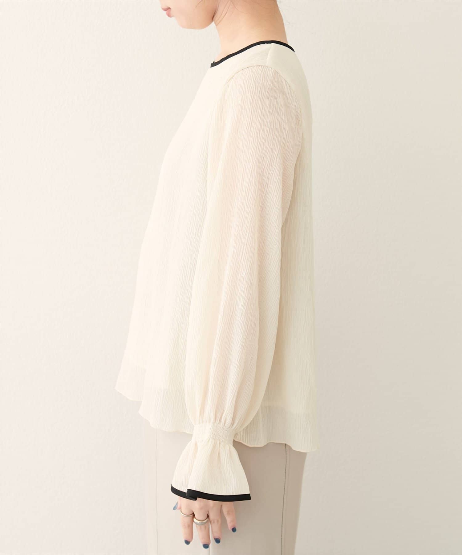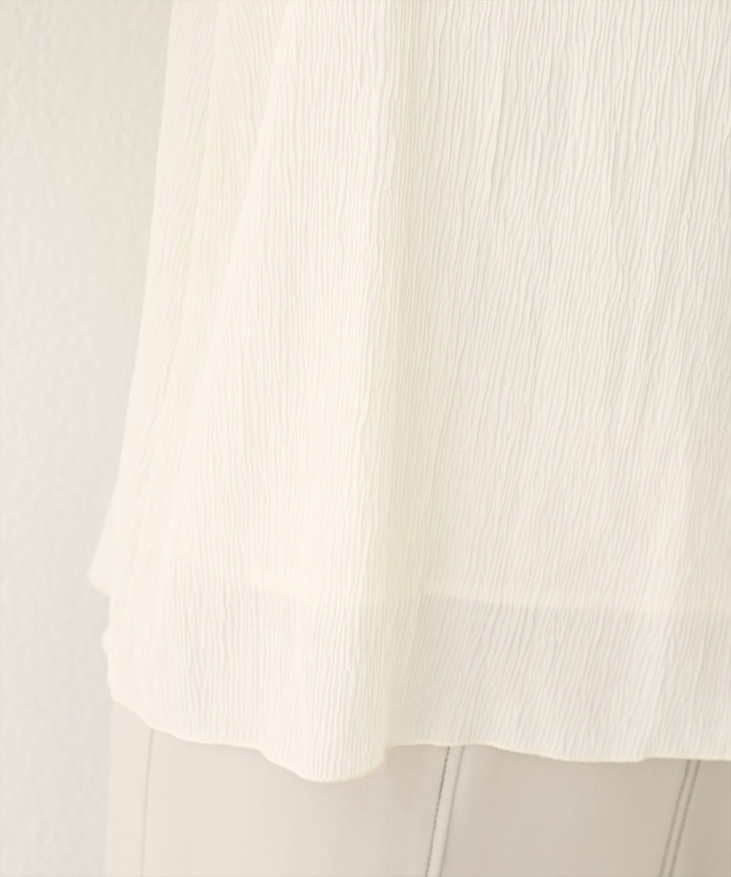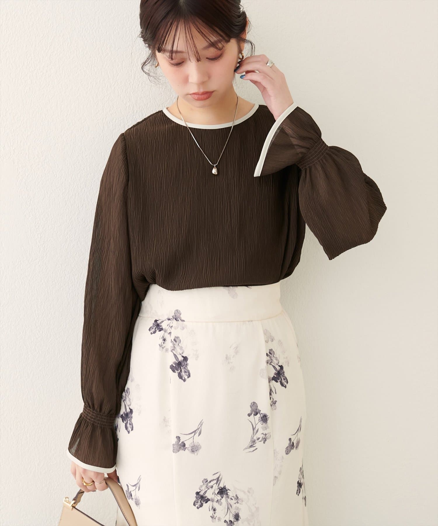一目見た瞬間から心惹かれる、繊細なプリーツ加工が施されたブラウス。