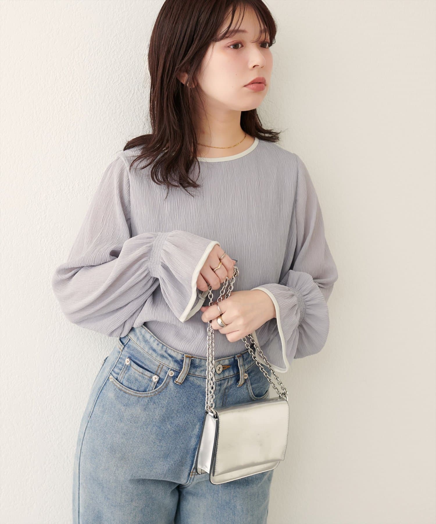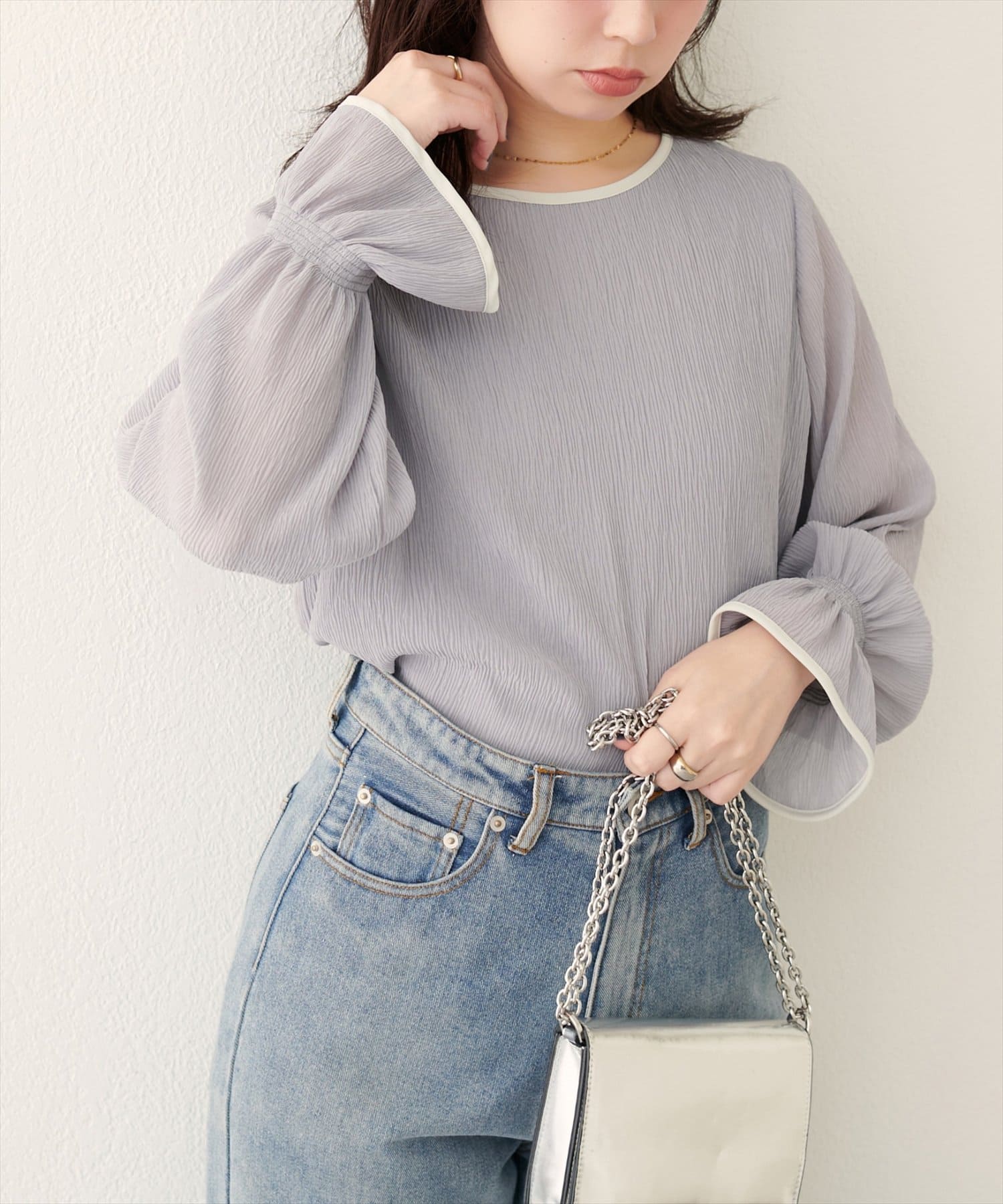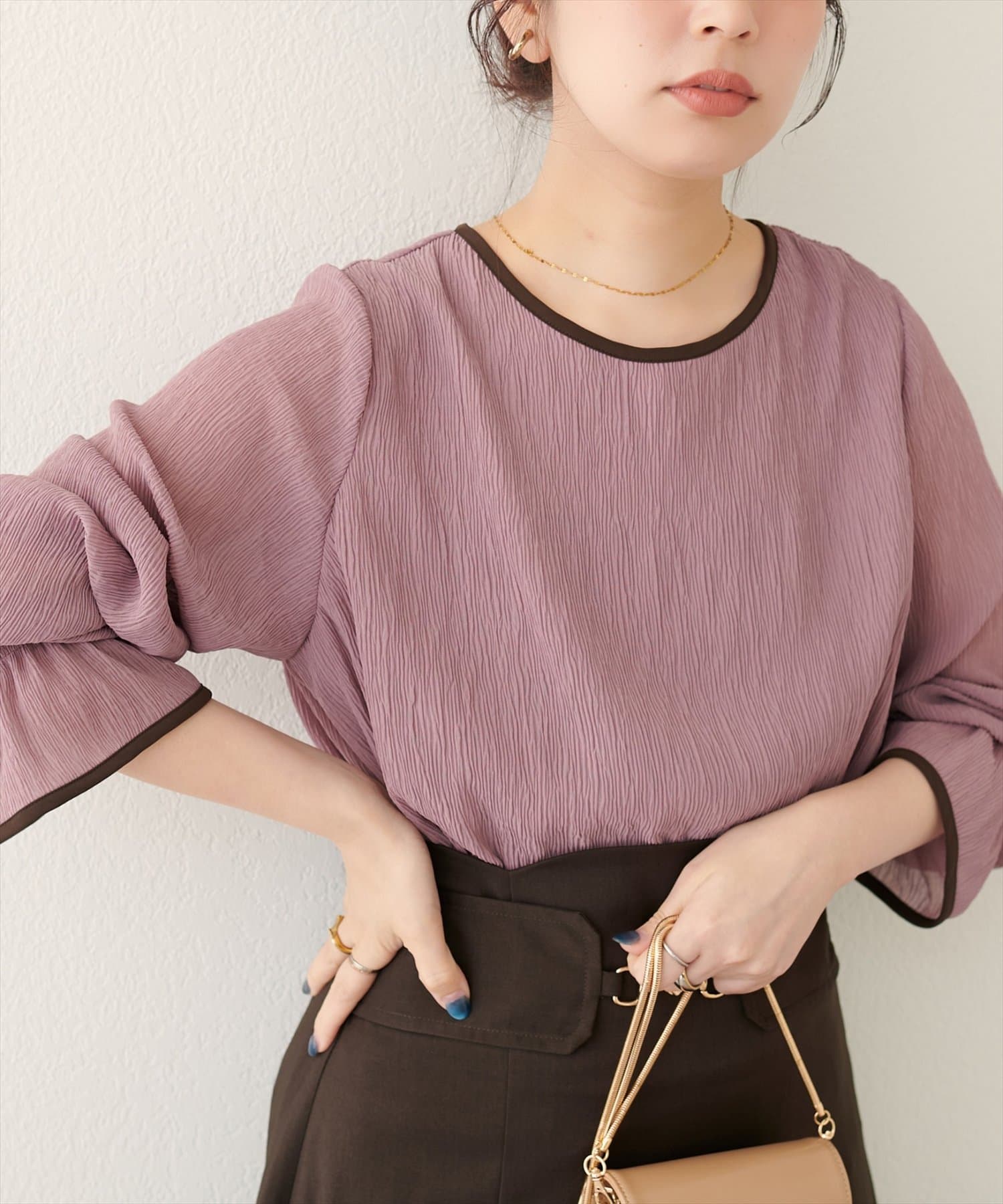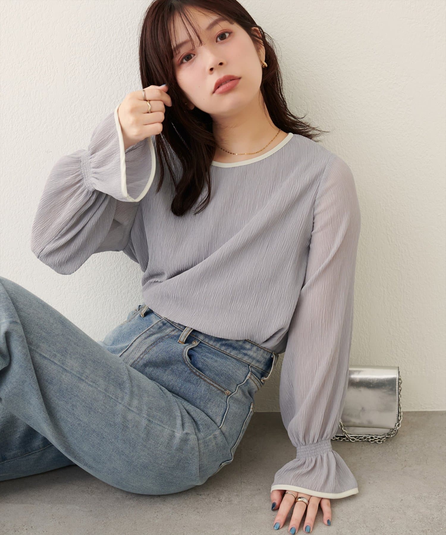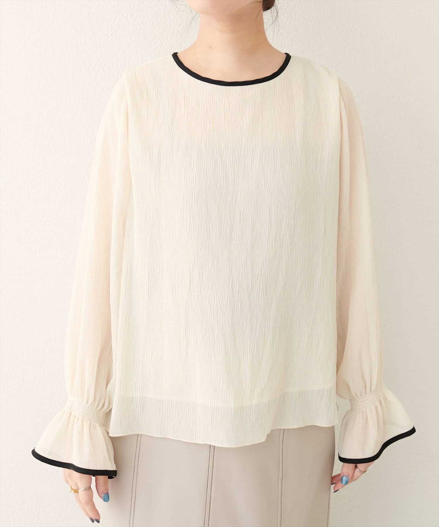 一目見た瞬間から心惹かれる、繊細なプリーツ加工が施されたブラウス。