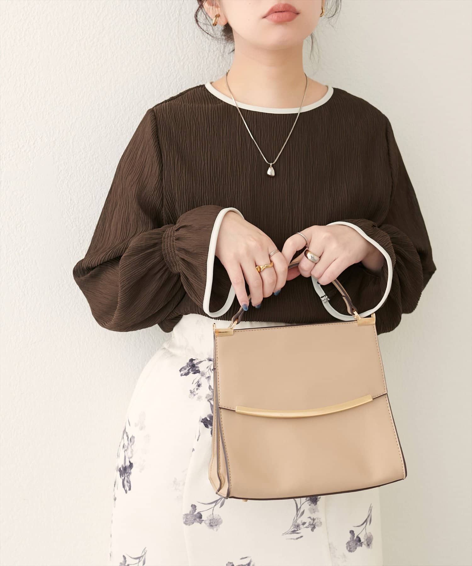 ブラウスのカラーに合わせて、ゴールドやシルバーを選ぶと、より統一感のあるスタイリングに仕上がります。
