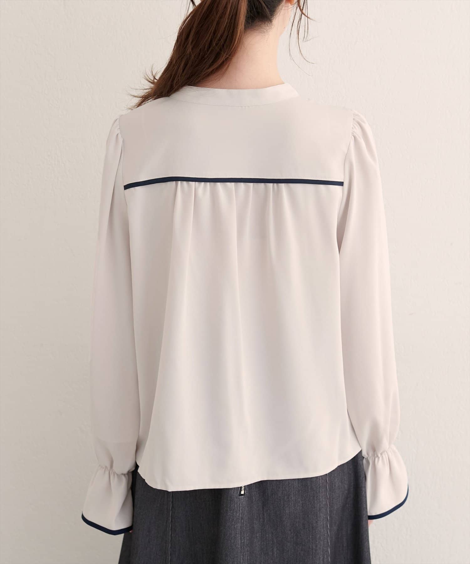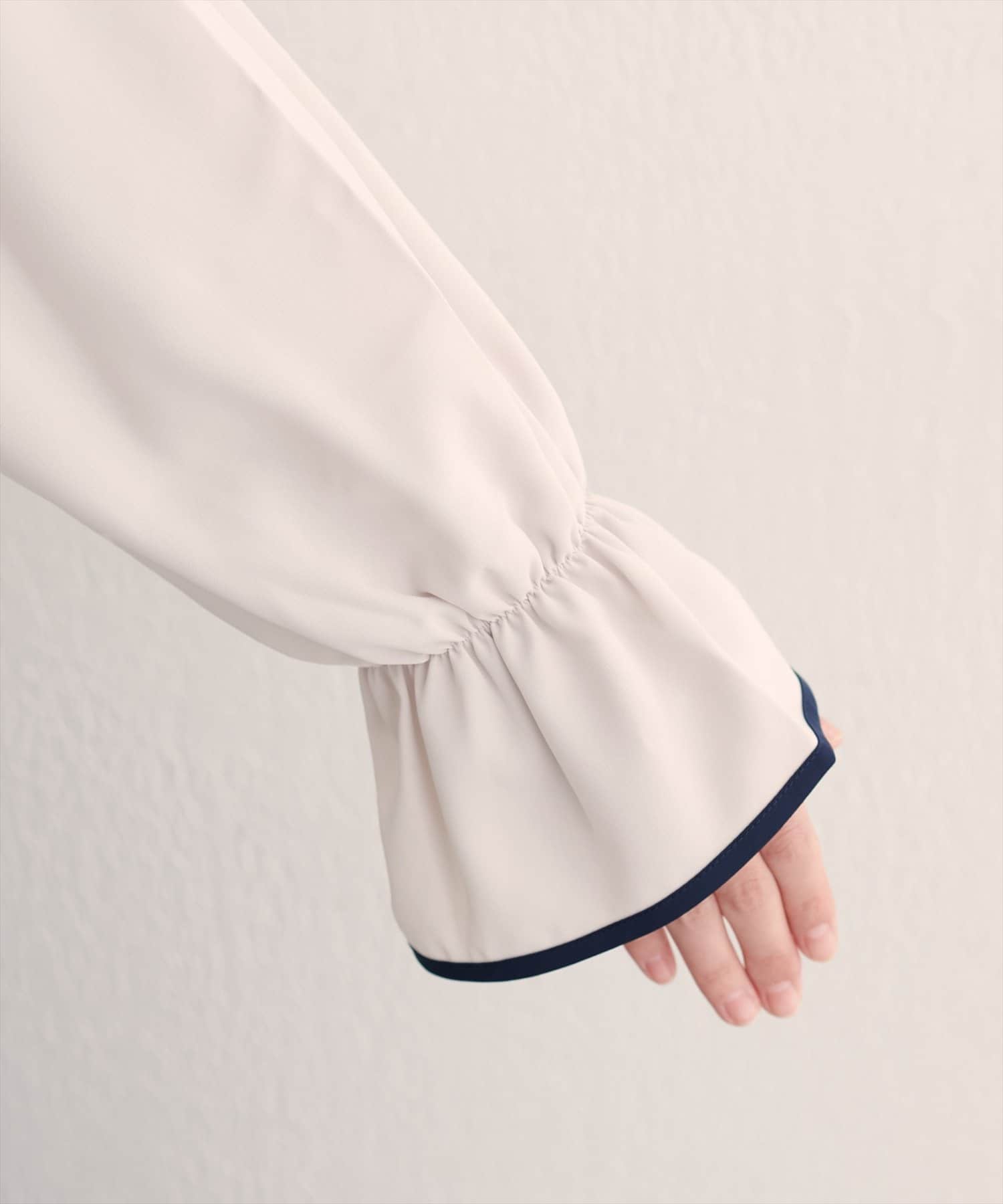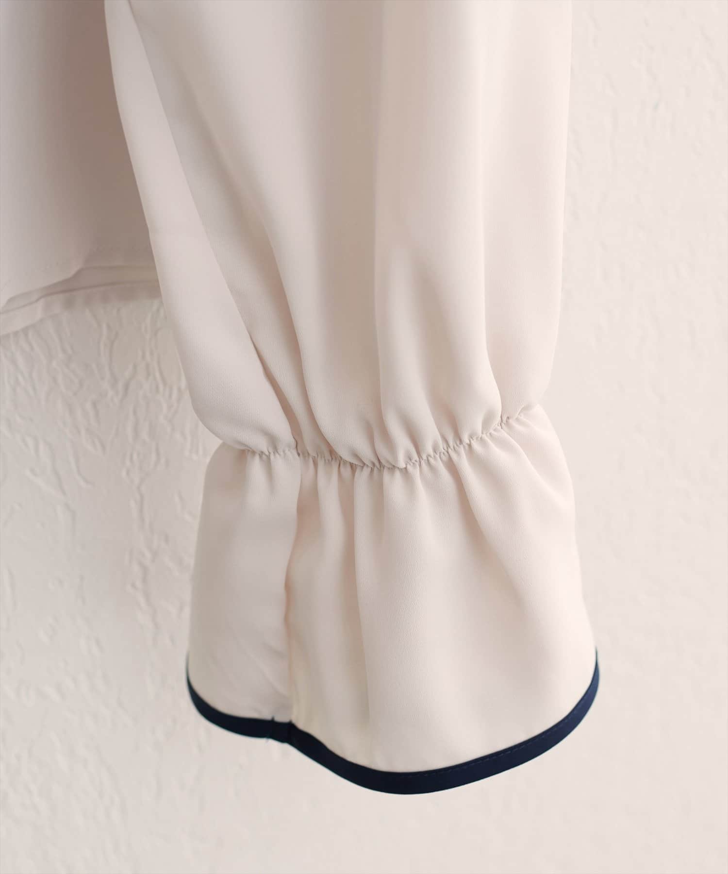 袖口には、同色のパイピングが施されており、シンプルながらも洗練された雰囲気を演出します。