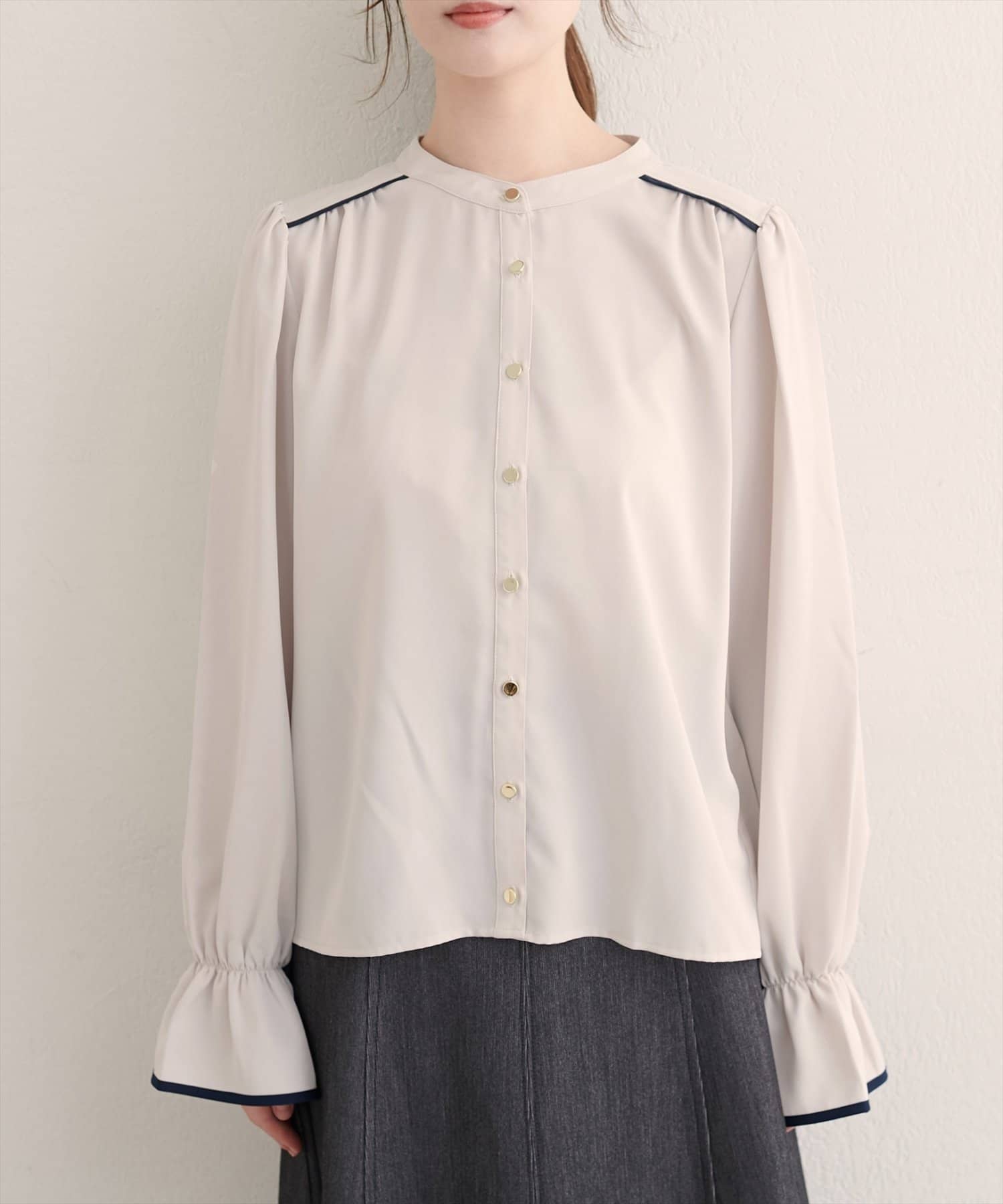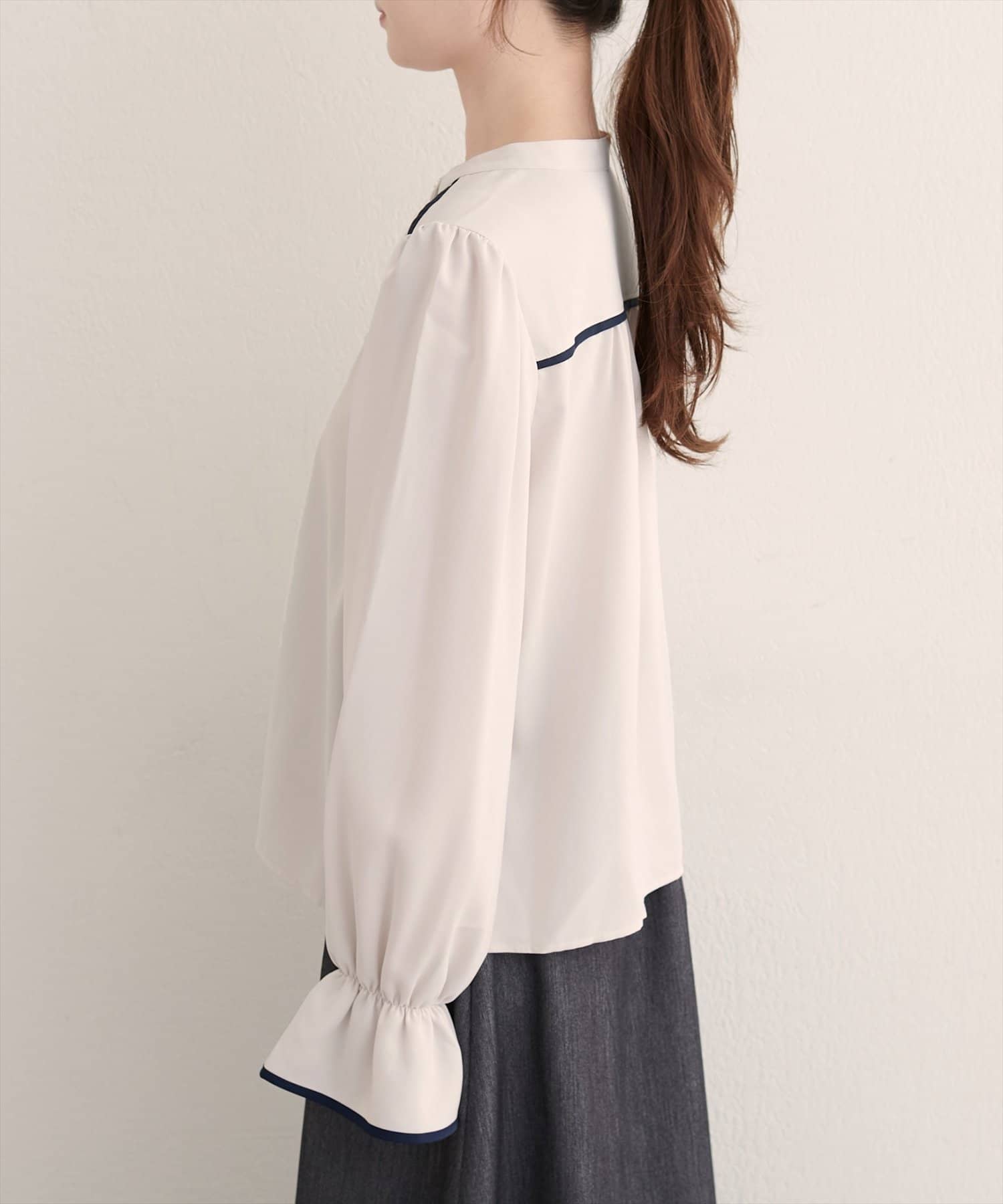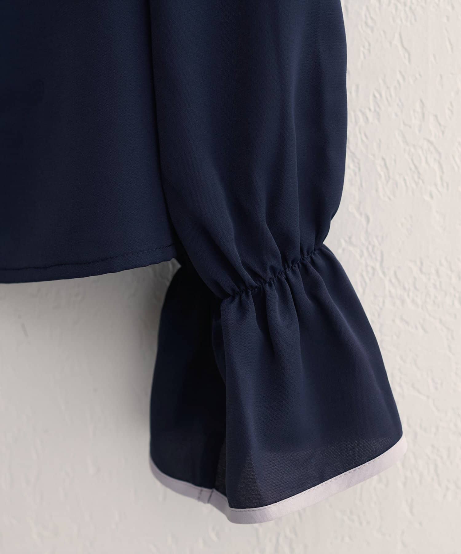 袖口には、同色のパイピングが施されており、シンプルながらも洗練された雰囲気を演出します。