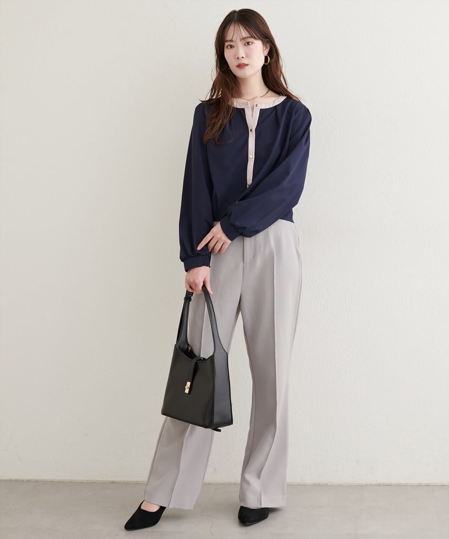 きれいめなパンツやスカートと合わせれば、オフィスにも対応できるきちんとスタイルに。