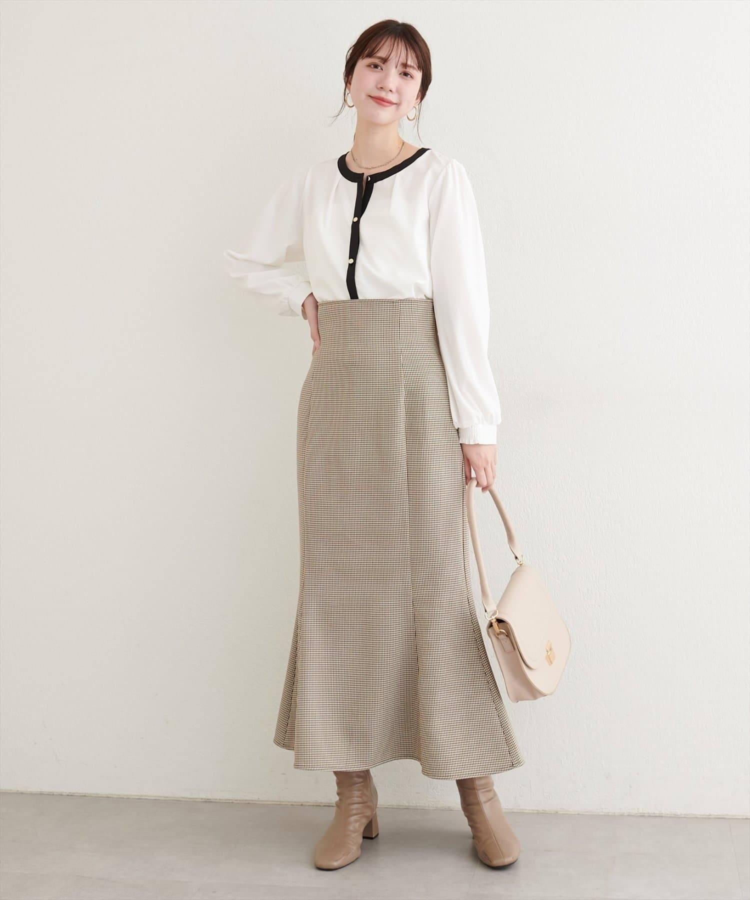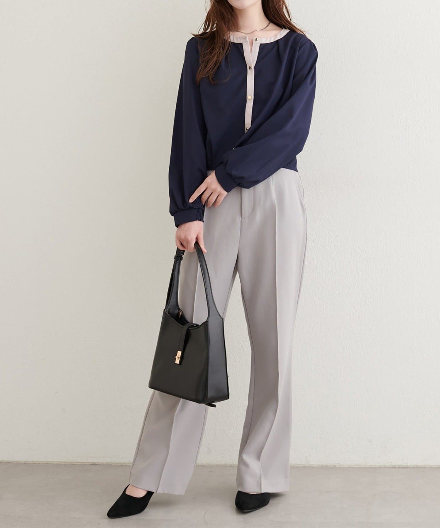 きれいめなパンツやスカートと合わせれば、オフィスにも対応できるきちんとスタイルに。