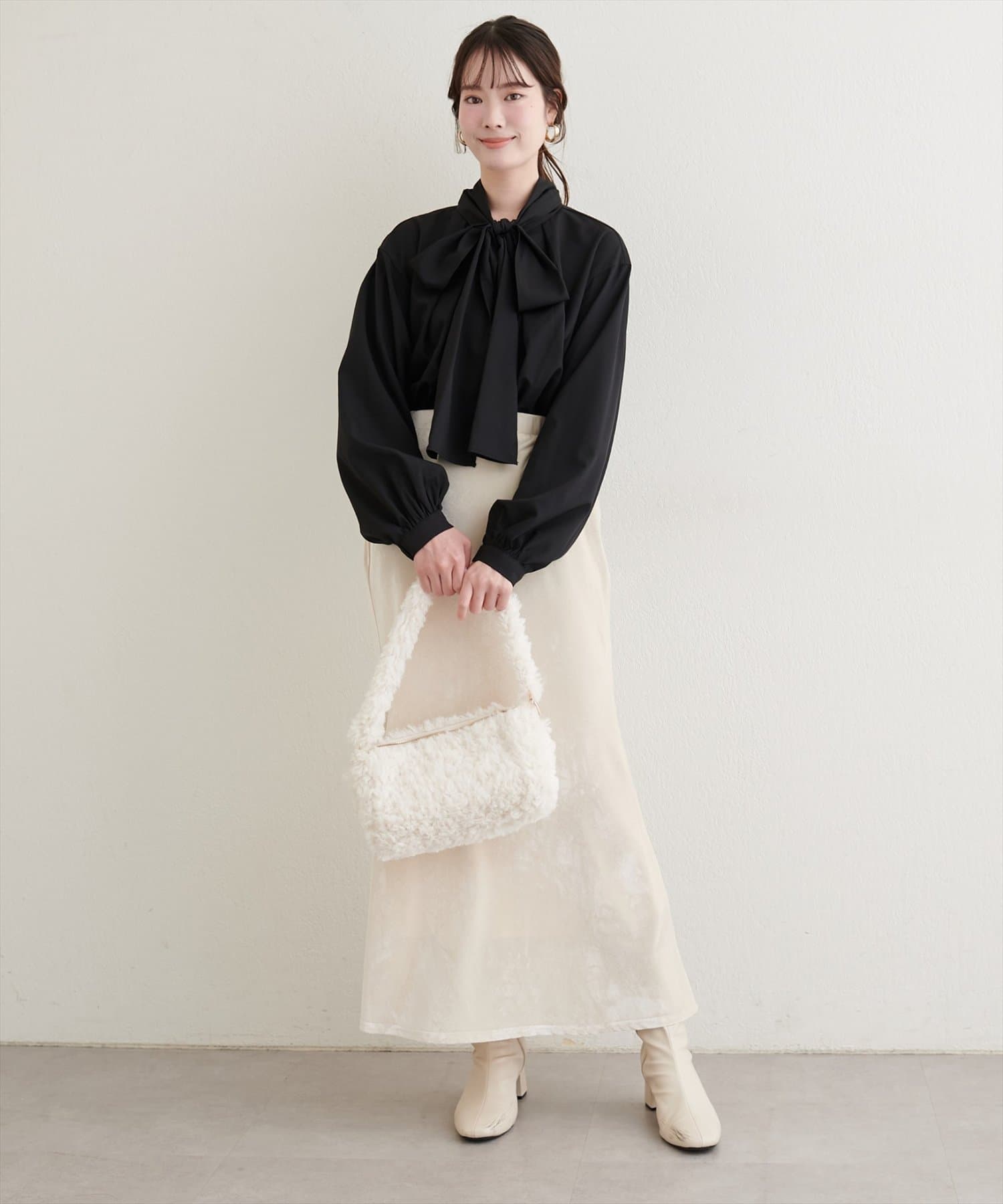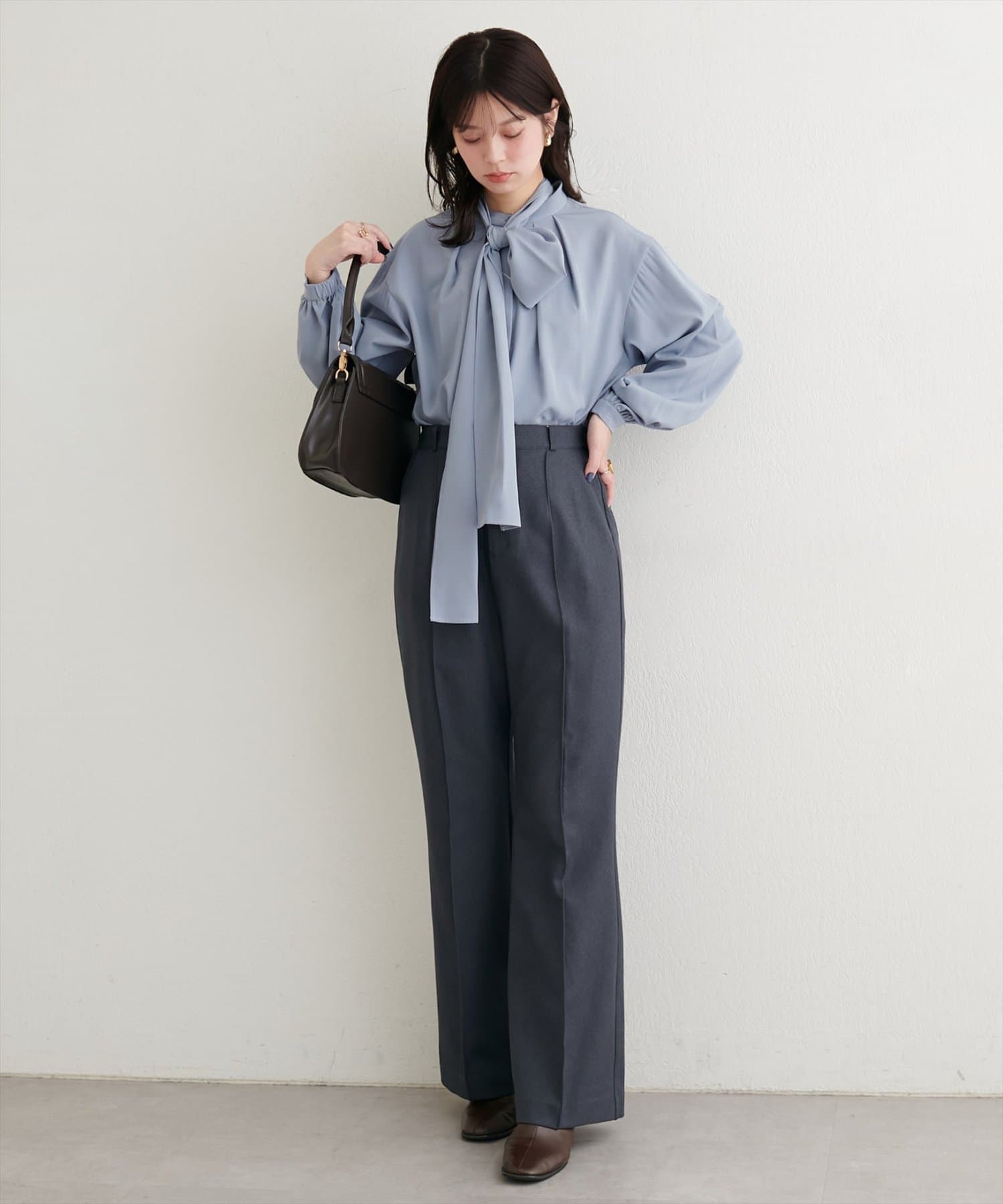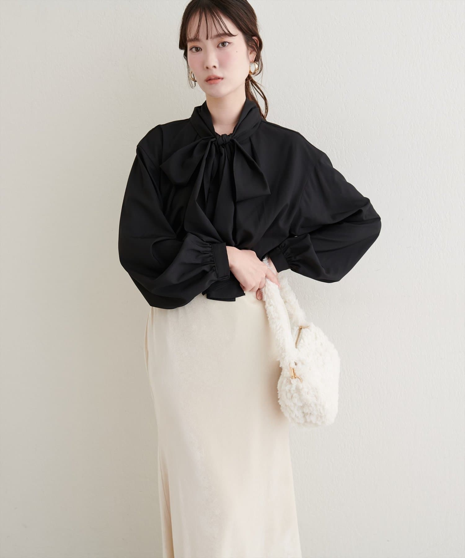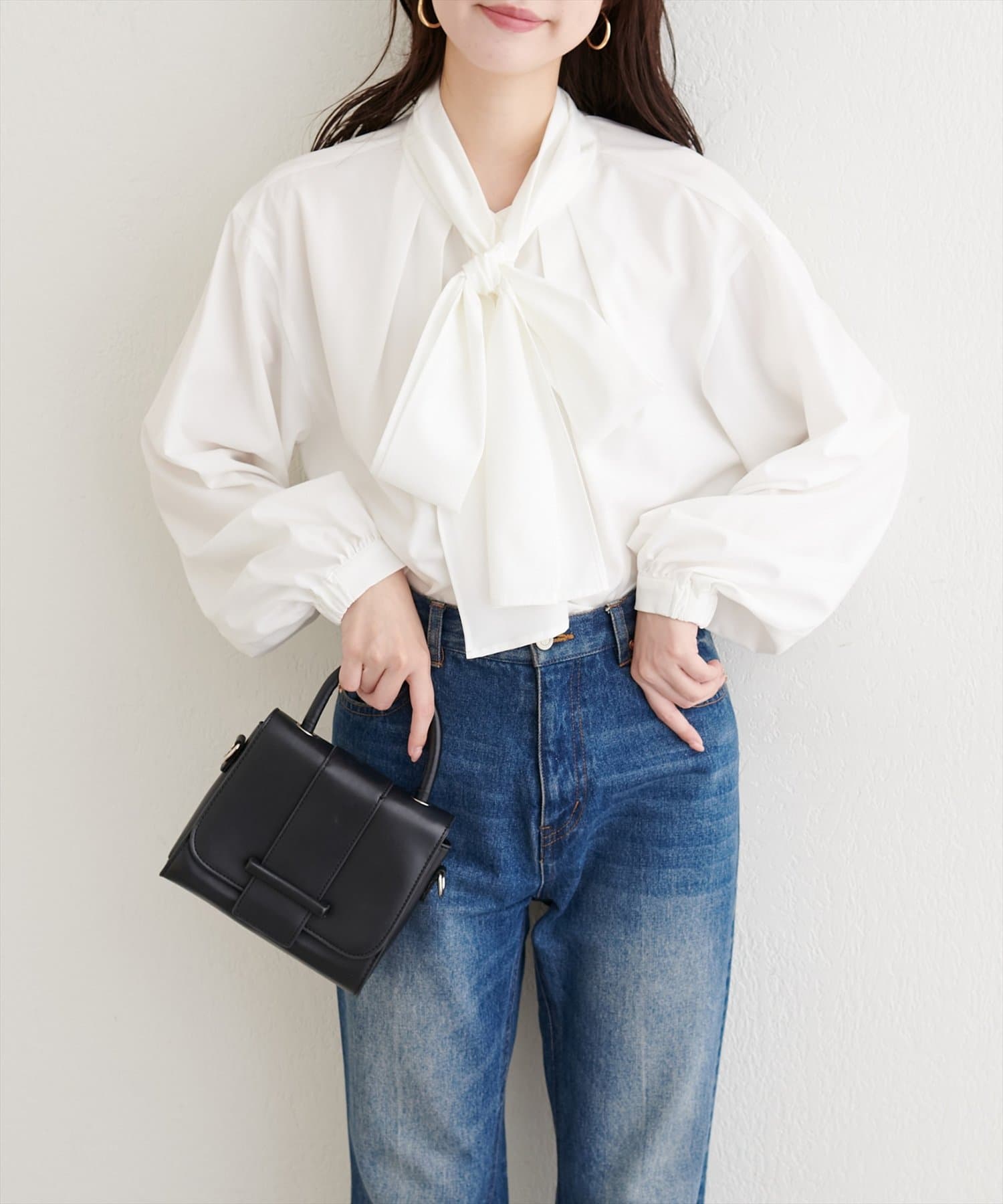 クラシカルなボウタイリボンが、洗練された大人の女性らしさを演出。