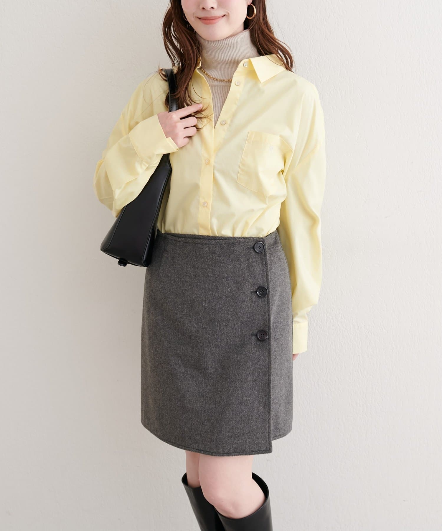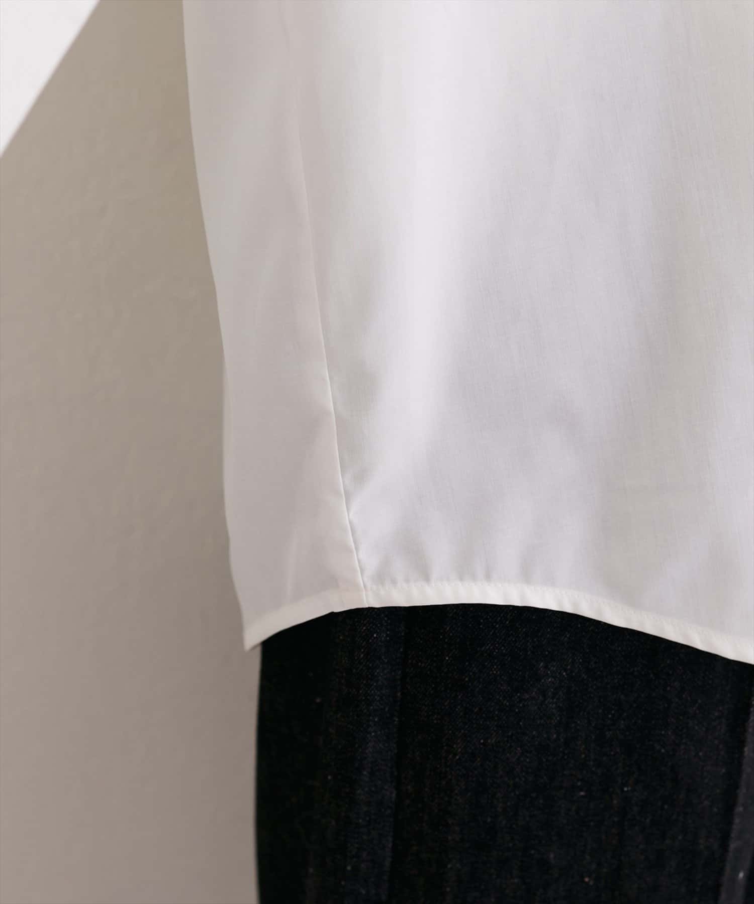 襟元はベーシックなシャツカラーで、きちんと感をキープ。