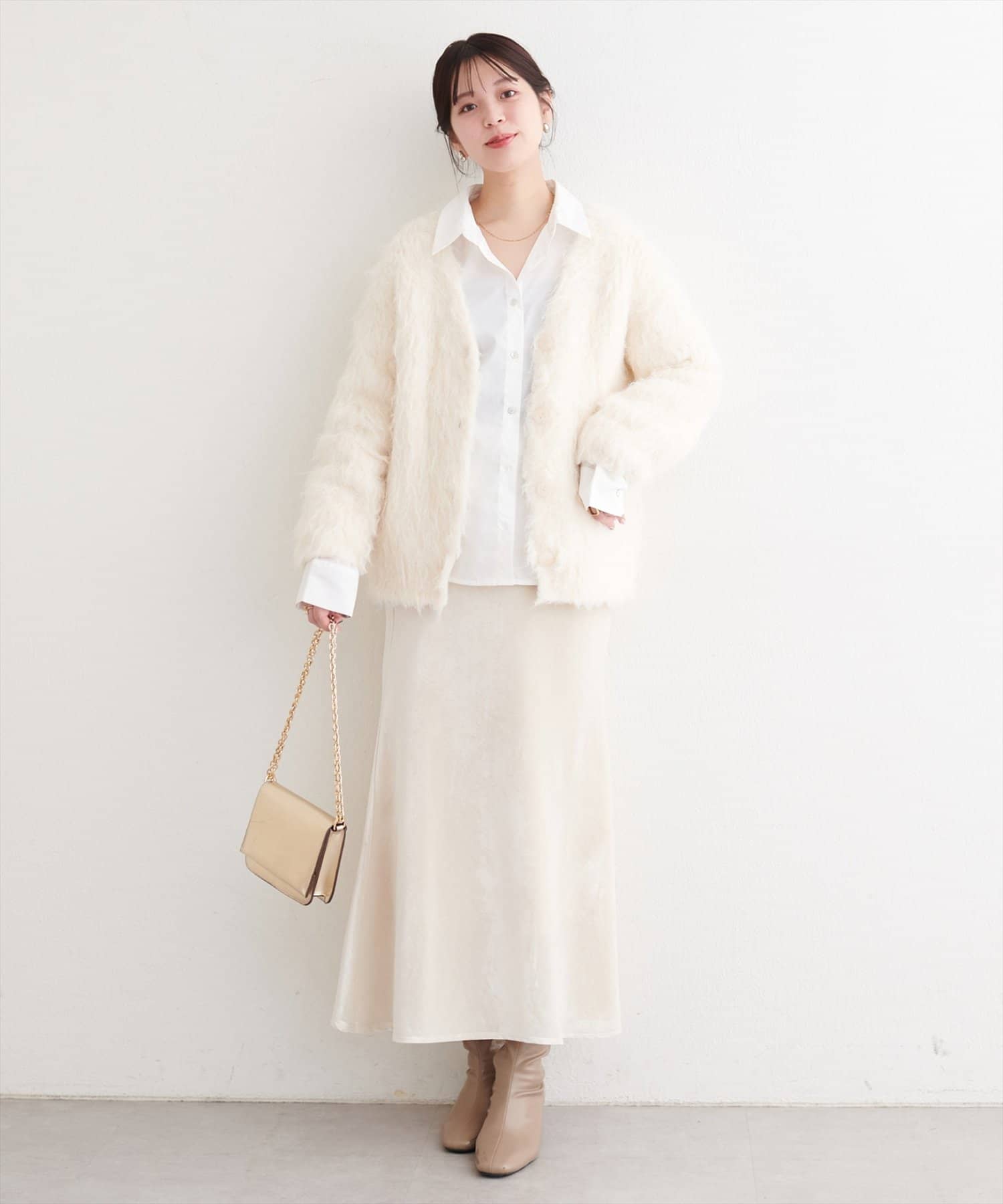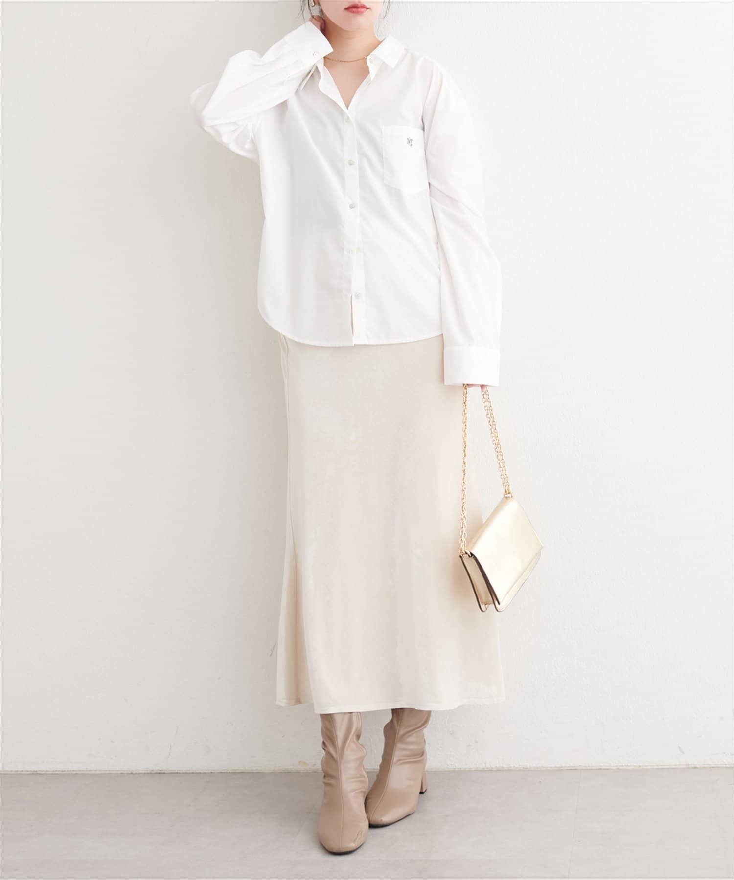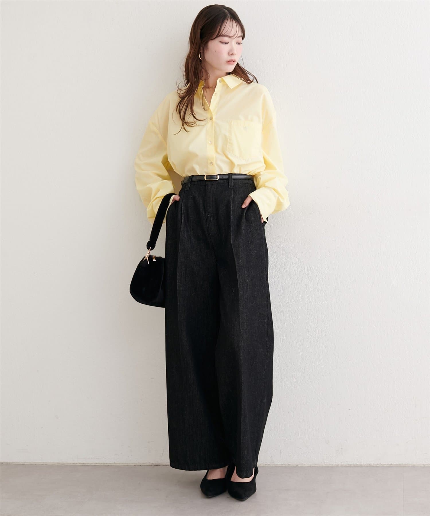 きれいめに着こなすなら、テーパードパンツやタイトスカートと合わせて、オフィススタイルにも。