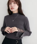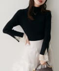 体のラインに優しくフィットする伸縮性のあるリブニットに、袖のディティールが女性らしさを演出します。