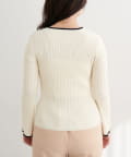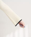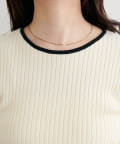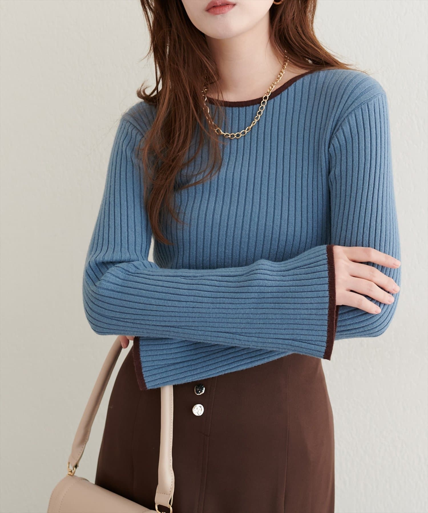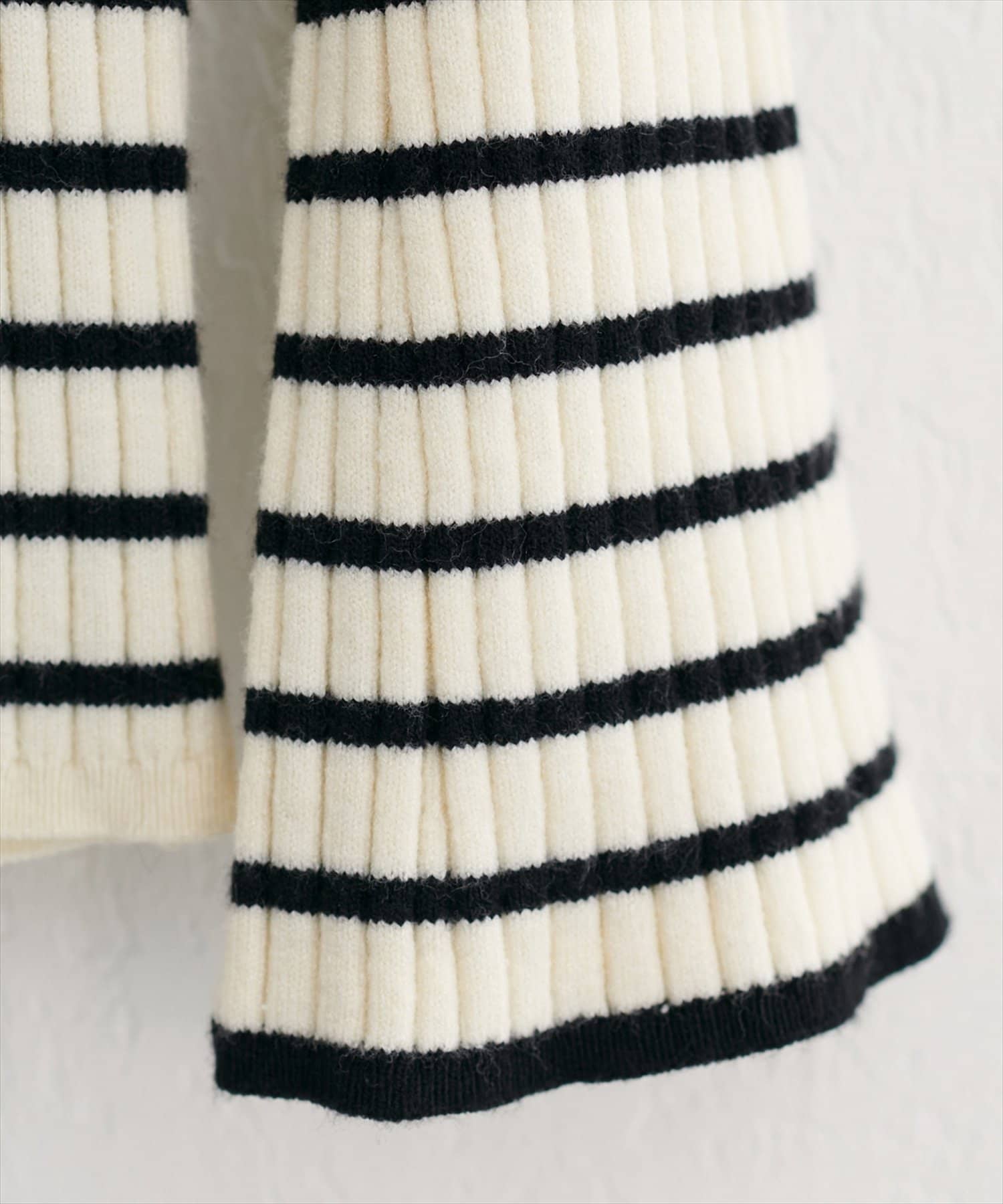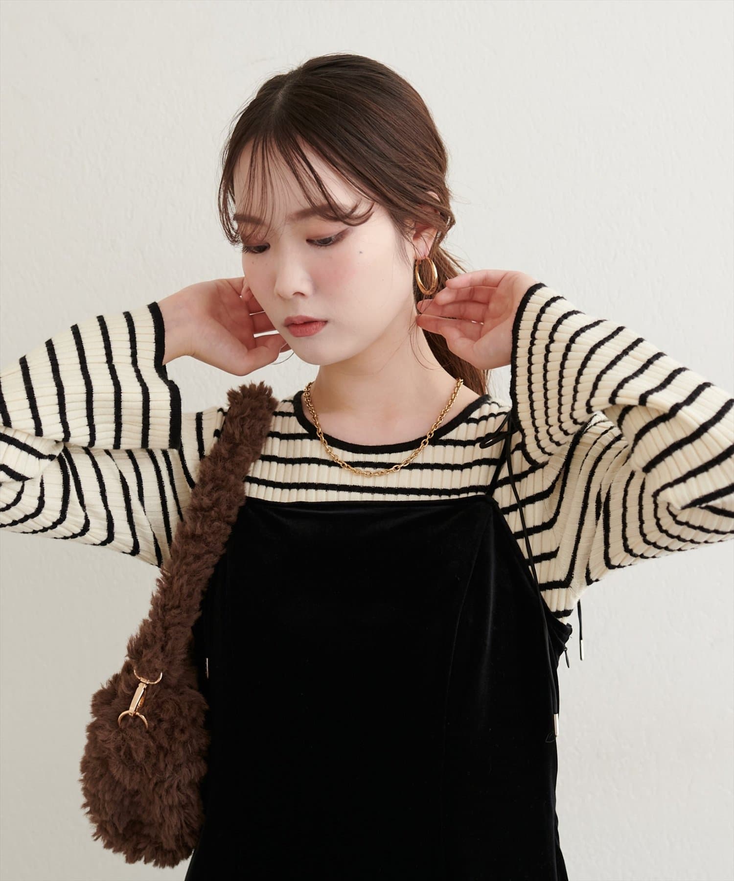 ネックラインとボーダーの配色使いが、コーデのアクセントになり、
