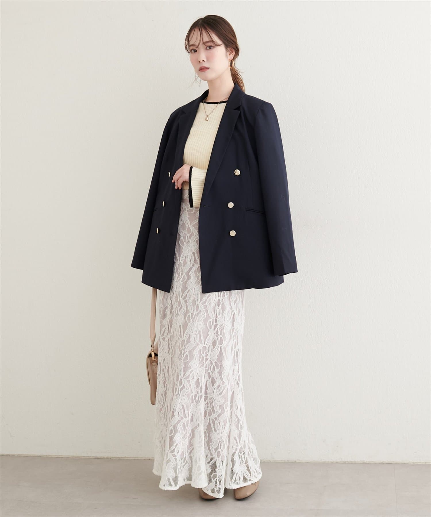 今季は金ボタンジャケットや羽織りアイテムとのレイヤードで、
