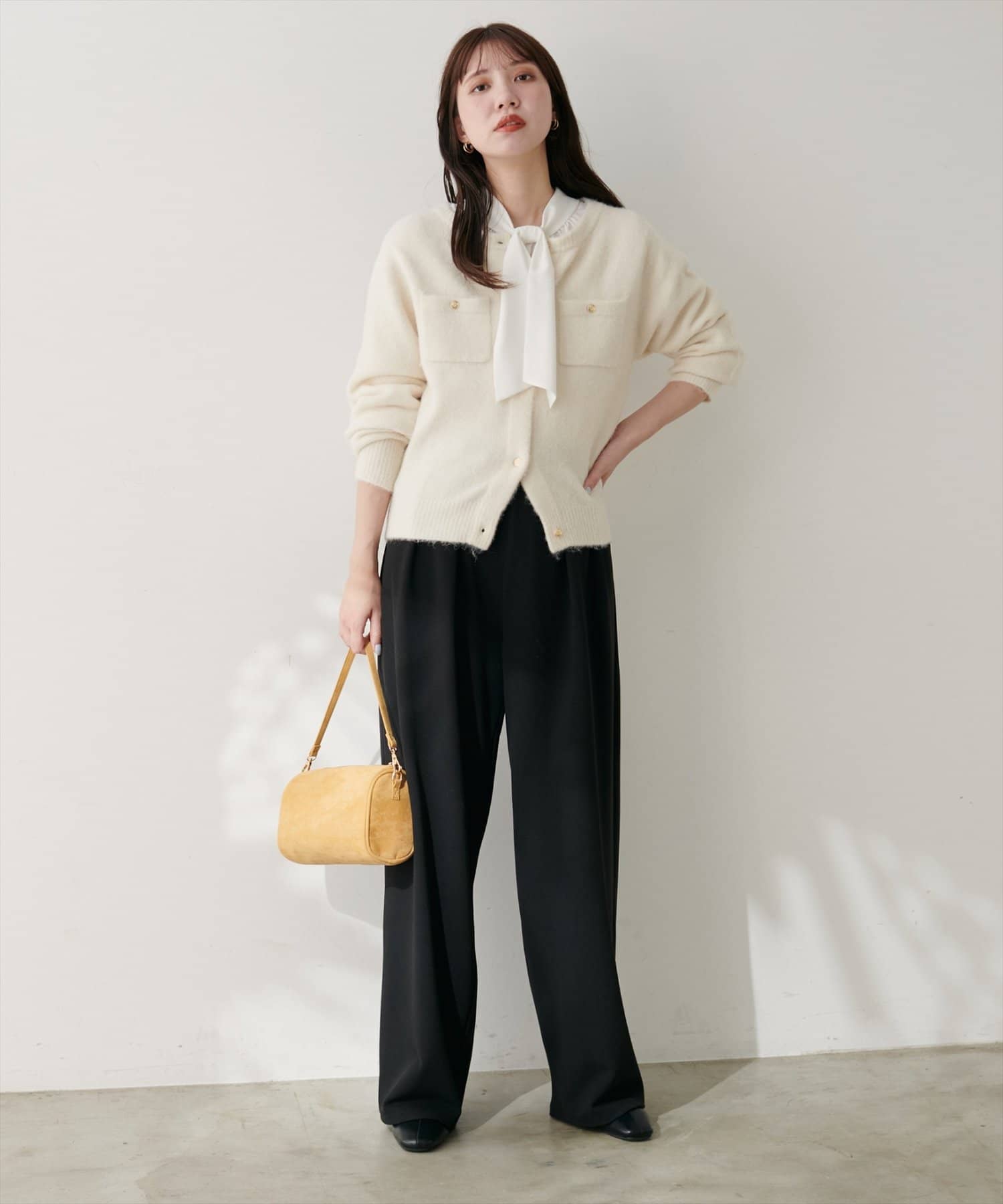 デニムやワイドパンツと合わせて、リラックス感のある着こなしに。