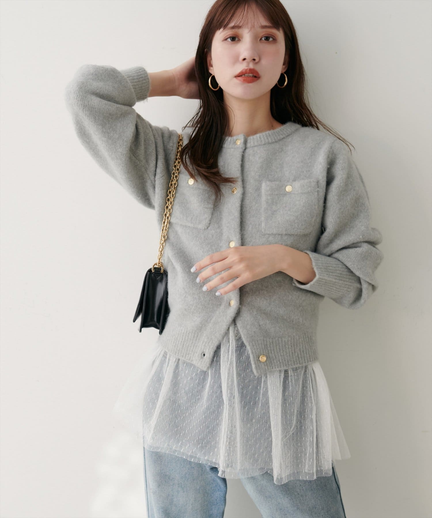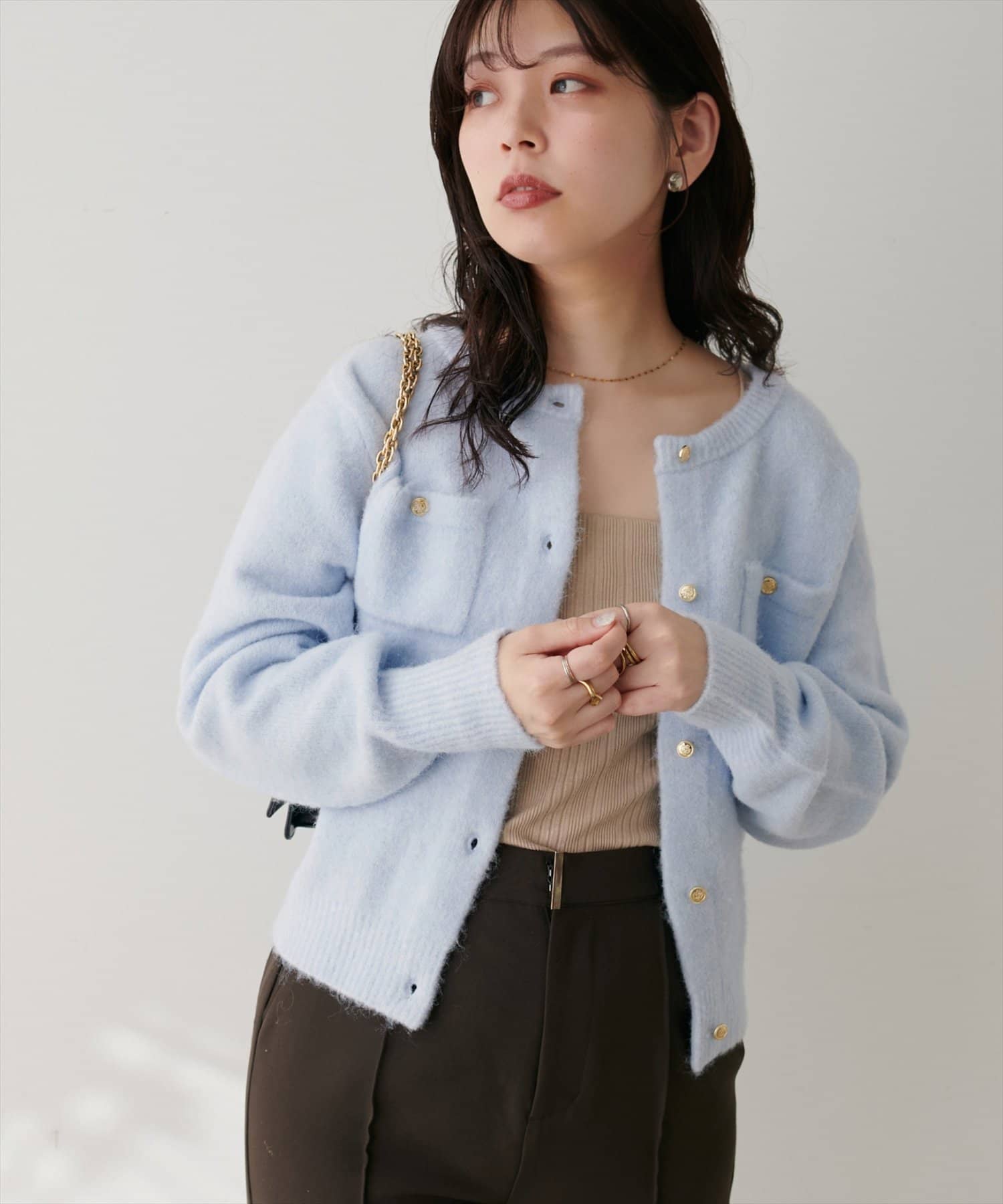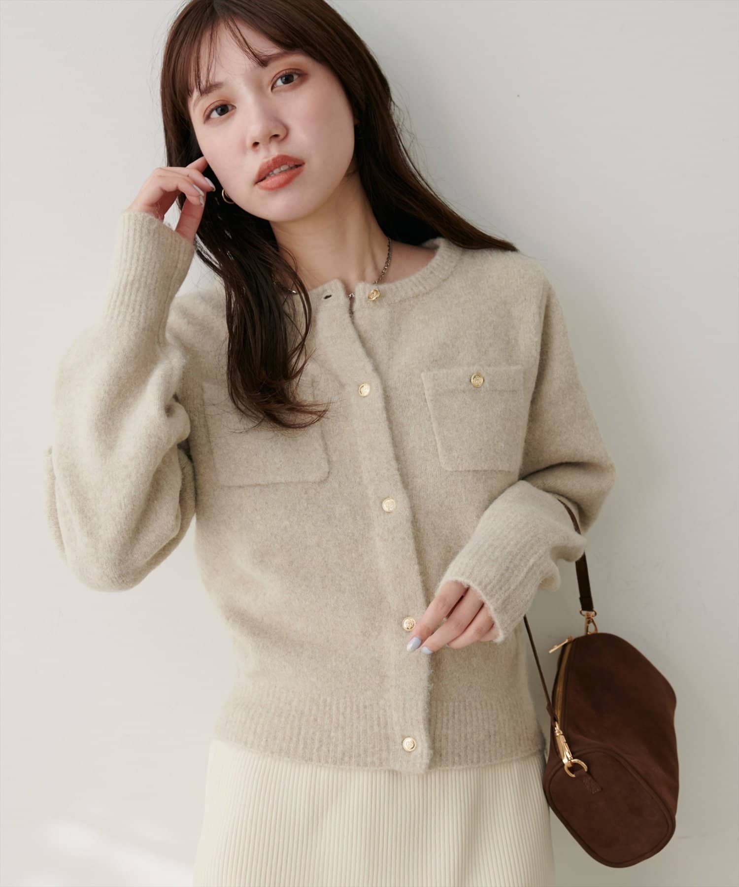 ふんわりと優しい着心地で、思わず触れたくなるスフレヤーンカーディガン。