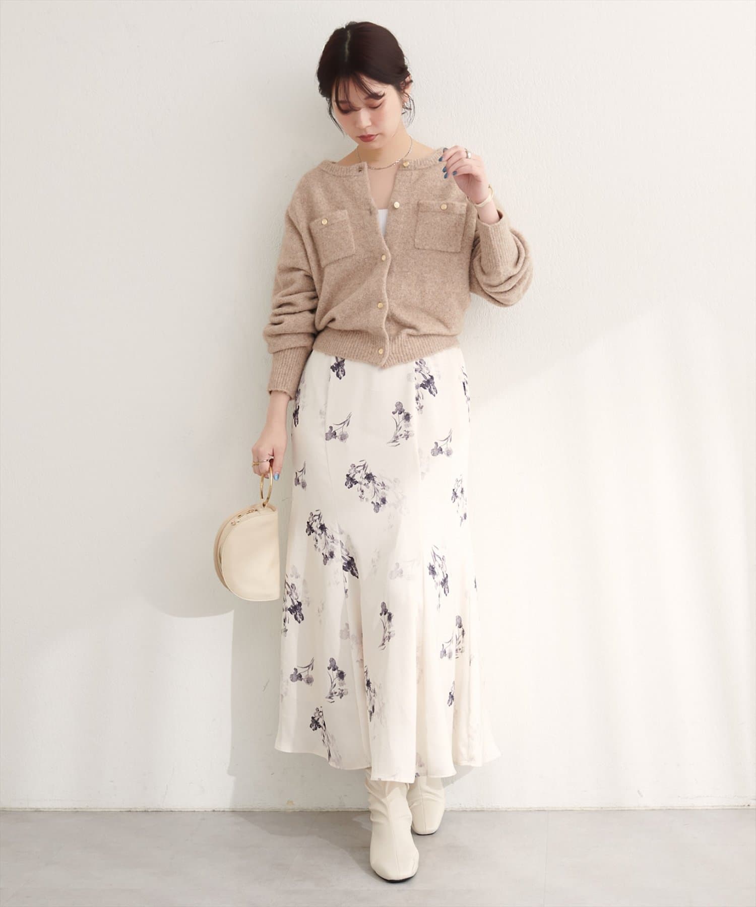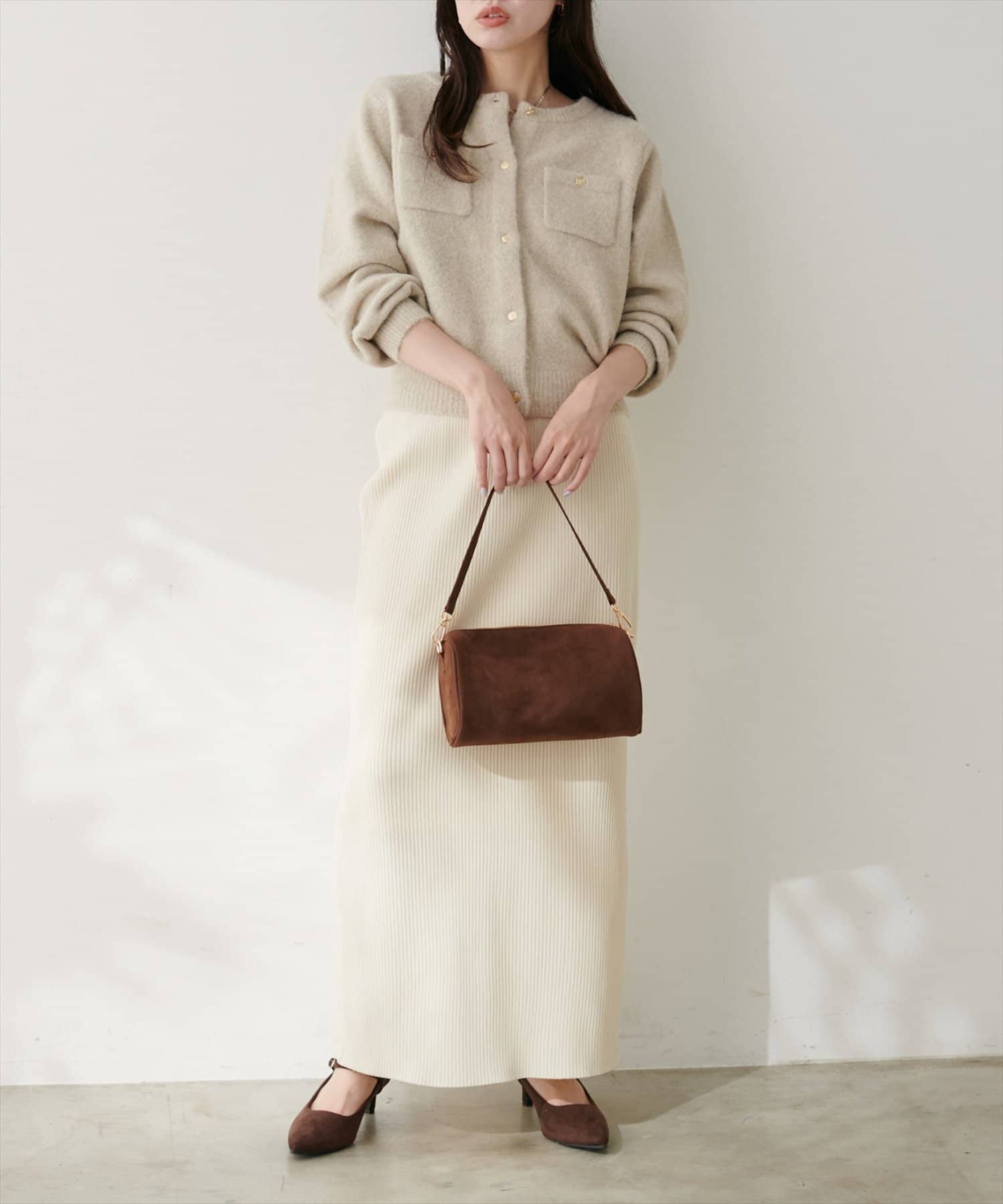 ワンピースやフレアスカートに羽織って、女性らしいシルエットを強調。