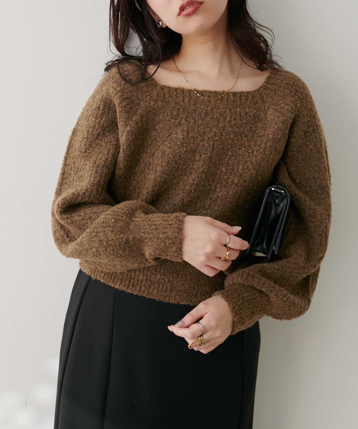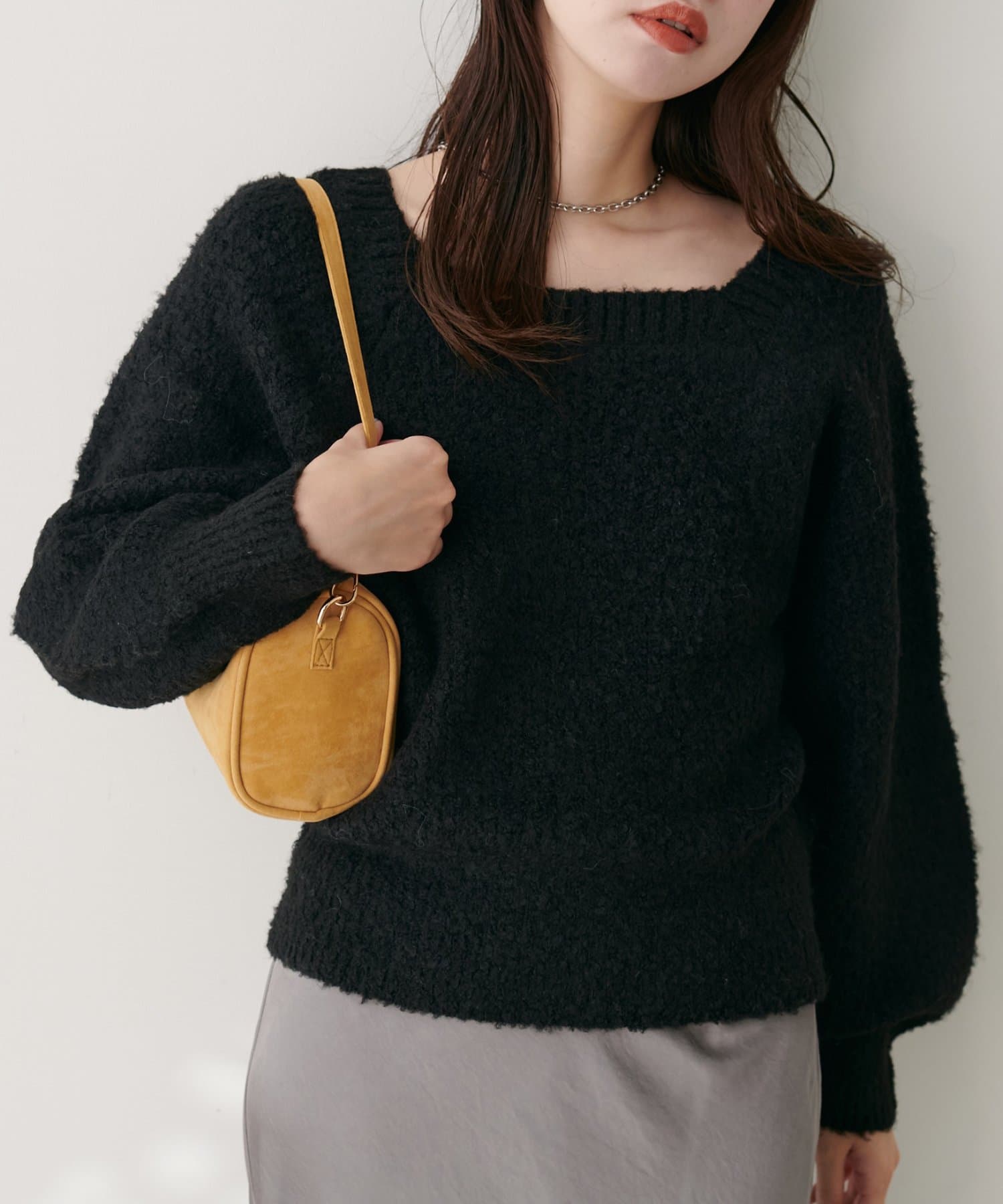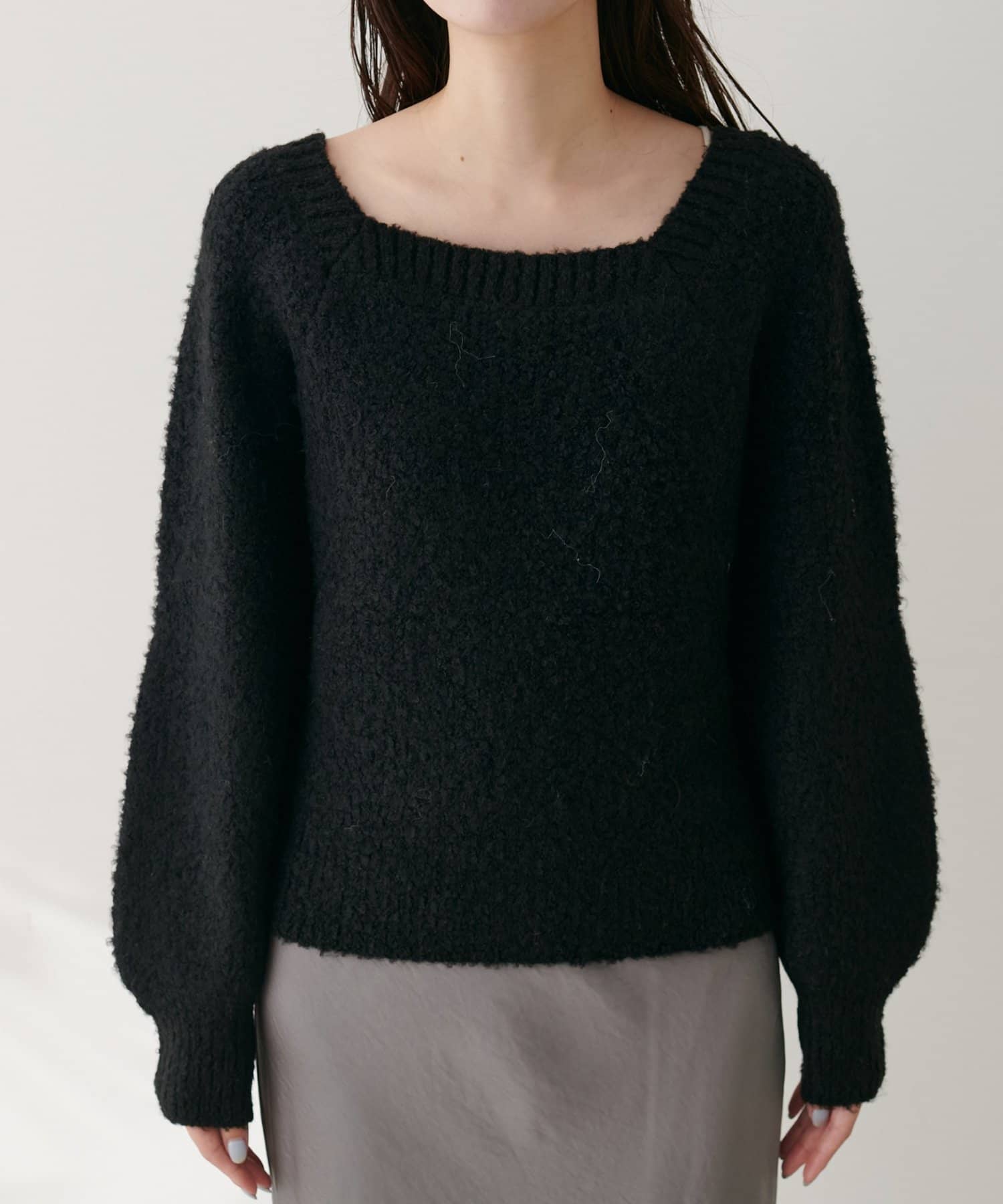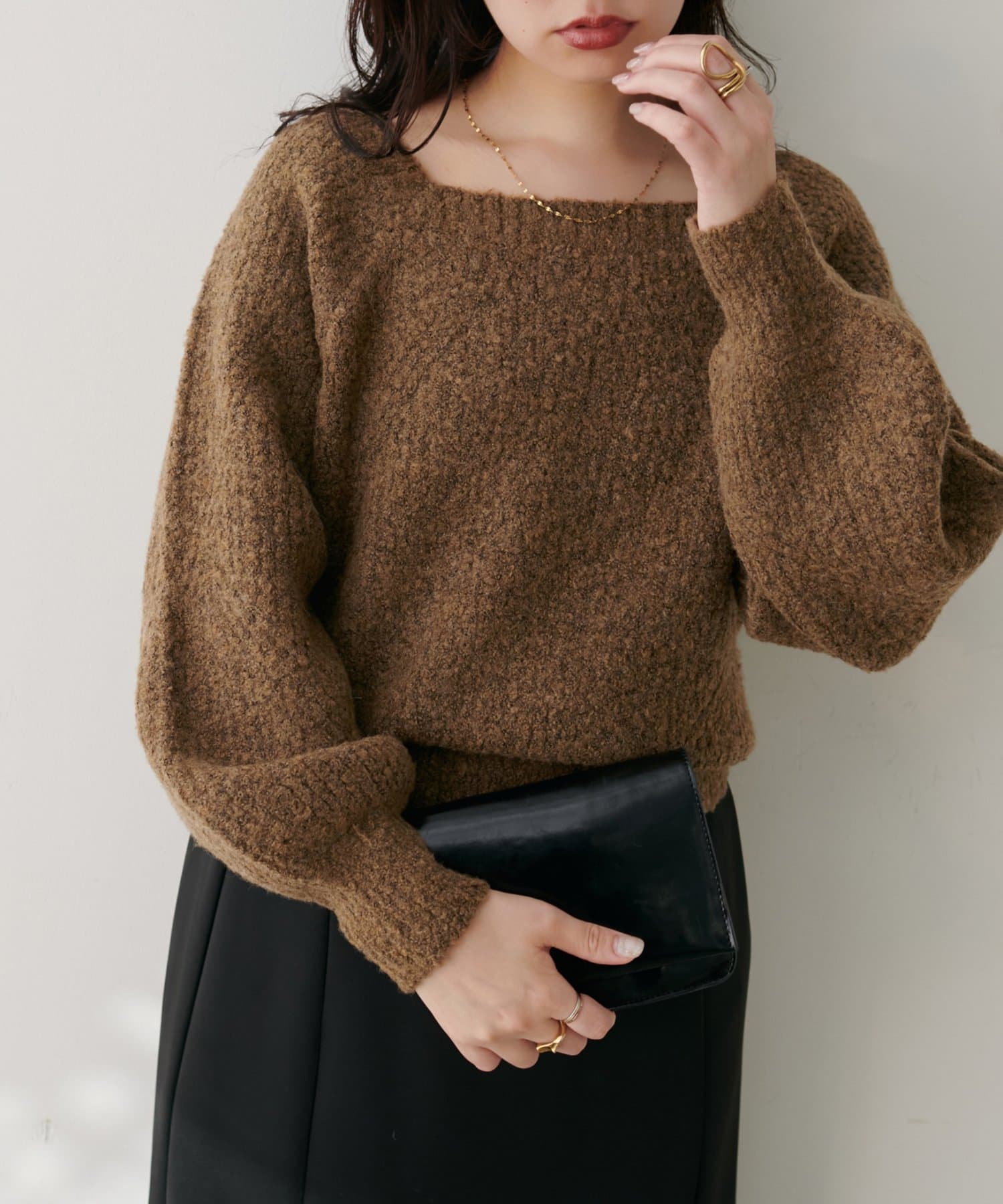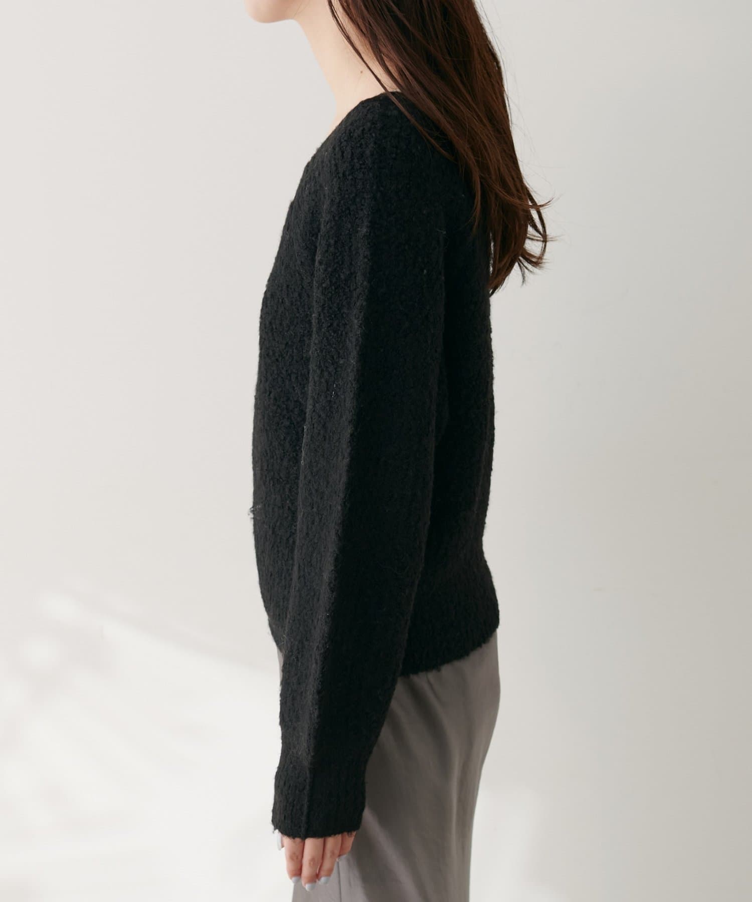 まるで空気をまとうような、ふんわりとしたブークレ素材を使用したニット。