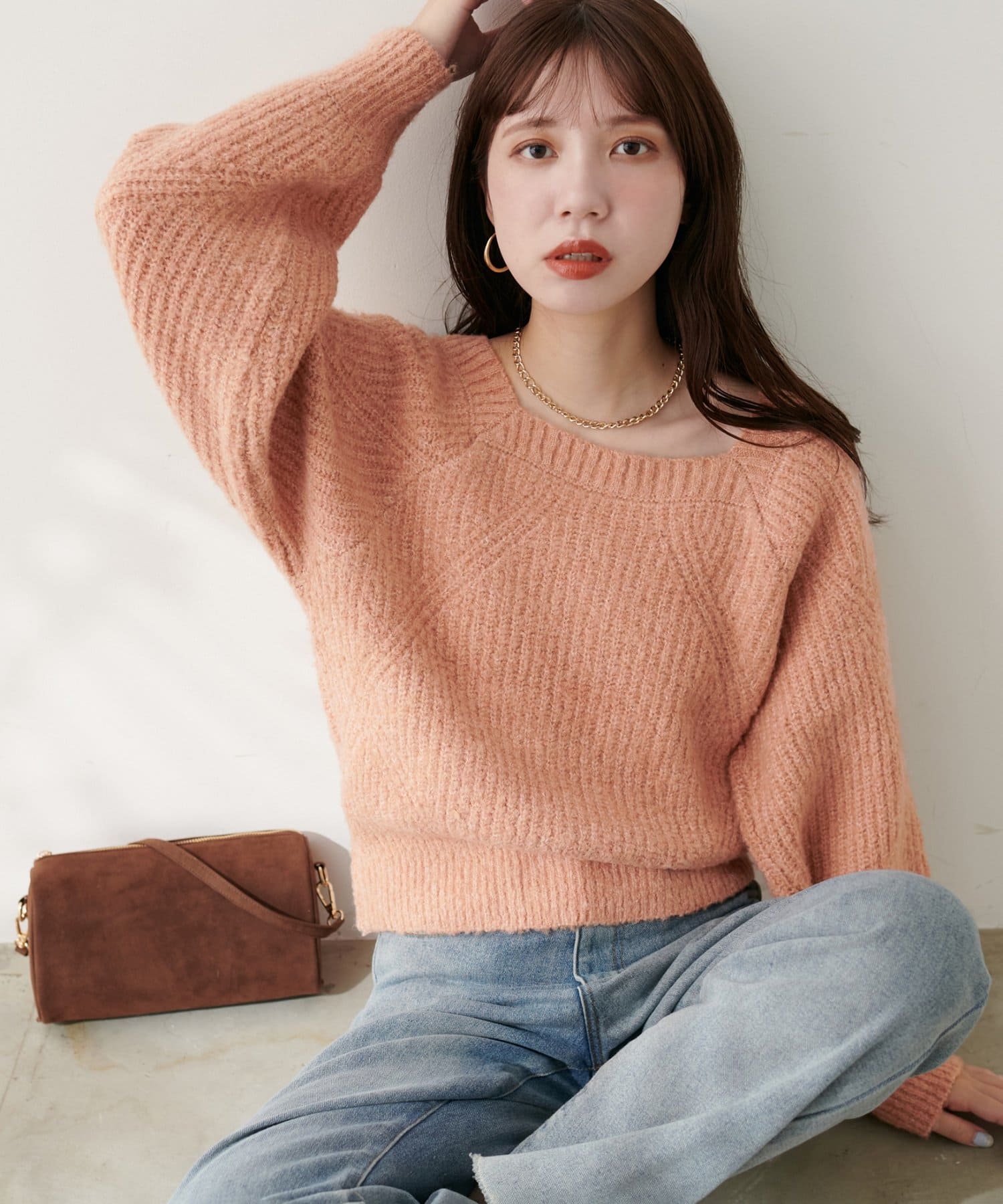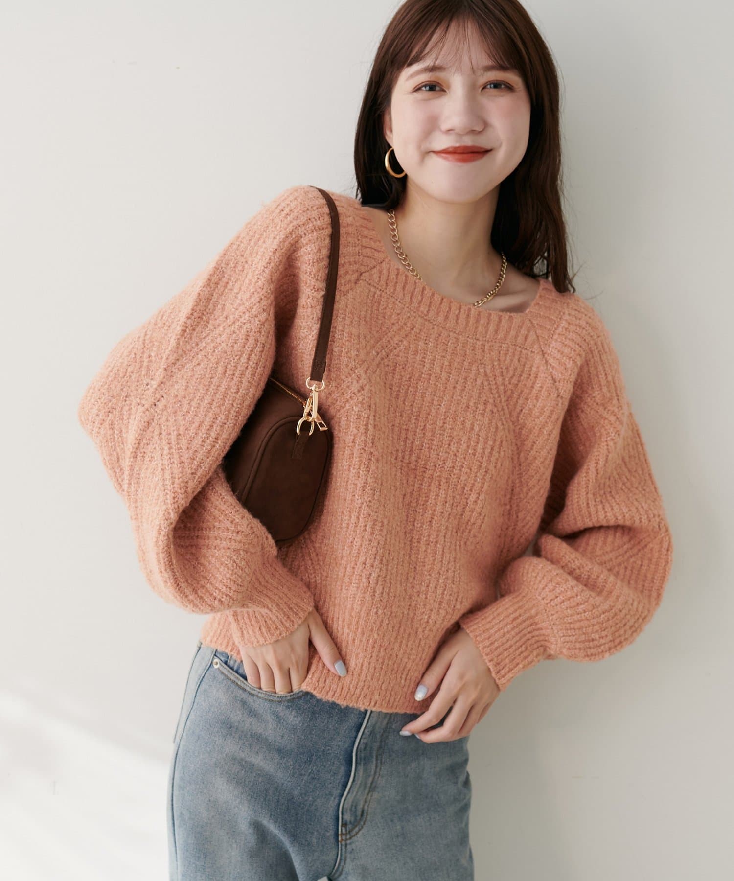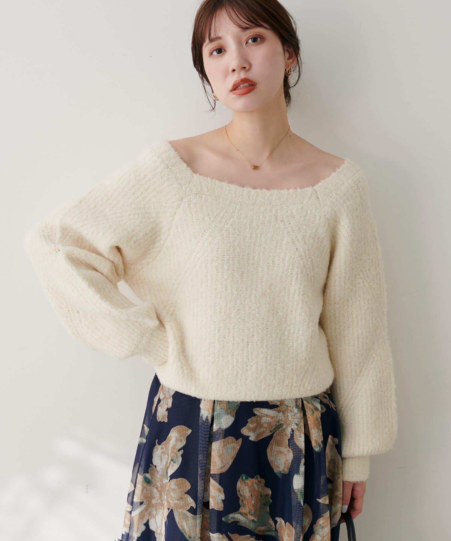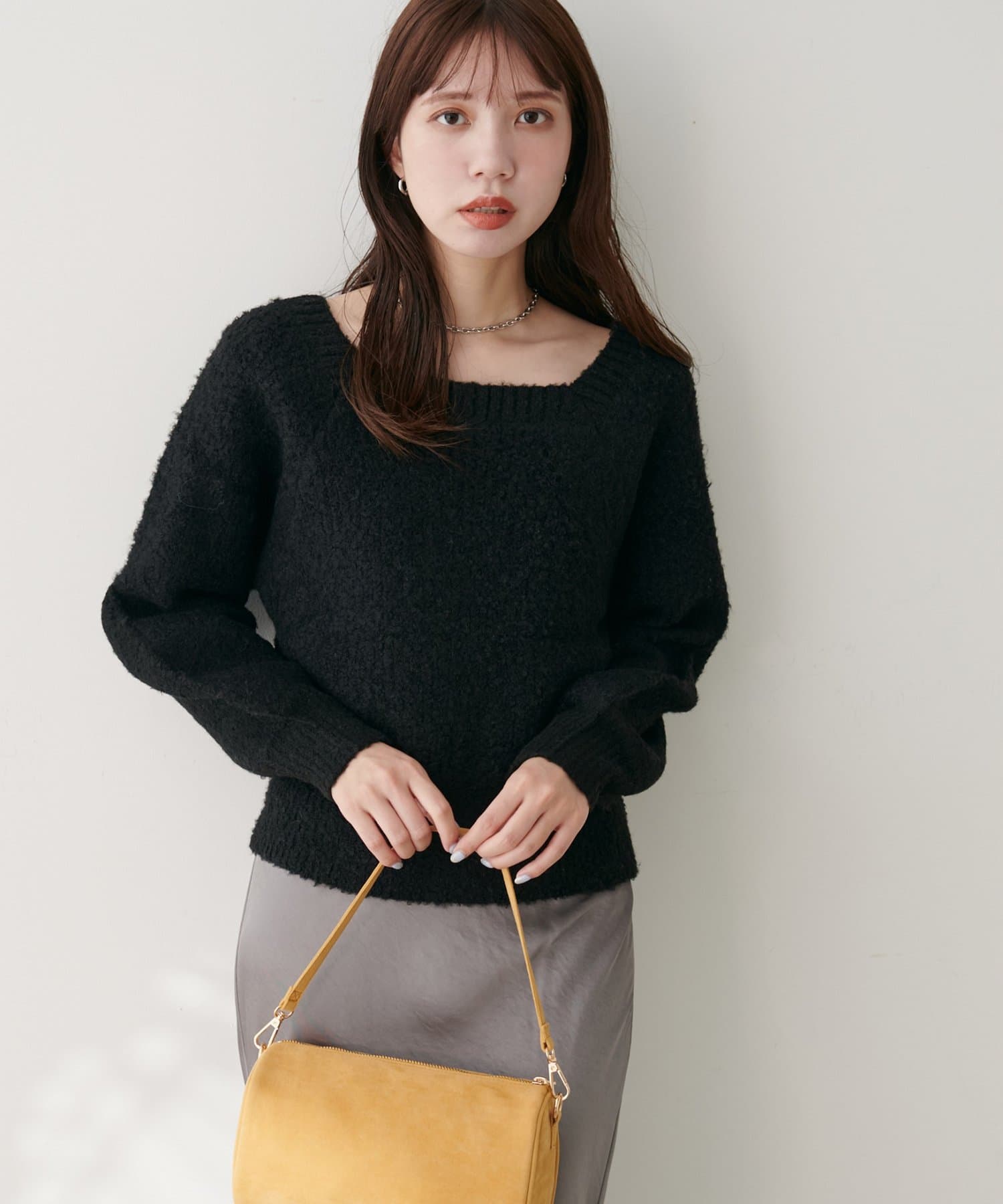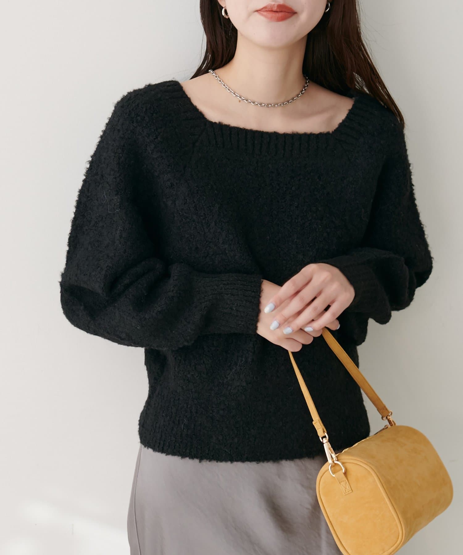 まるで空気をまとうような、ふんわりとしたブークレ素材を使用したニット。