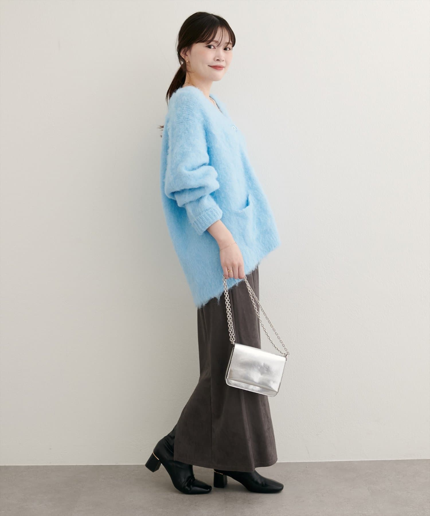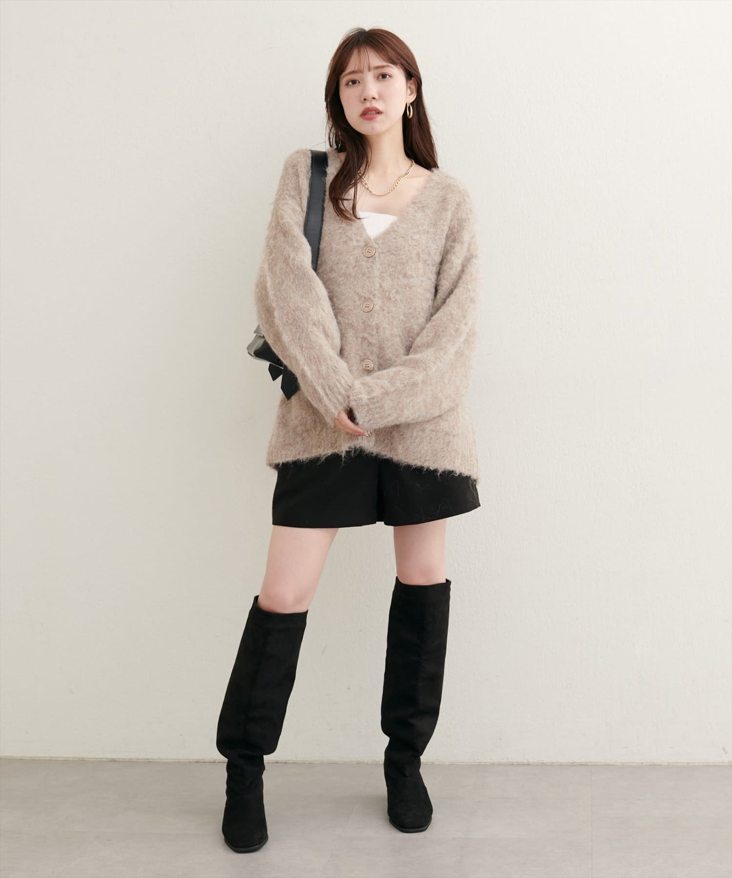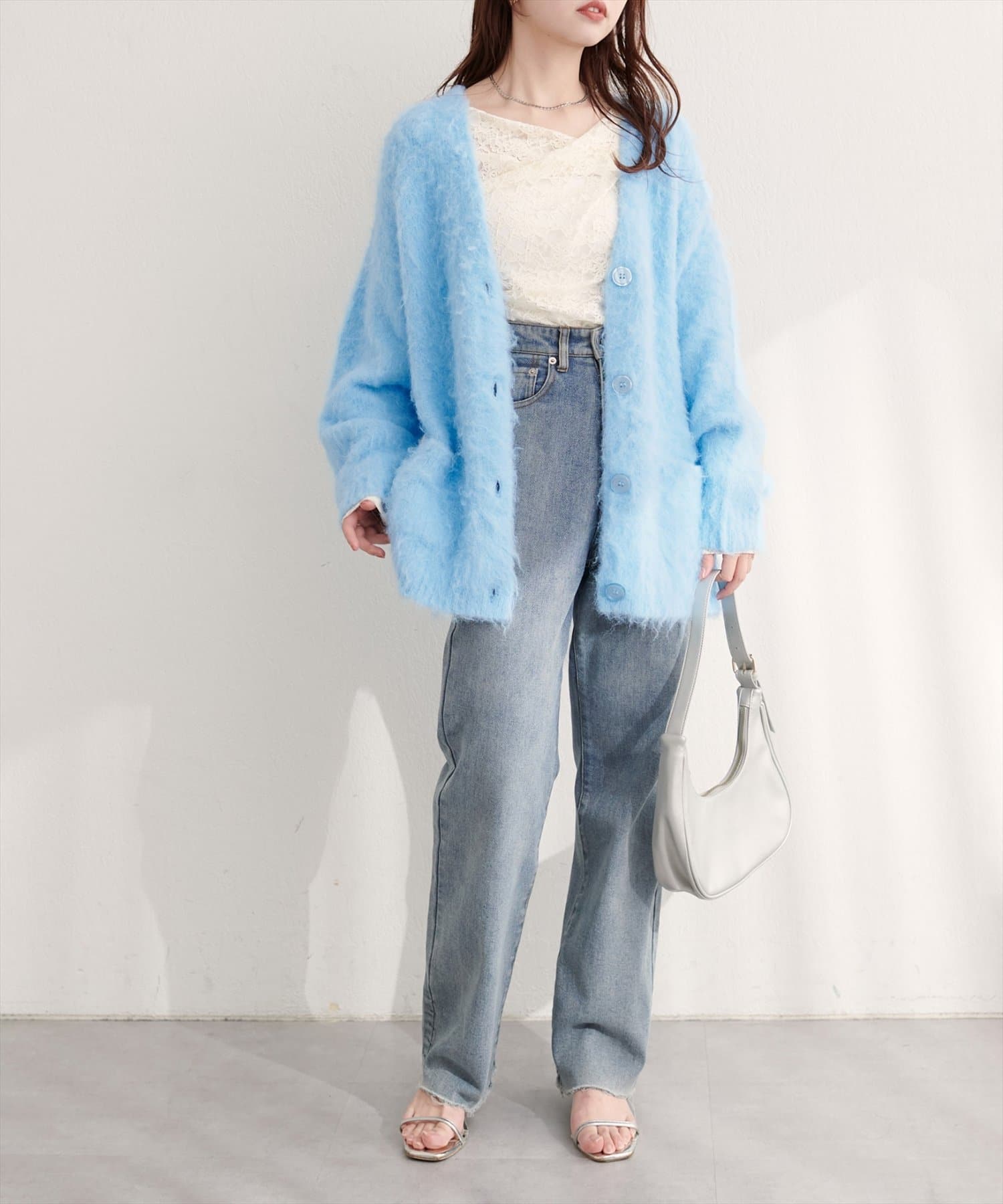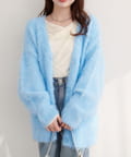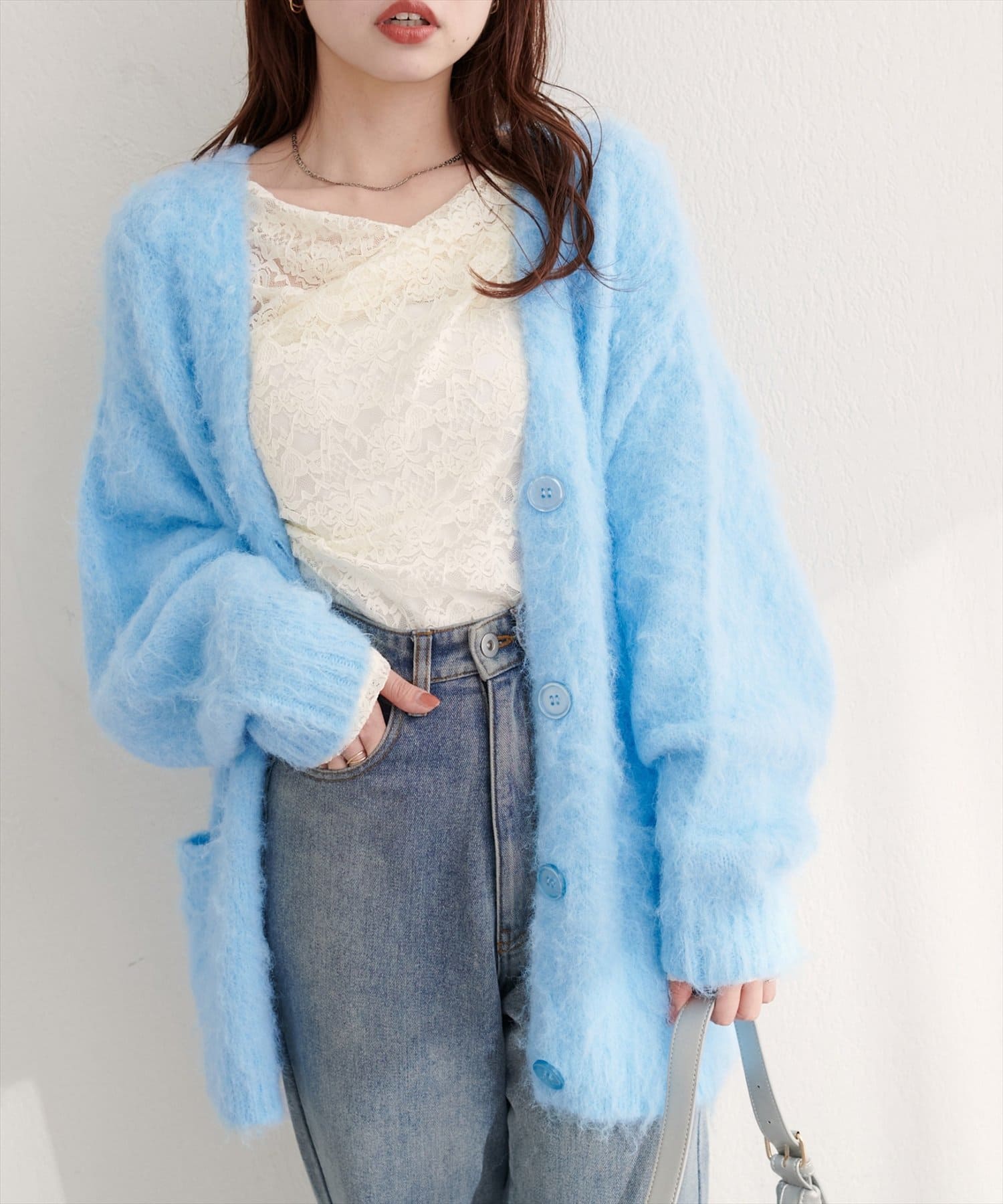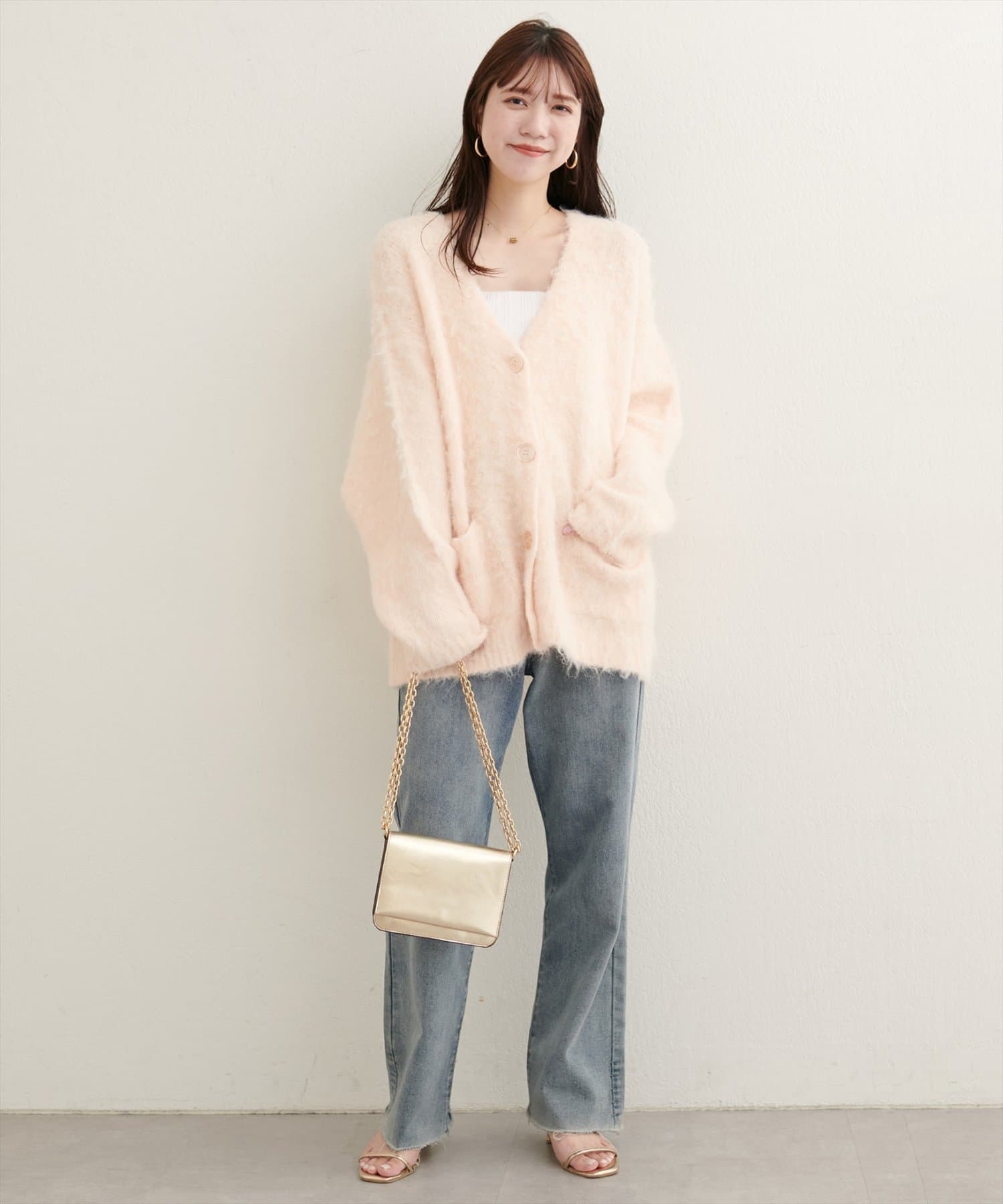 まるで空気を含んだ綿菓子のような、ふんわりとしたシャギー起毛が魅力のVネックニットカーディガン。