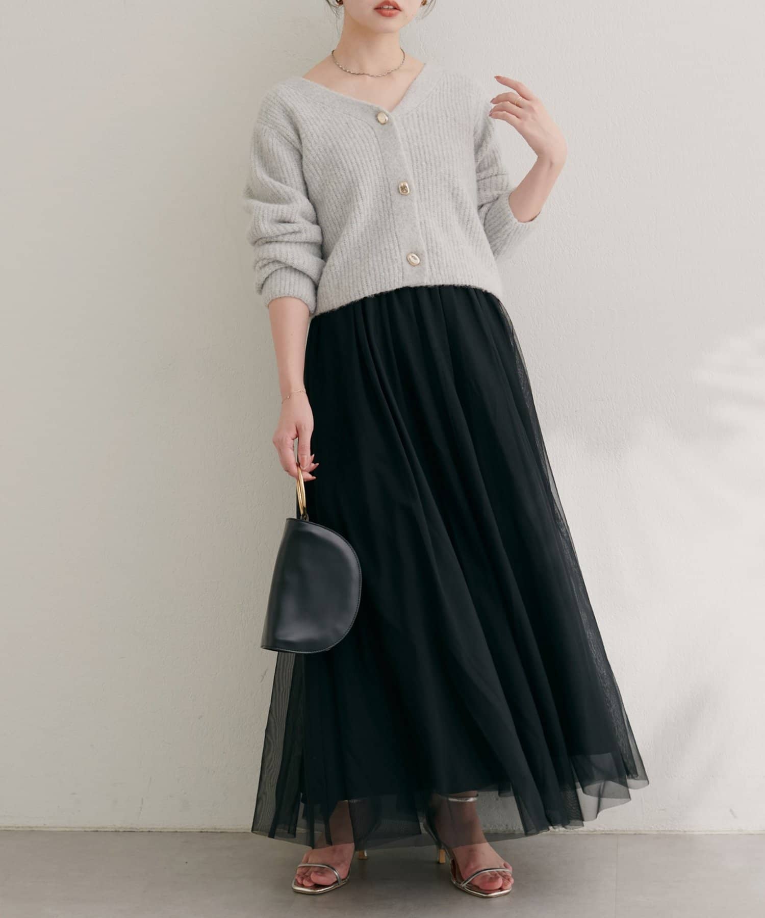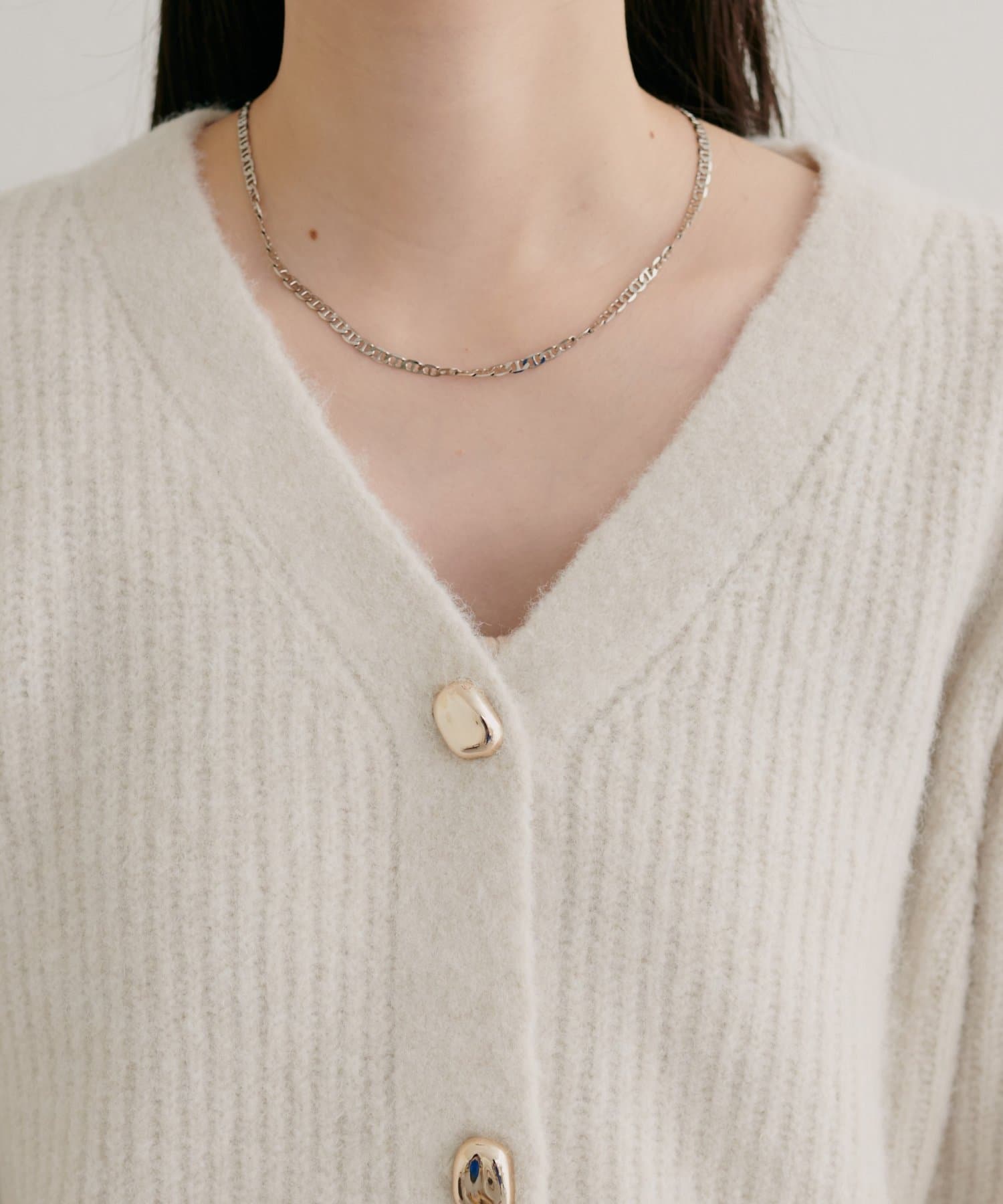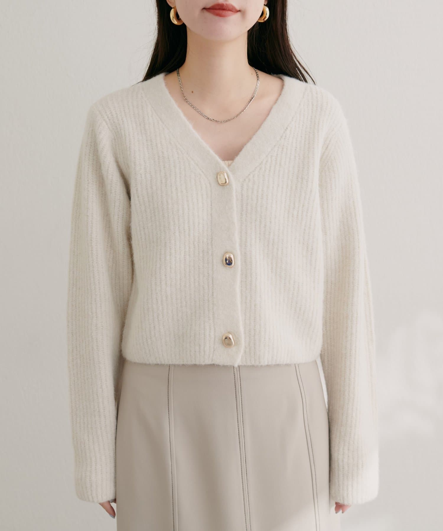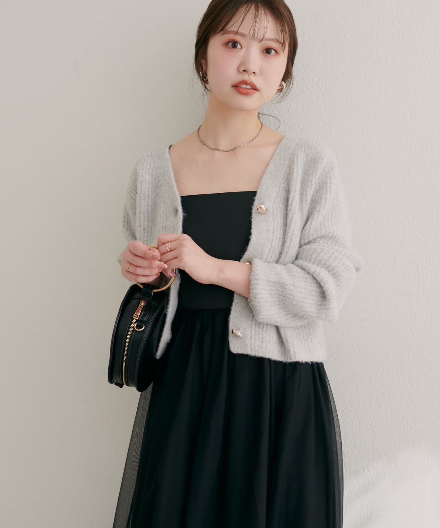 ボタンを閉じて襟付きアイテムと合わせたり、開けてワンピースの上に羽織ったりと様々な着こなしがお楽しみいただけます。