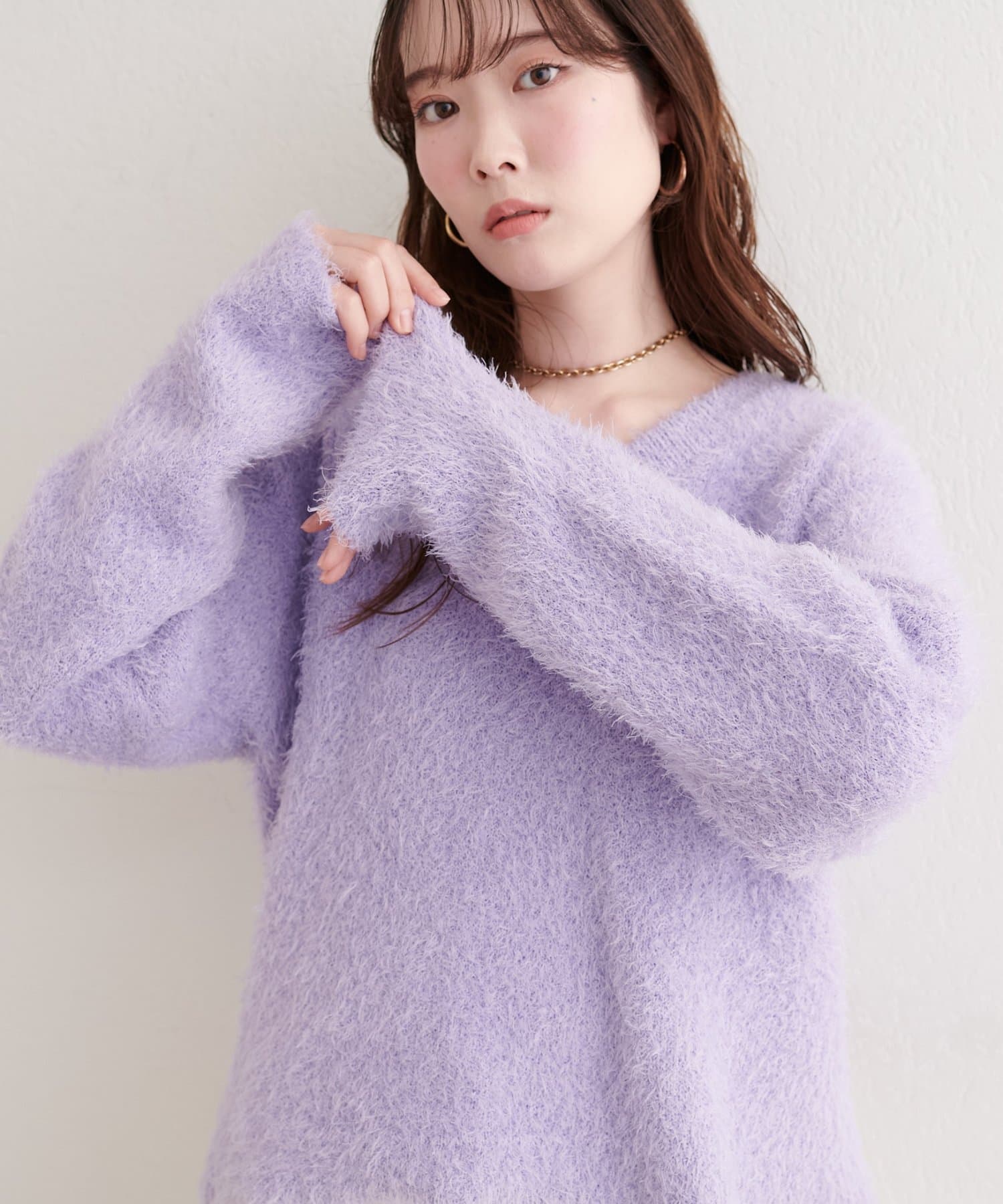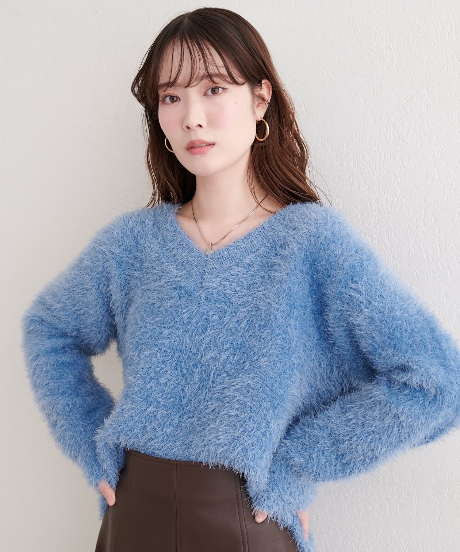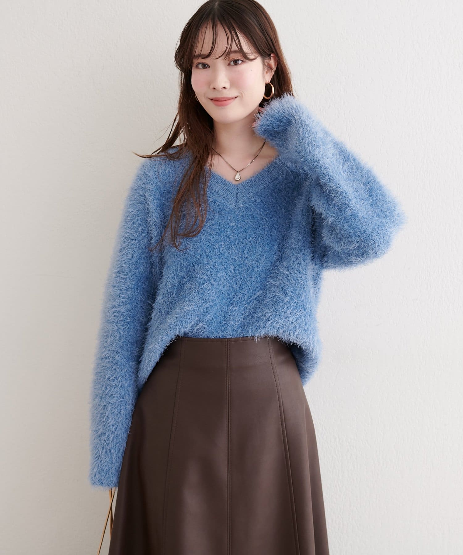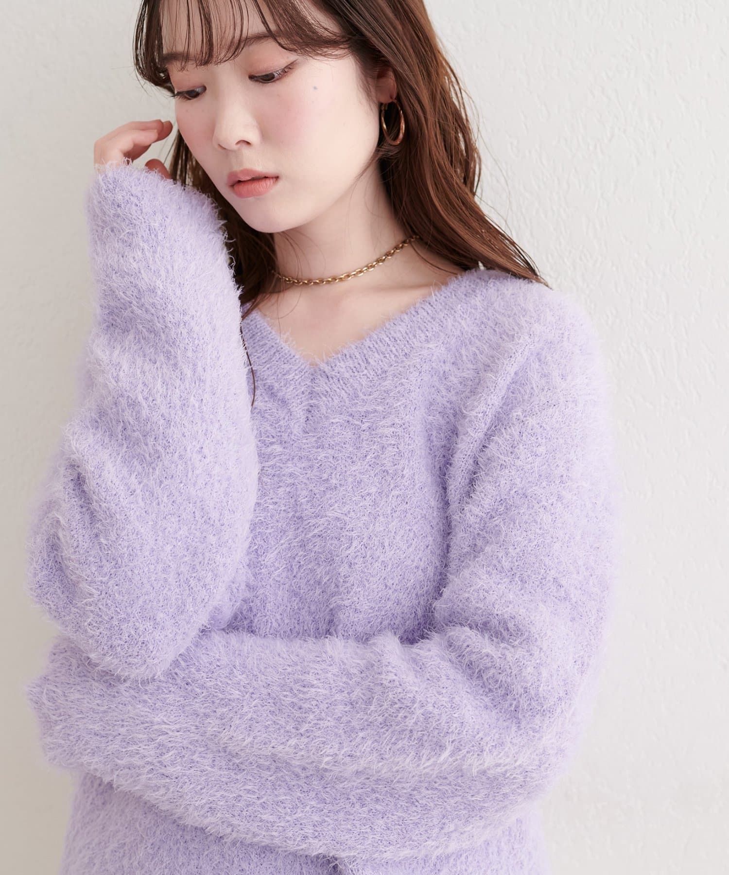 • natural couture(ナチュラルクチュール) 【Mychoiceset対象】Vネックシャギーニットプルオーバー