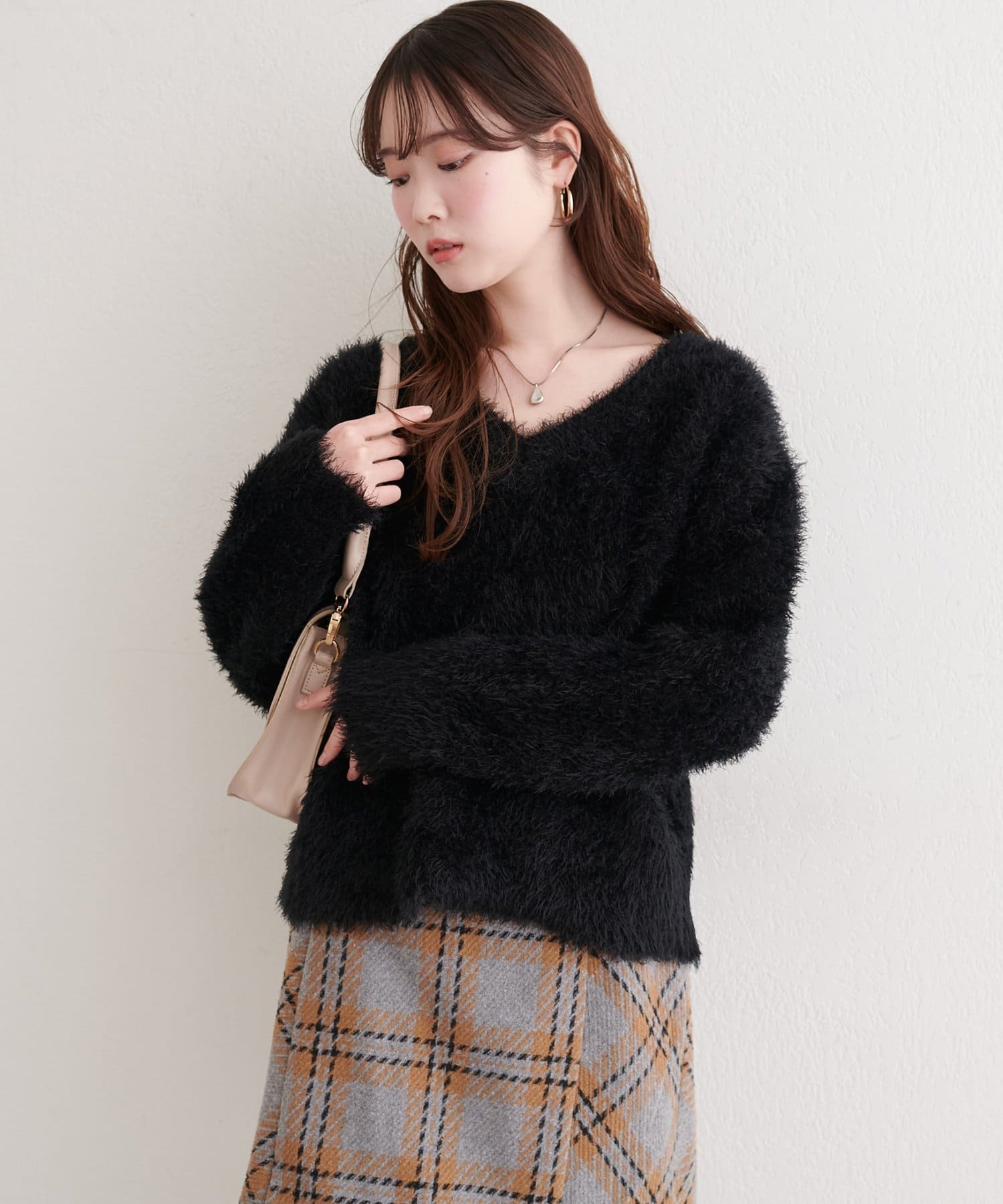 【Mychoiceset対象】Vネックシャギーニットプルオーバー