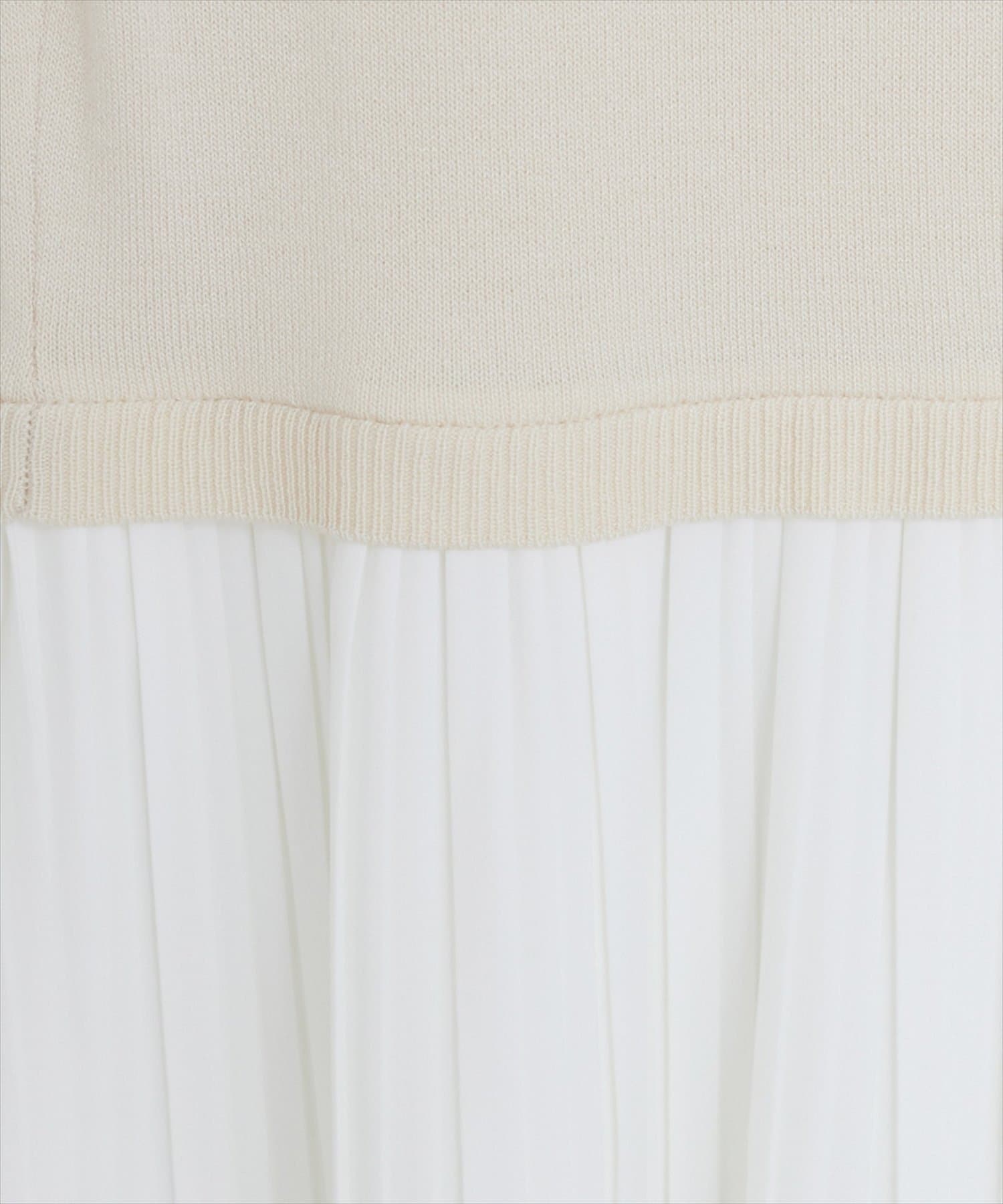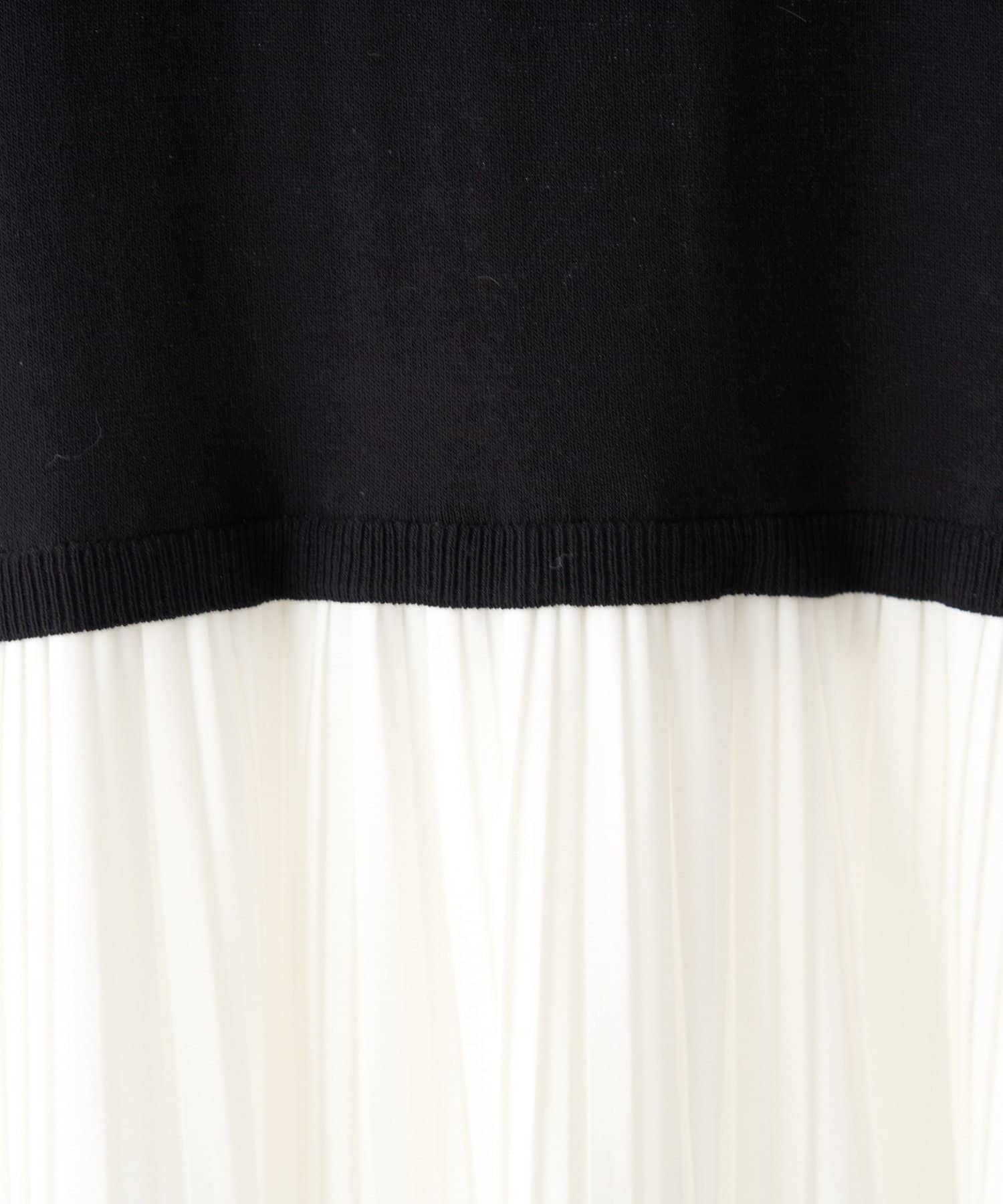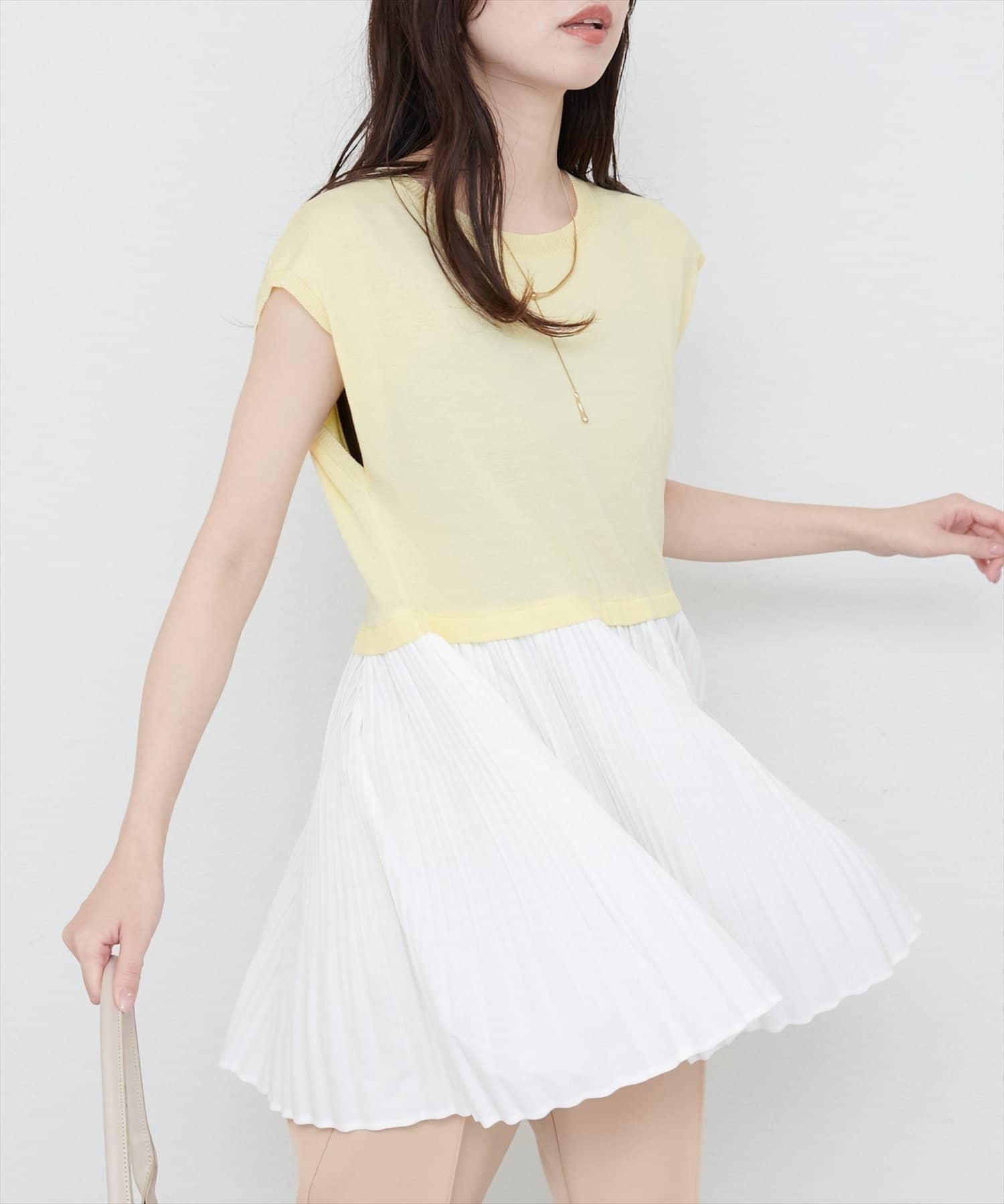トップス部分のシンプルなニットと、繊細なプリーツがドッキングした、デザイン性の高い一枚。