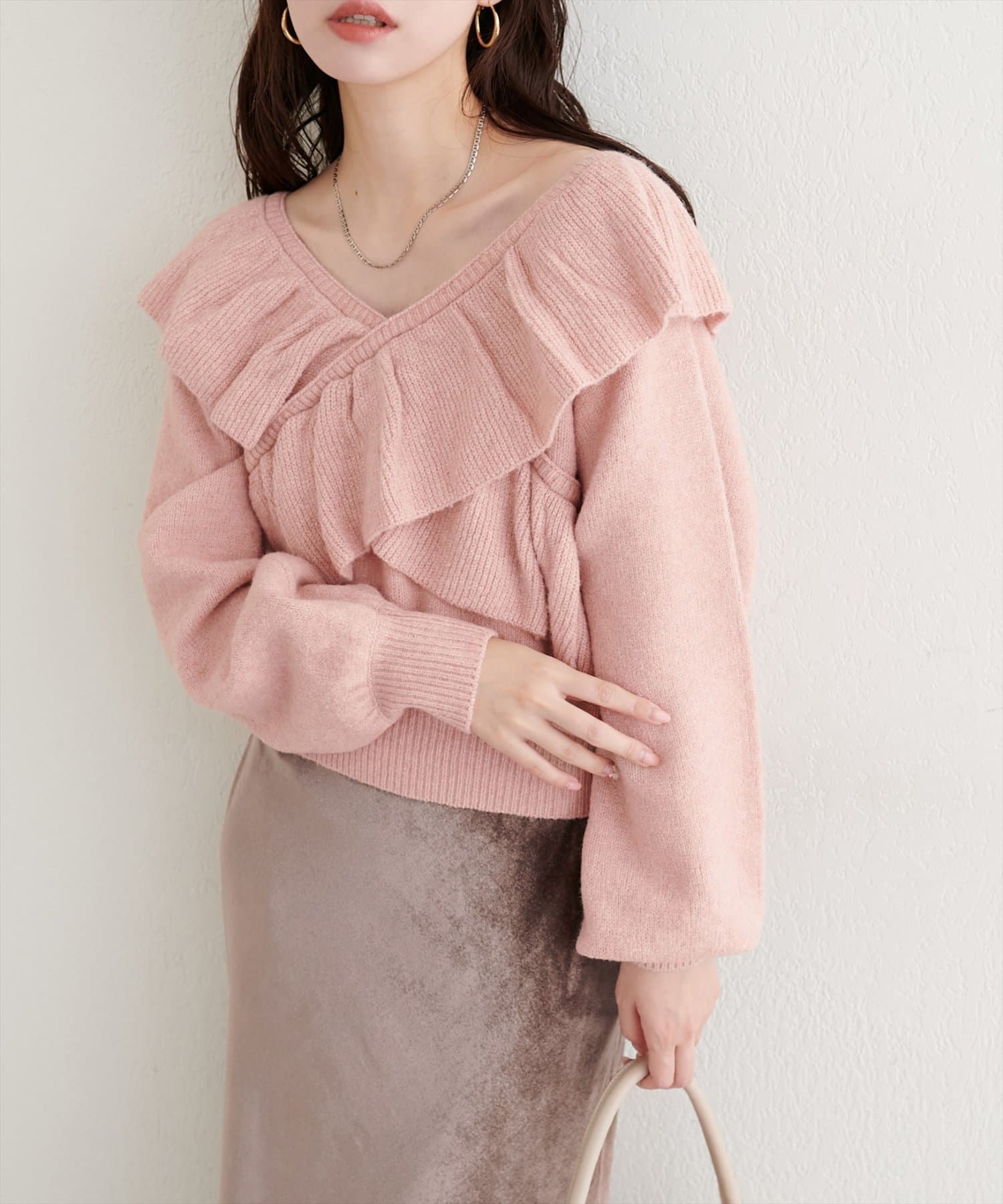 クロスフリルニットは、一枚で着るのはもちろん、レイヤードスタイルも楽しめるのが魅力です。