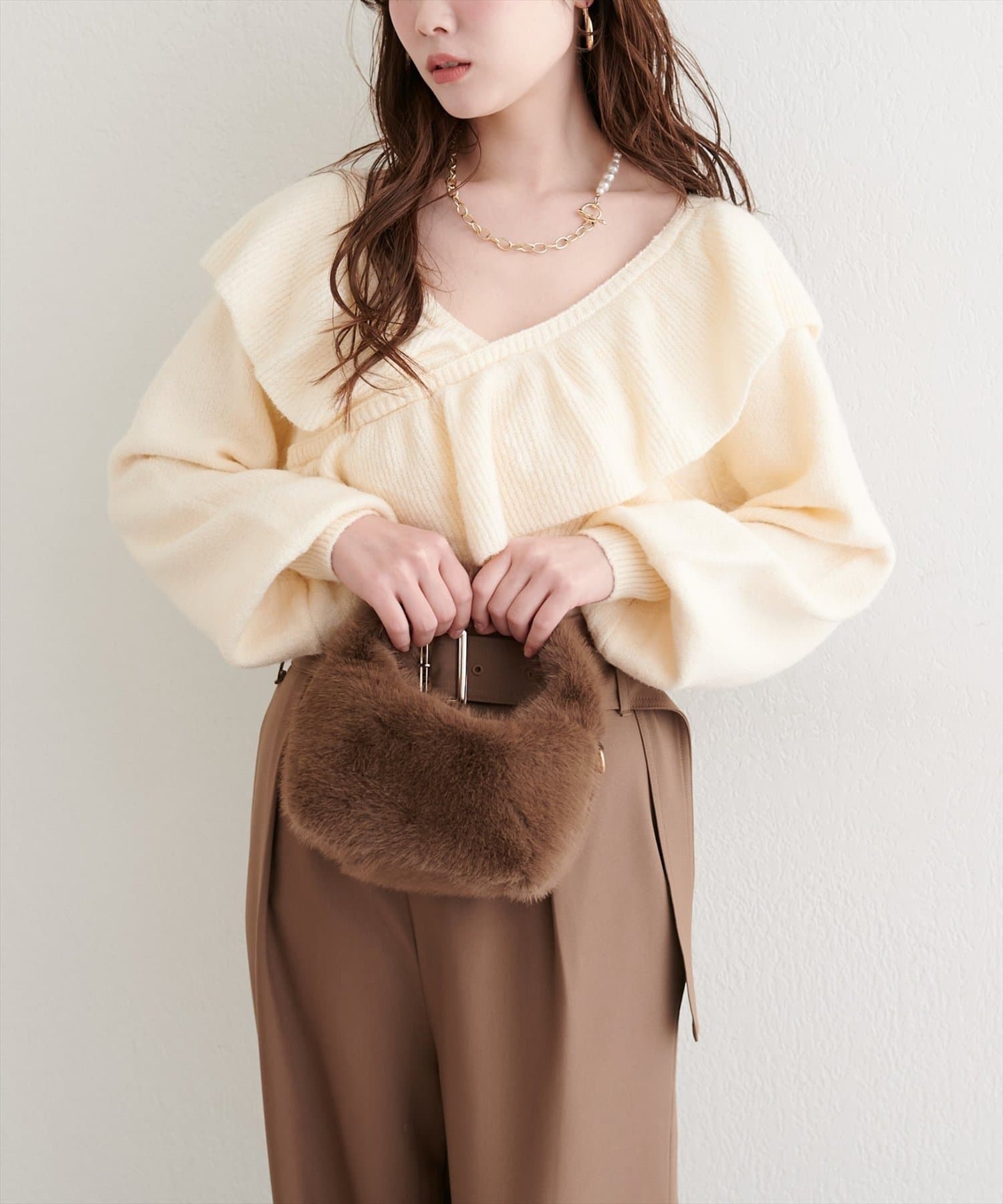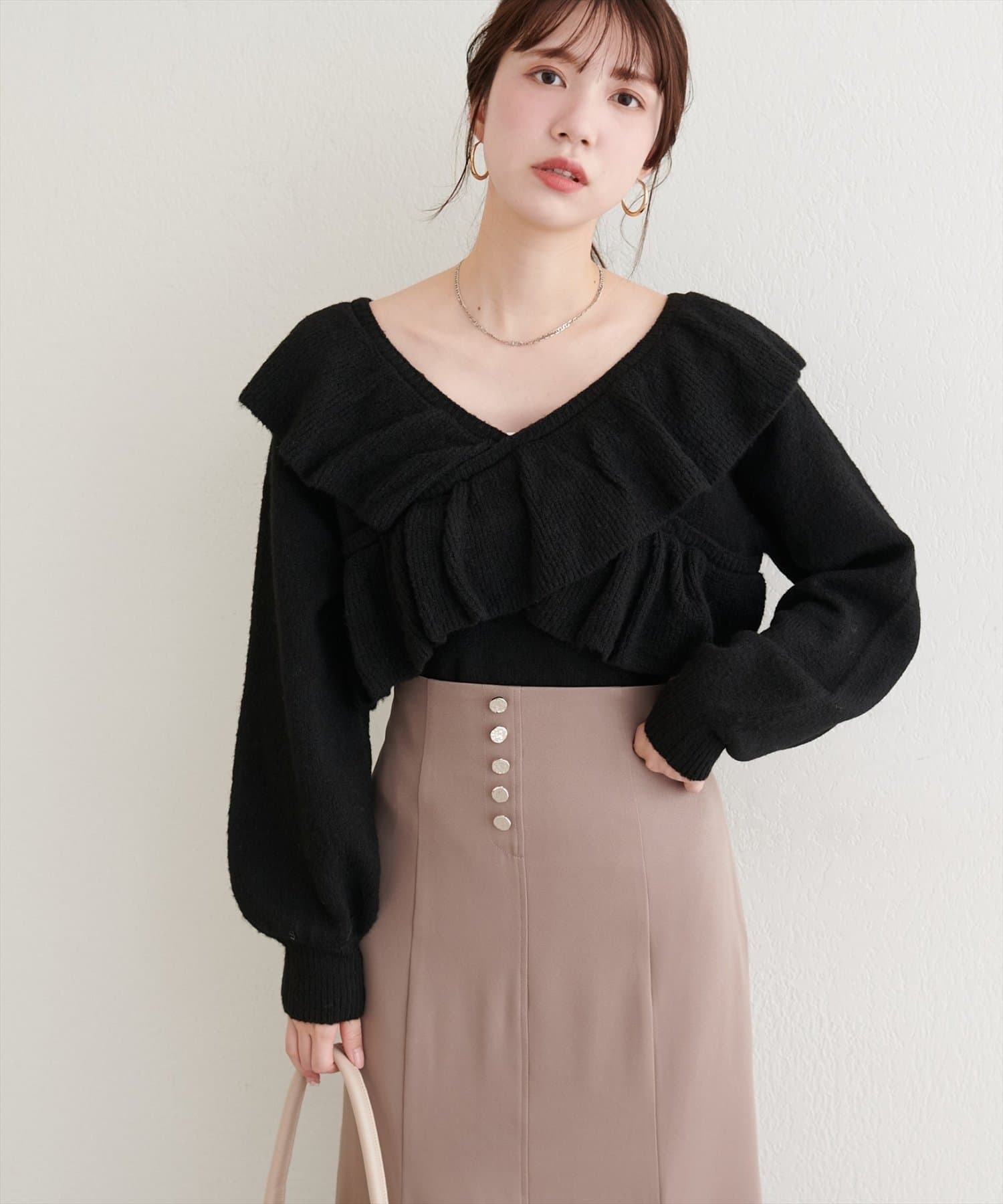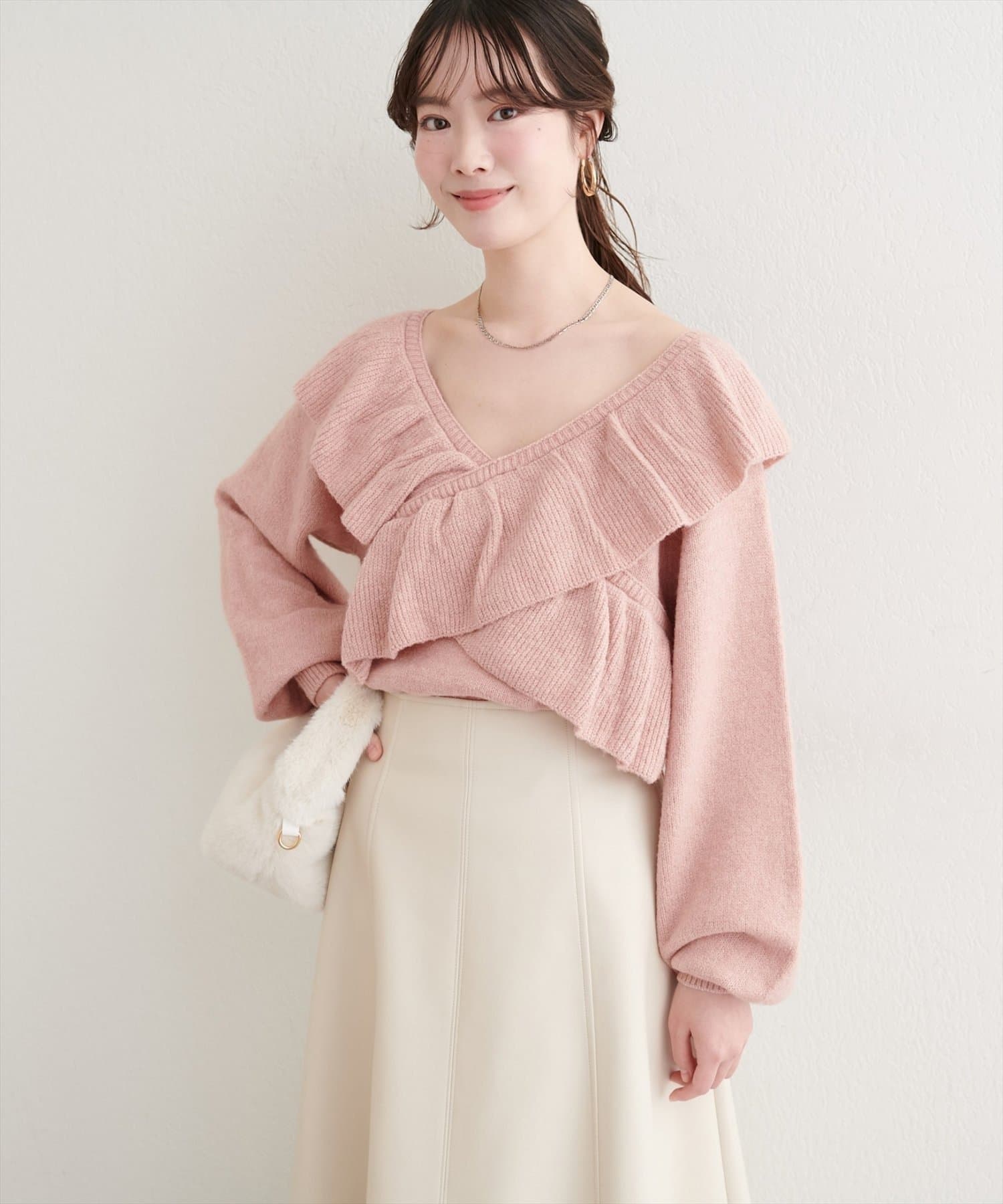 TOP > NICE CLAUP / OLIVE des OLIVE OUTLET > レディース > トップス > ニット/セーター > 【natural couture】クロスフリルニット
