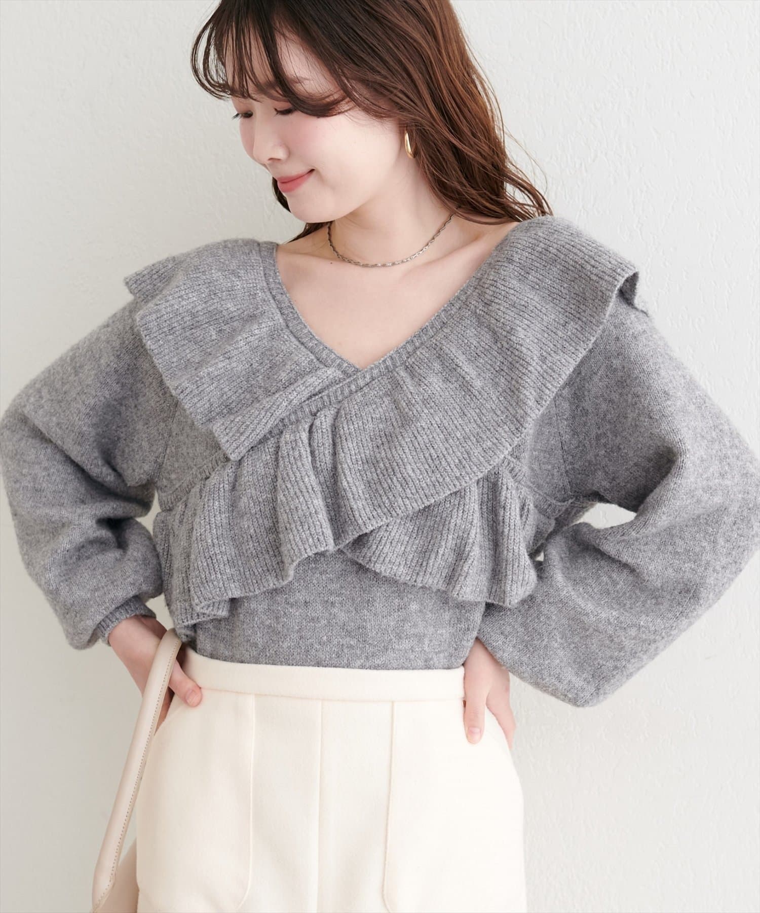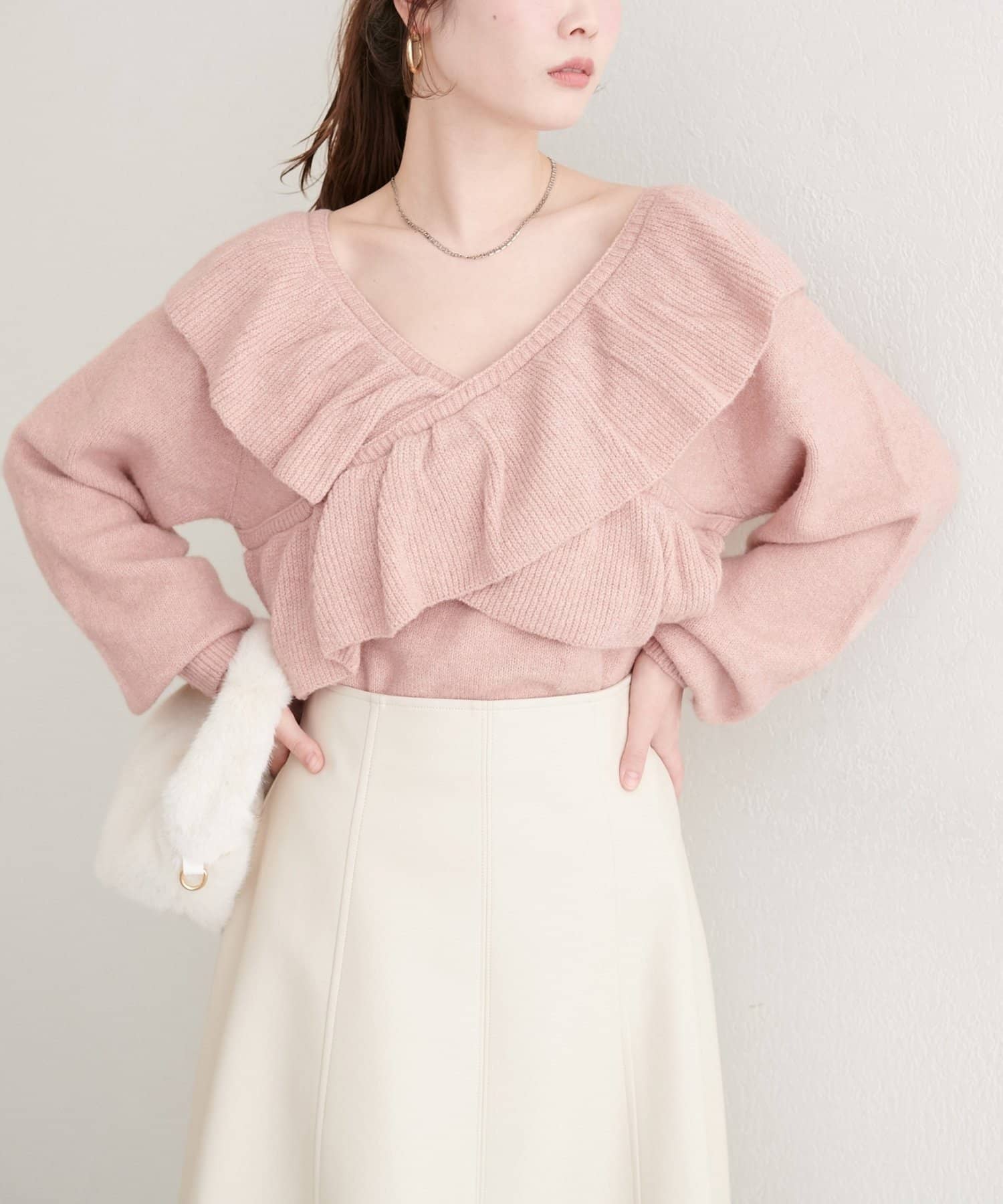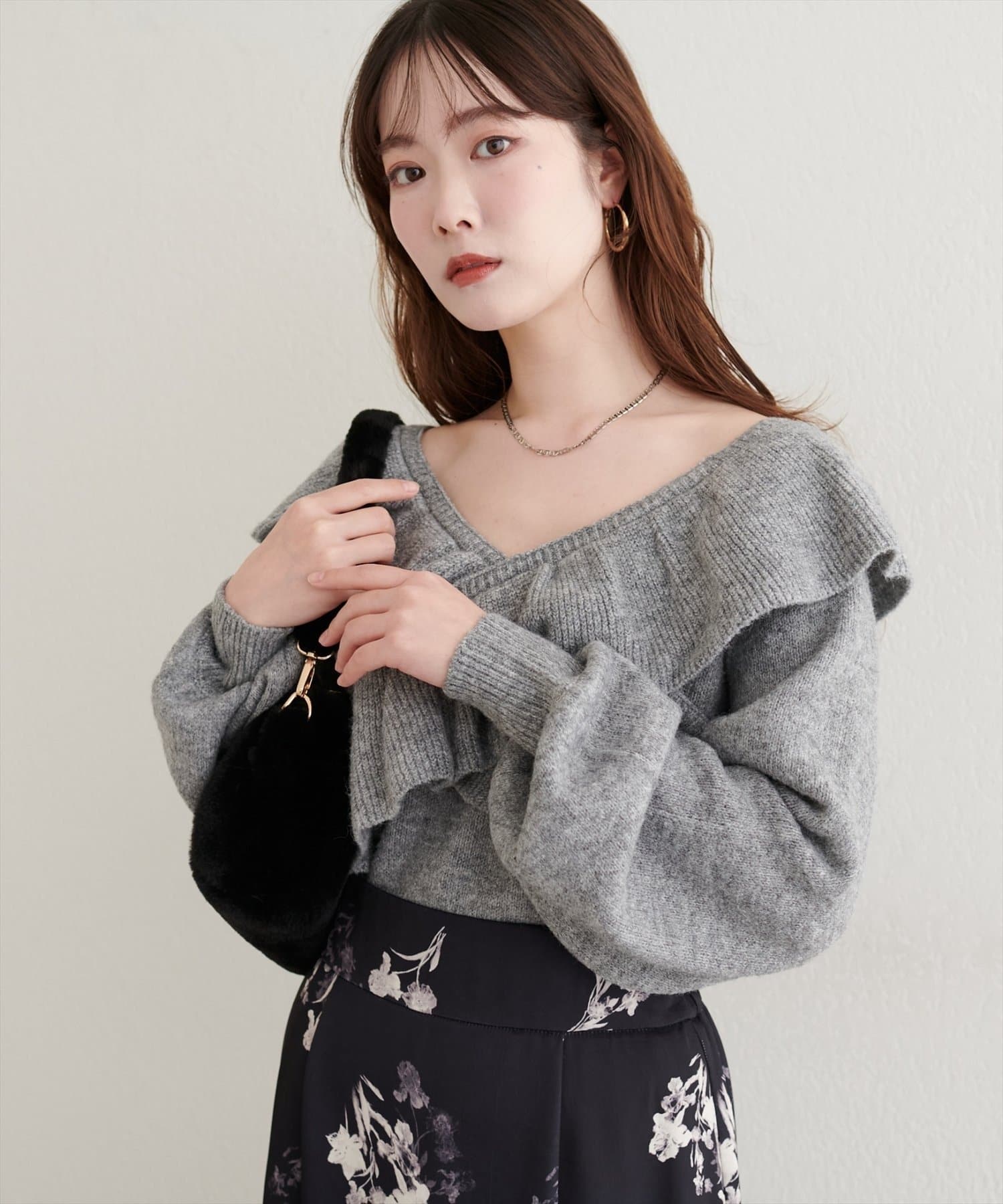 クロスフリルニットは、一枚で着るのはもちろん、レイヤードスタイルも楽しめるのが魅力です。