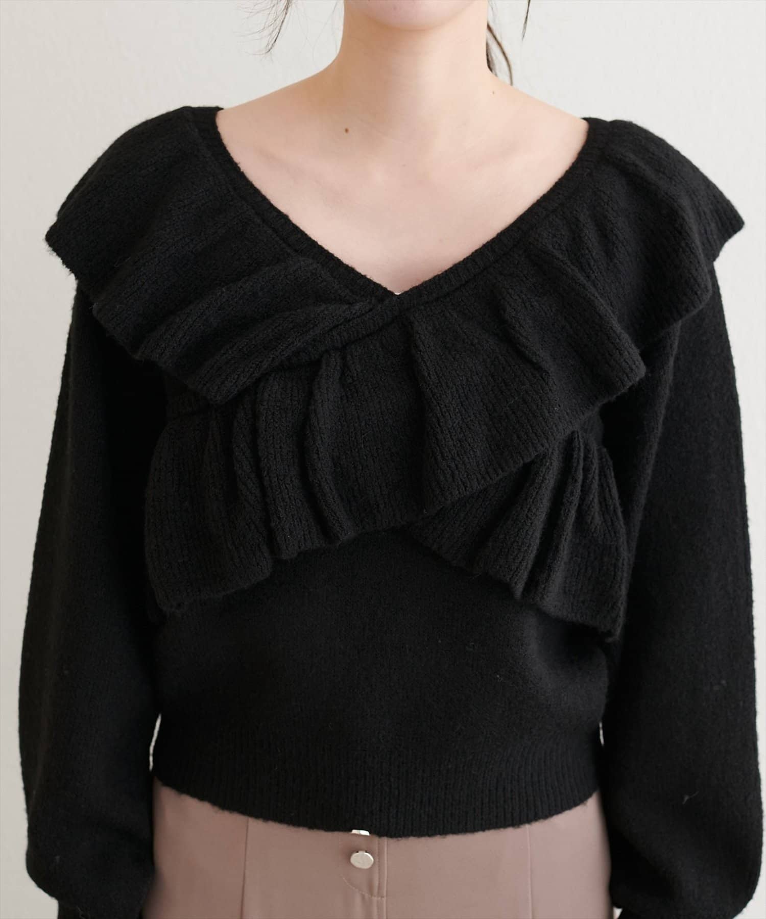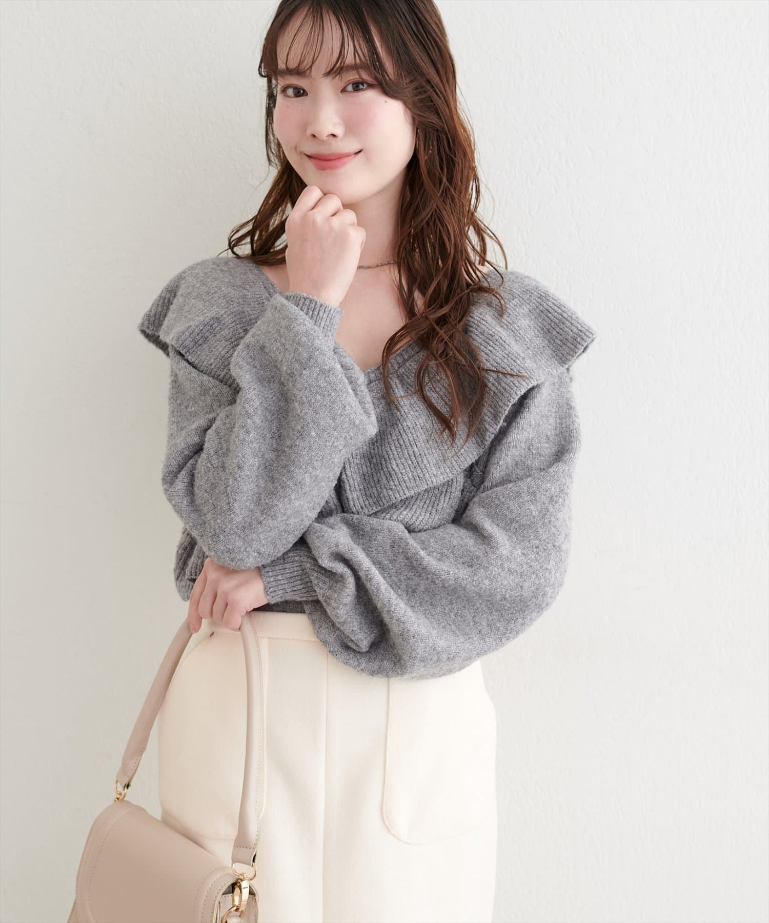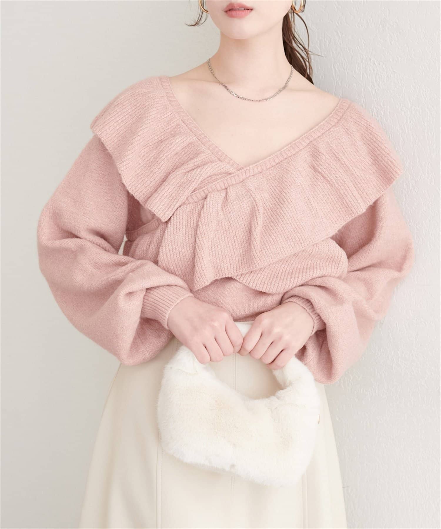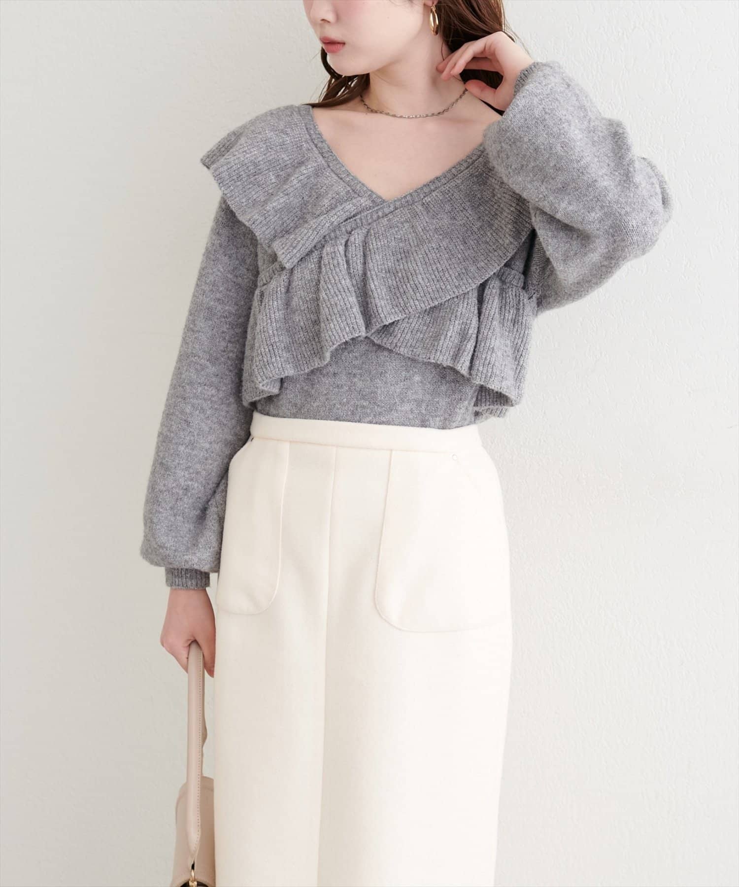 クロスフリルニットは、一枚で着るのはもちろん、レイヤードスタイルも楽しめるのが魅力です。
