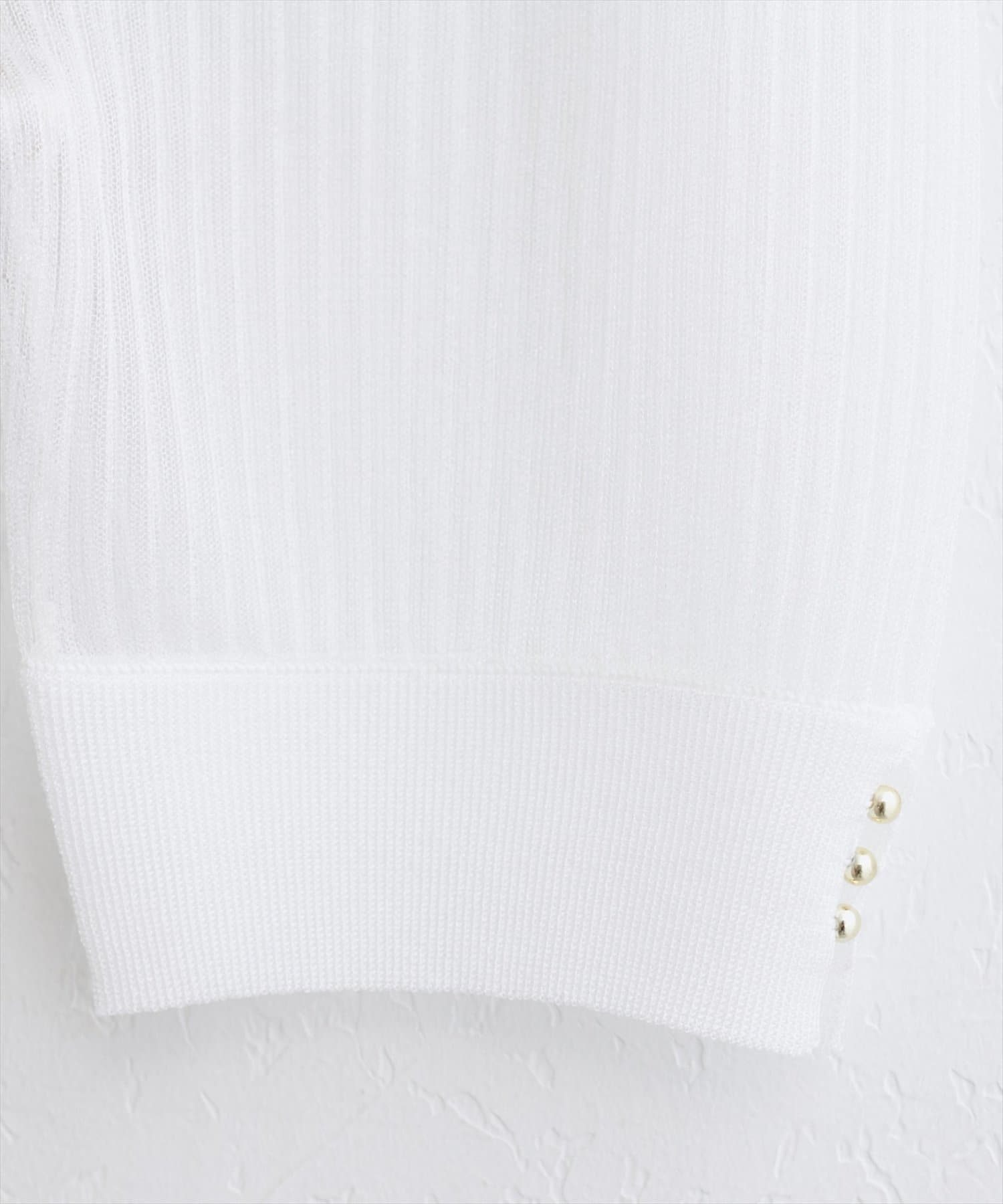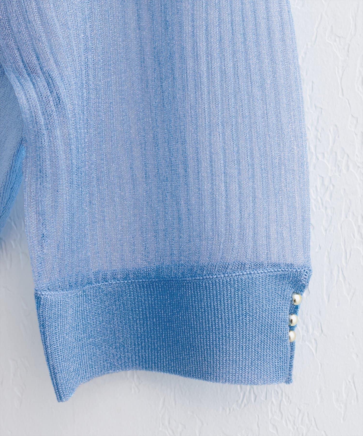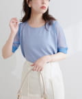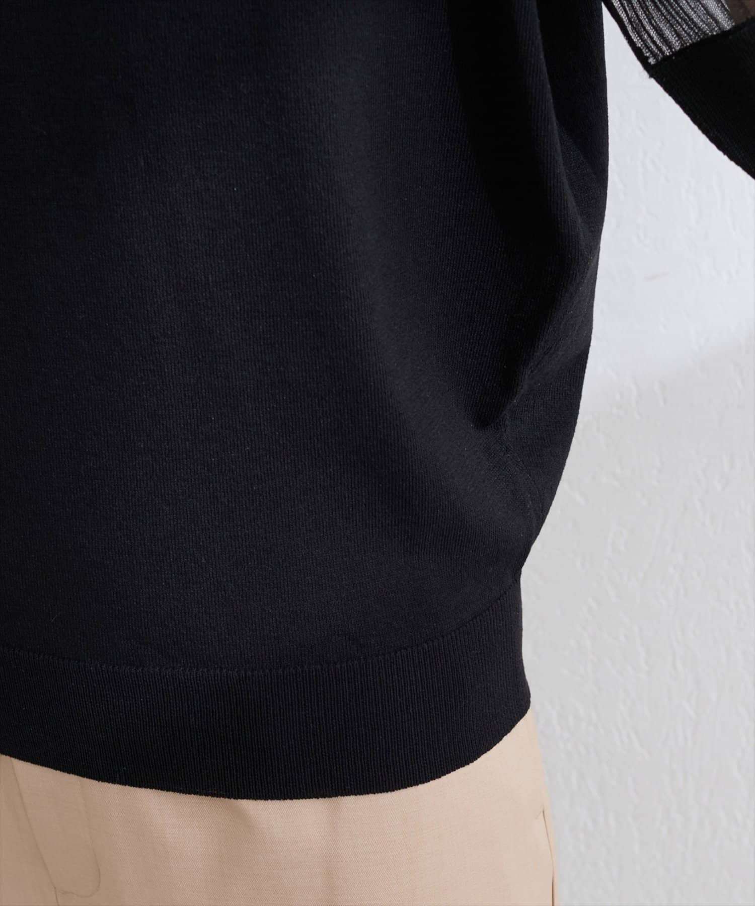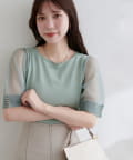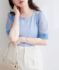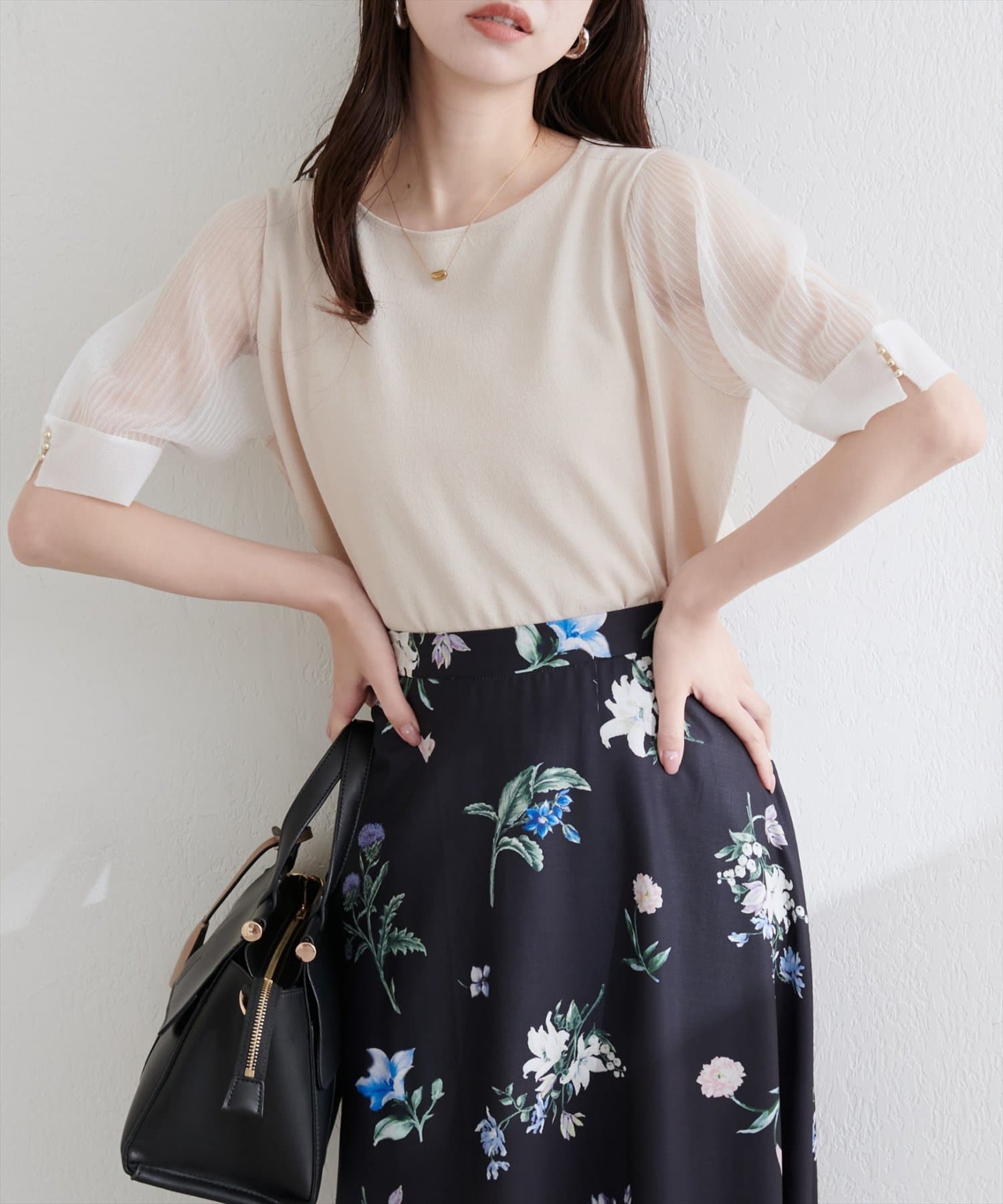 繊細なシアー素材の袖が、女性らしさを引き立てるニットトップス。